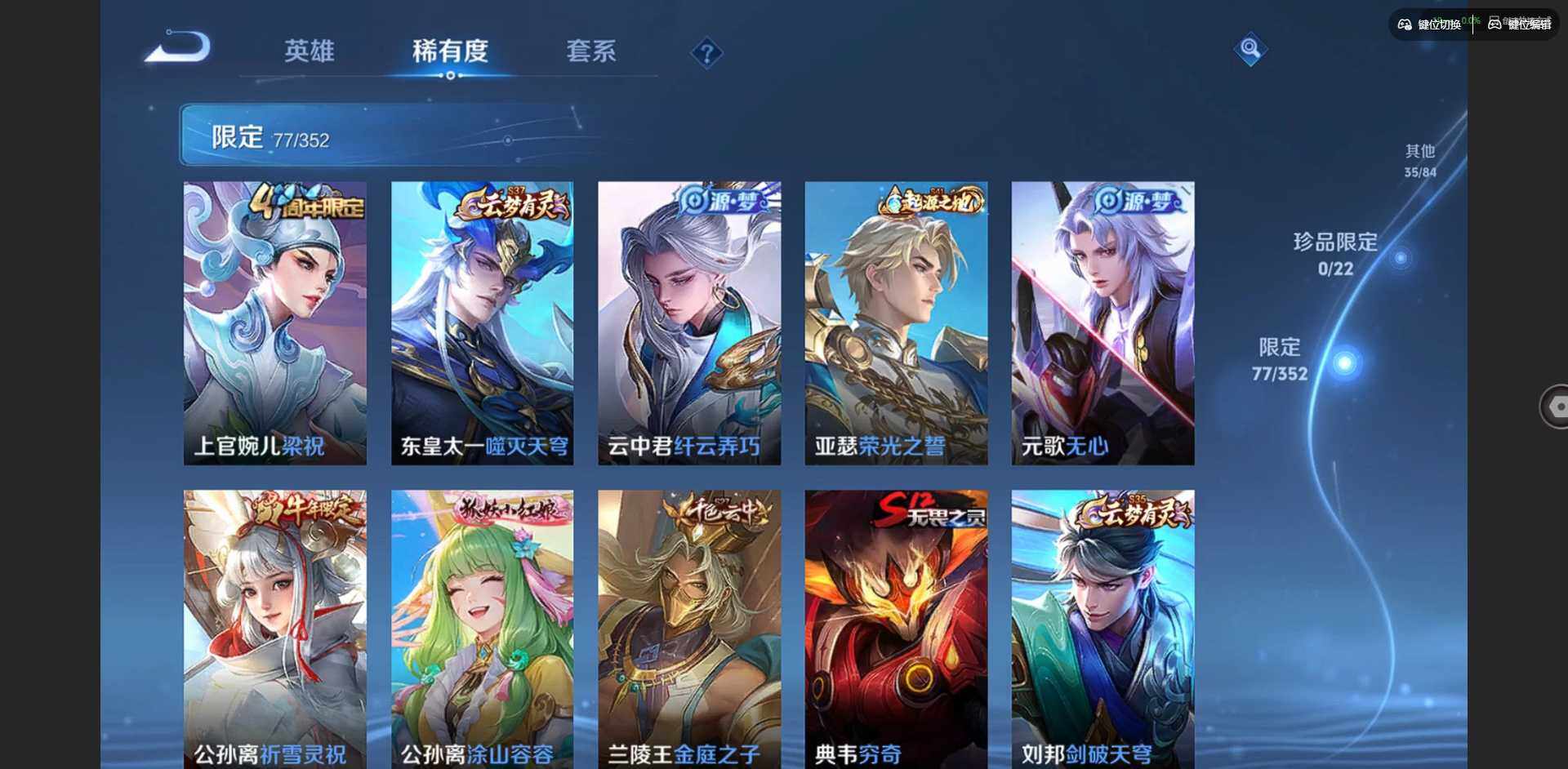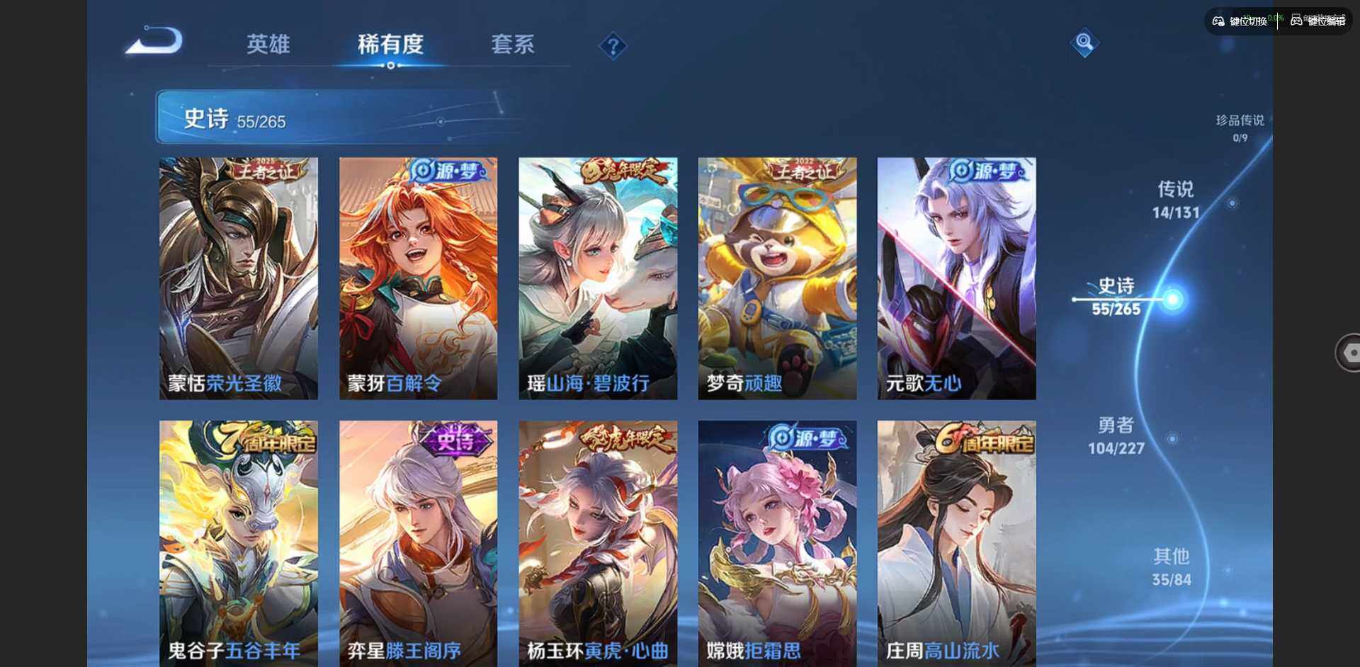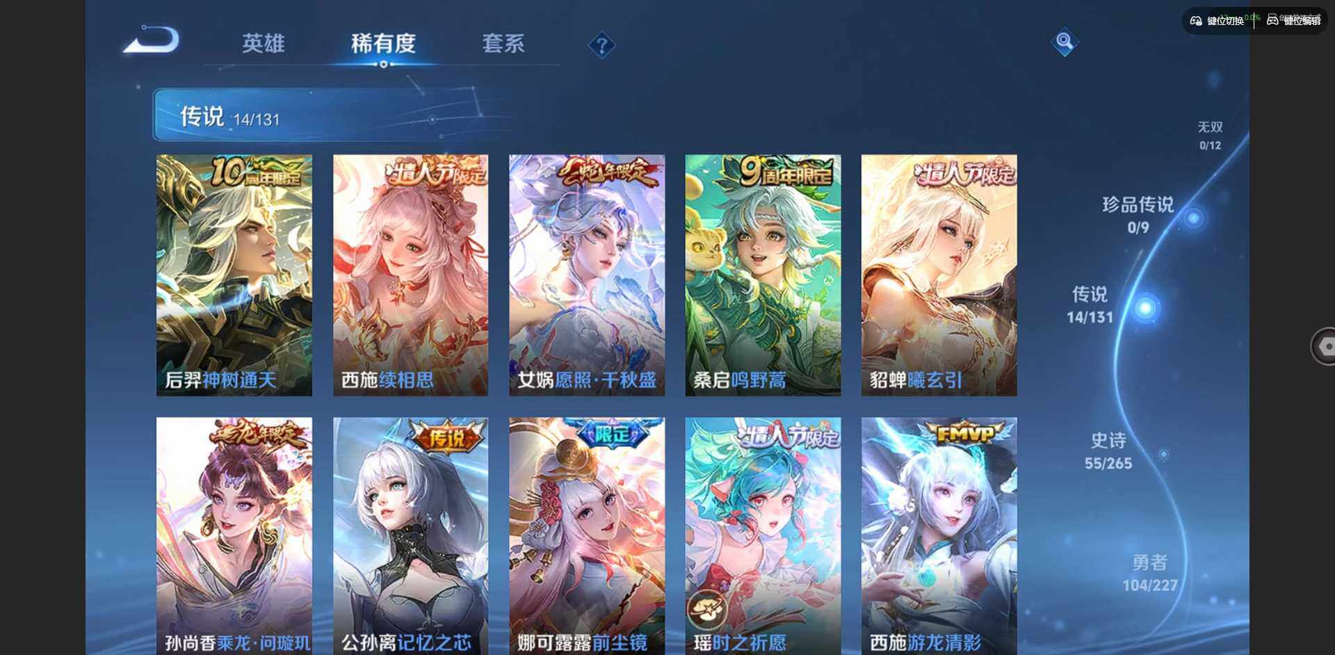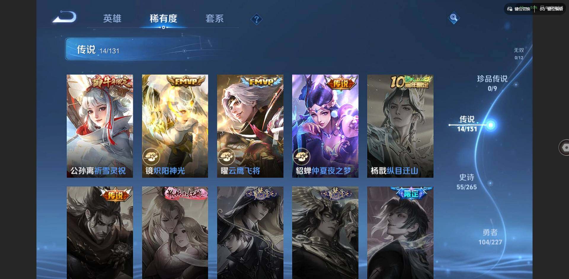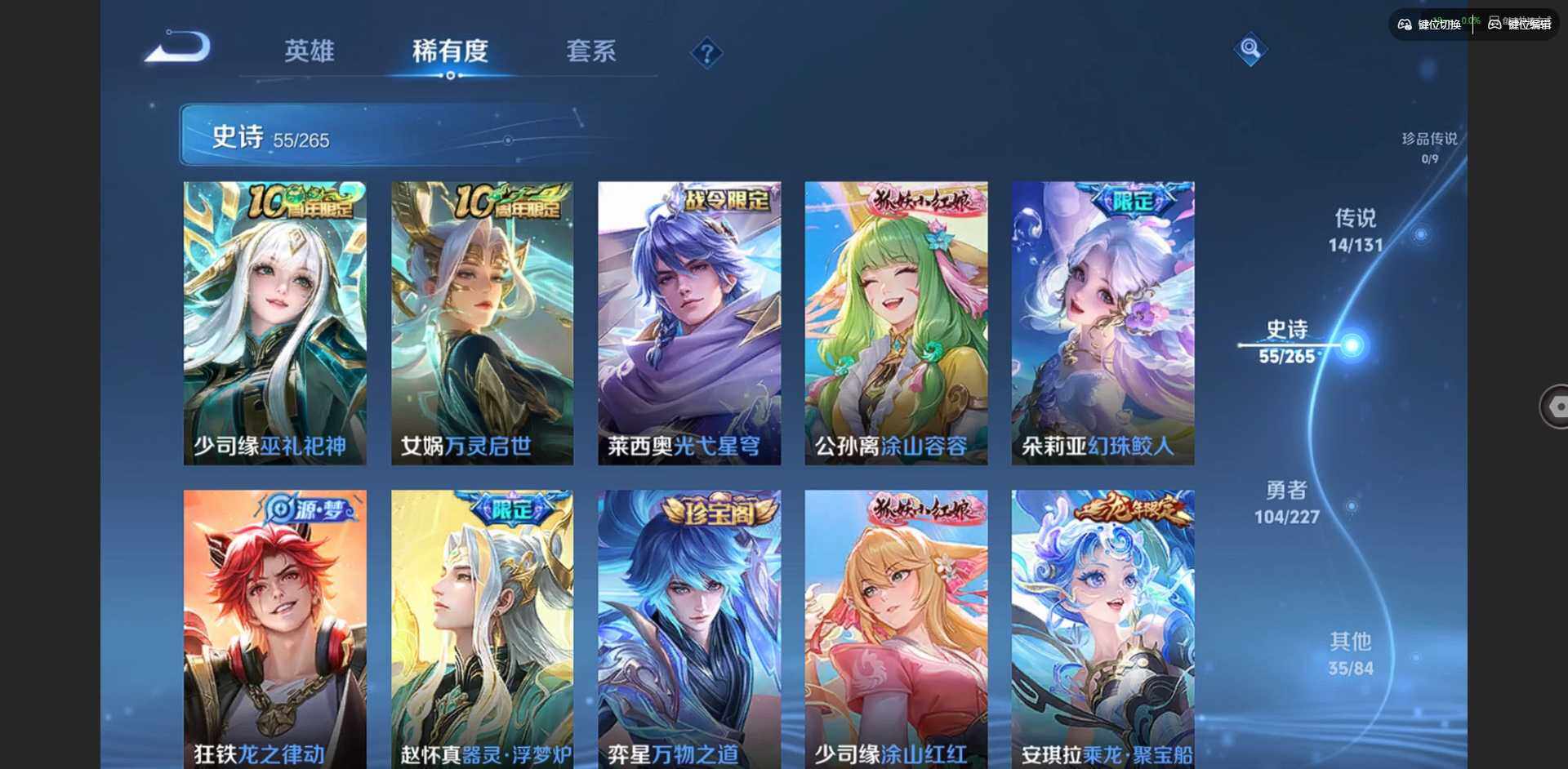 [14511534]实名: 可修改 贵族等级: v7 英雄数: 127 皮肤数: 208 星传说: 金色仲夏夜 传说皮: 云鹰飞将炽阳神光仲夏夜之梦游龙清影记忆之芯乘龙·问璇玑貂蝉曦玄引续相思神树通天 限定皮: 李小龙祈雪灵祝梁祝白鹤梁神女高山流水寅虎·心曲时之祈愿-瑶前尘镜五谷丰年山海·碧波行鸣野蒿愿照·千秋盛