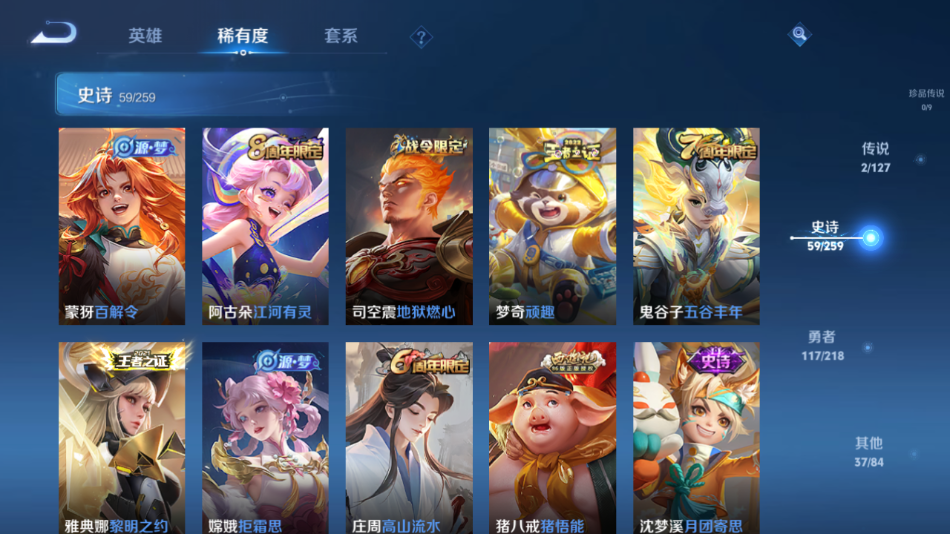 _2301718-实名:可修改性别:男号贵族等级:v5英雄数:124皮肤数:216荣耀水晶:鸣剑·曳影限定皮:李小龙高山流水猪悟能五谷丰年鸣野蒿逐霄战戟愿照·九州拓亮点:【精品号手慢无】发育路32段!1典藏鸣剑曳影,热门皮:李小龙高山流水猪悟能五谷丰年鸣野蒿逐霄战戟愿照·九州拓,魅语末日机甲-吕布铭文满