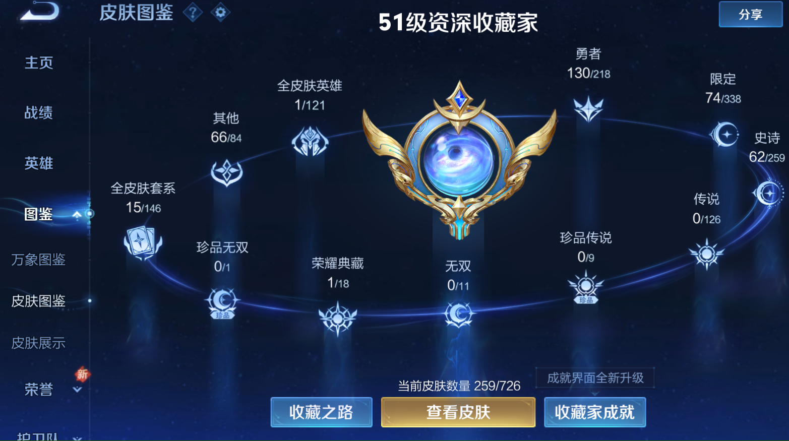 _2301720-实名:不可修改性别:男号贵族等级:v7英雄数:123皮肤数:259荣耀水晶:全息碎影限定皮:冰锋战神遇见飞天李小龙游园惊梦梁祝辉光之辰玄武志高山流水猪悟能五谷丰年亮点:【精品号手慢无】对抗路20段17印记1典藏全息碎影消耗任意点券恢复贵7热门皮:游园惊梦辉光之辰玄武志荣光圣徽.铭文满