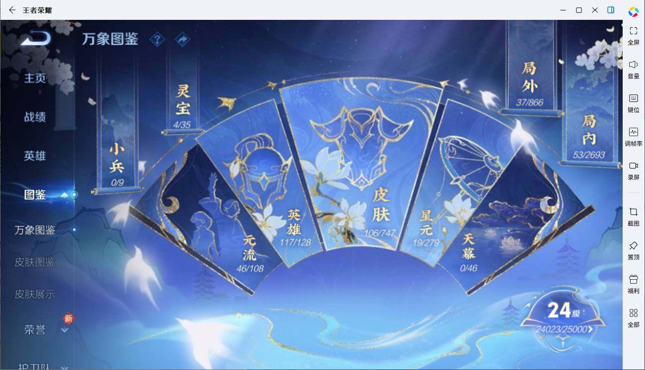 117英雄-106皮肤-可二次【店主推荐捡漏号!可直接换绑】安卓q-v4-永恒钻石iii段位-117英雄-106皮肤-1珍品传说-2传说-22史诗 【珍品传说】:嫦娥器灵落星盏 【传说皮肤】:澜愿照九州拓,桑启鸣野蒿 【限定皮肤】:姜子牙天穹之誓,狄仁杰阴阳师,项羽海滩派对,鲁班大师探海日志,张良古海寻踪,鬼谷子天穹祈灯,