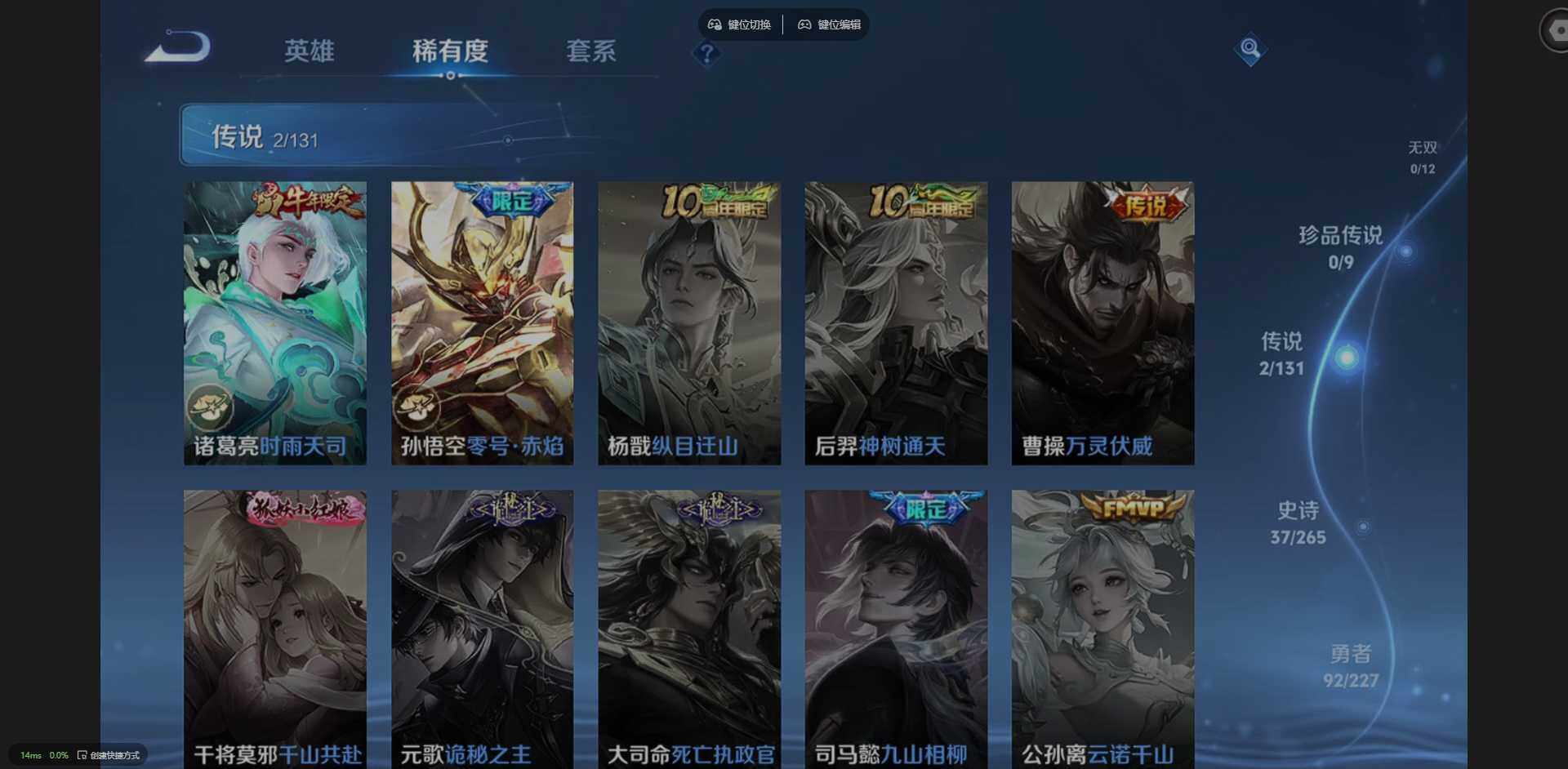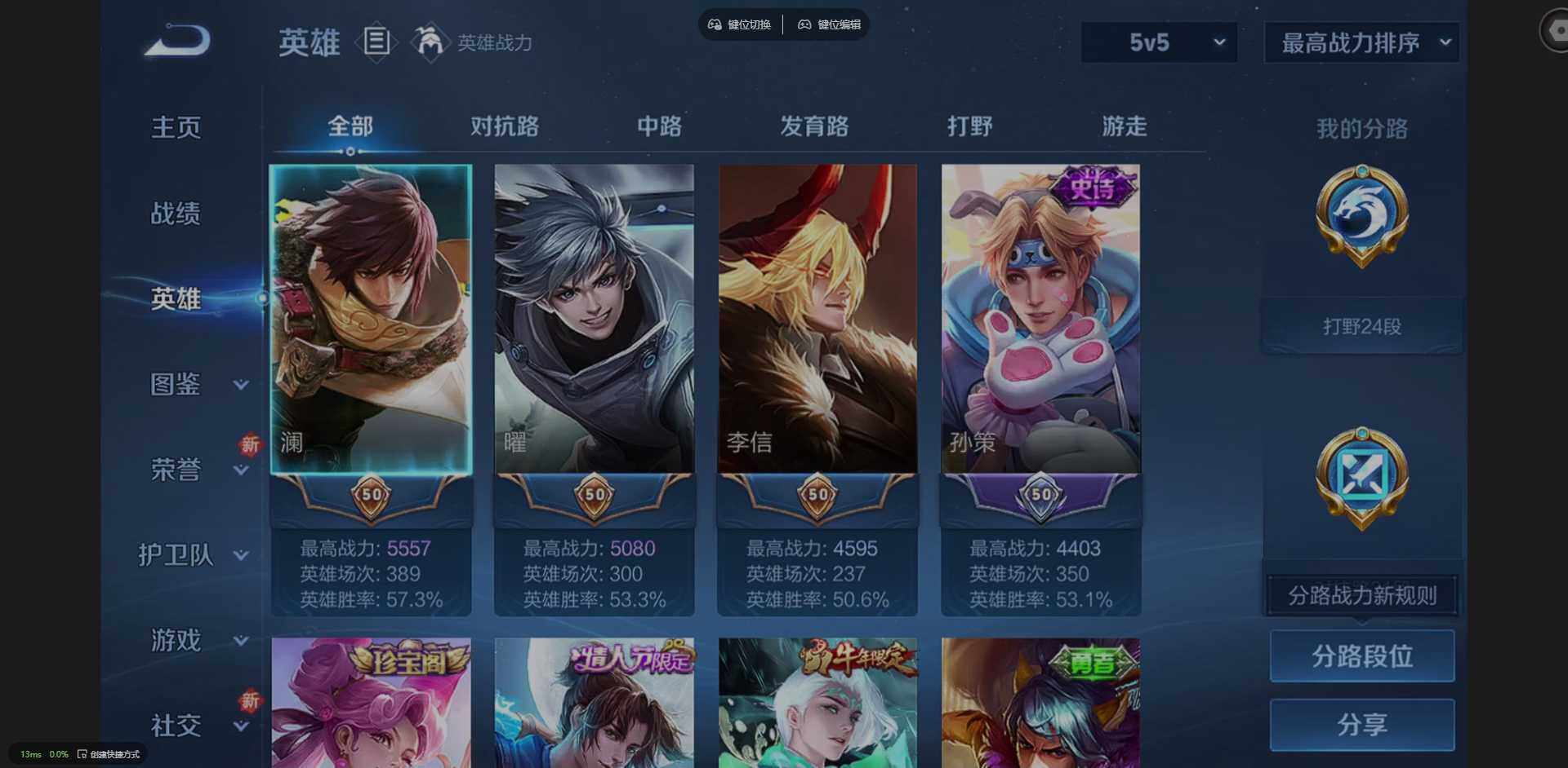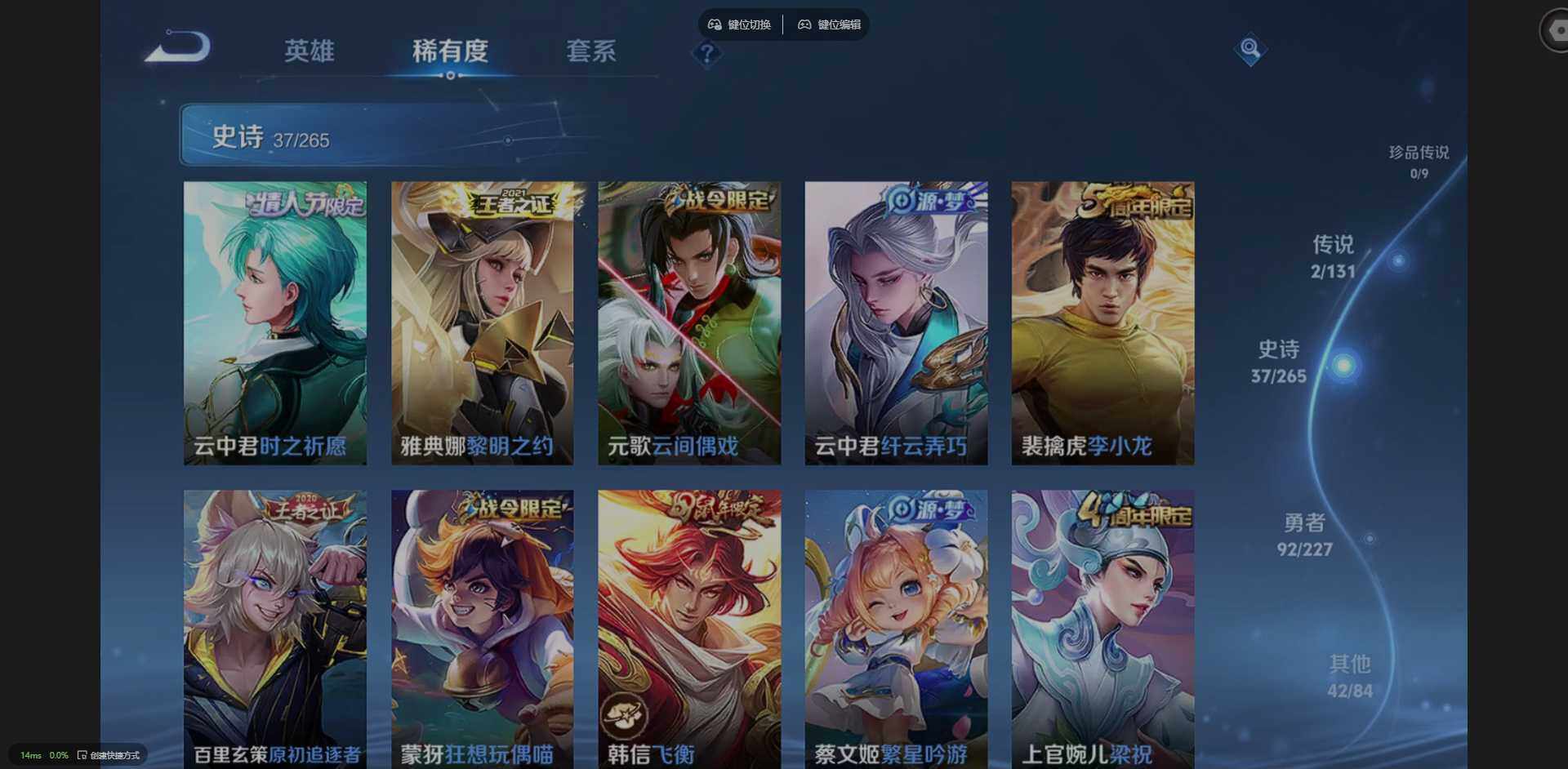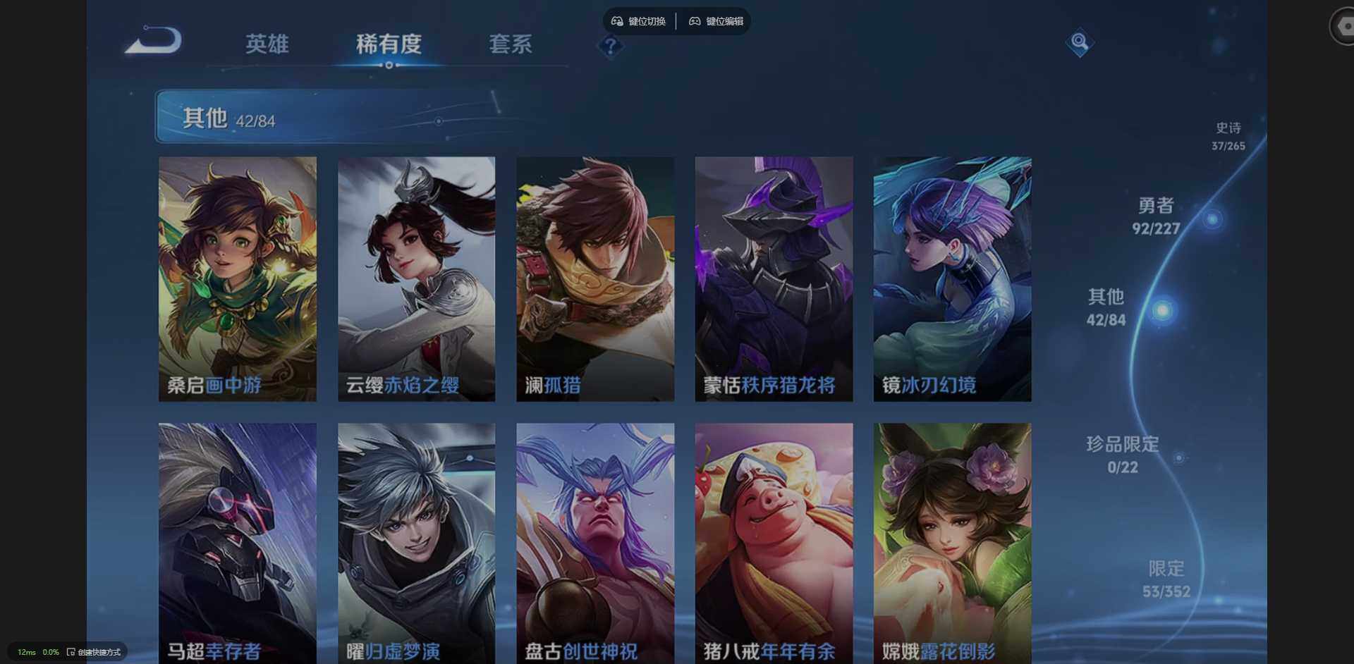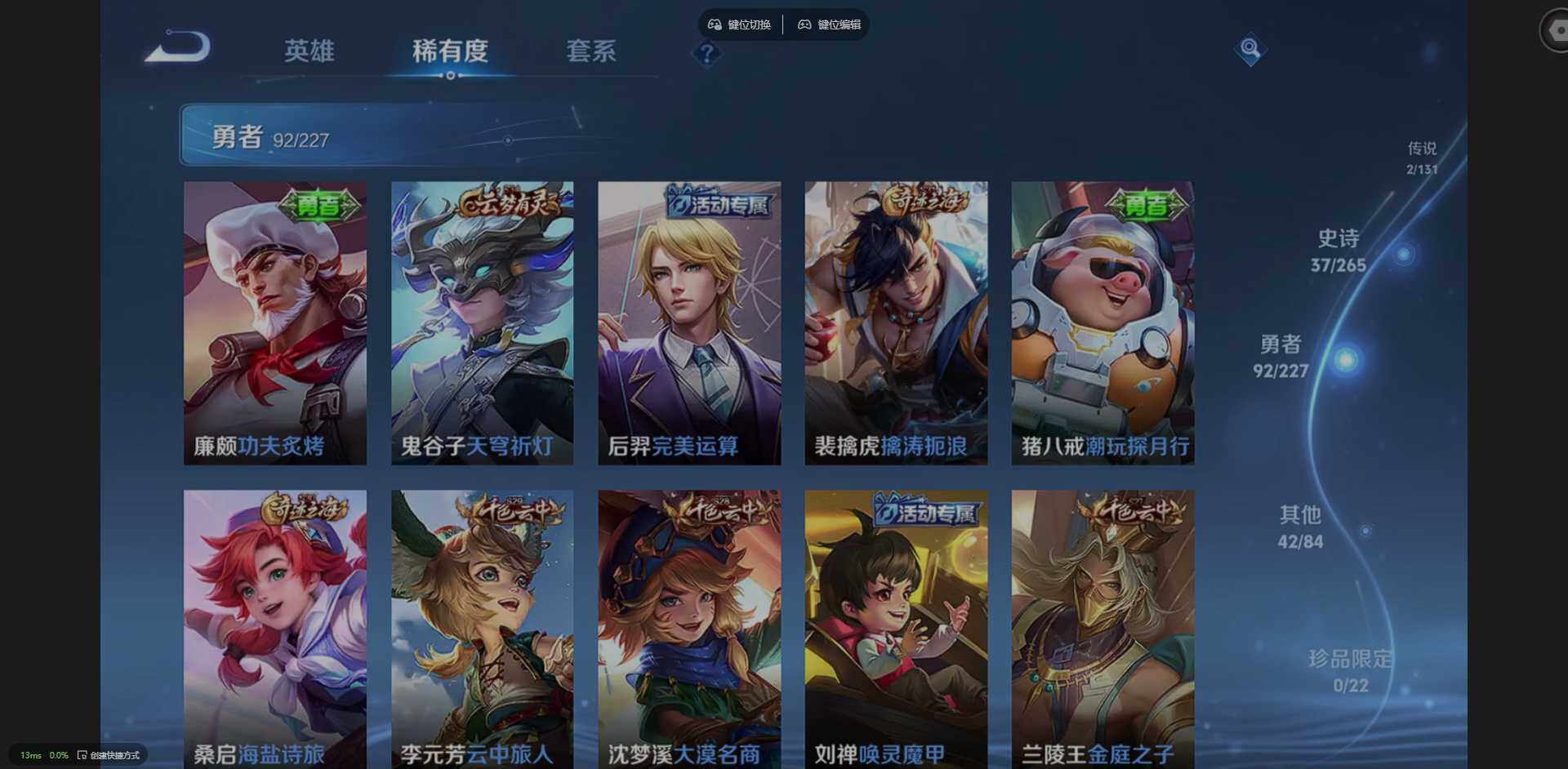 123英雄-173皮肤-实名: 可修改 贵族等级: v7 英雄数: 123 皮肤数: 173 传说皮: 零号·赤焰 限定皮: 遇见飞天李小龙梁祝时雨天司飞衡逐梦之影至尊宝时之祈愿-云中君
