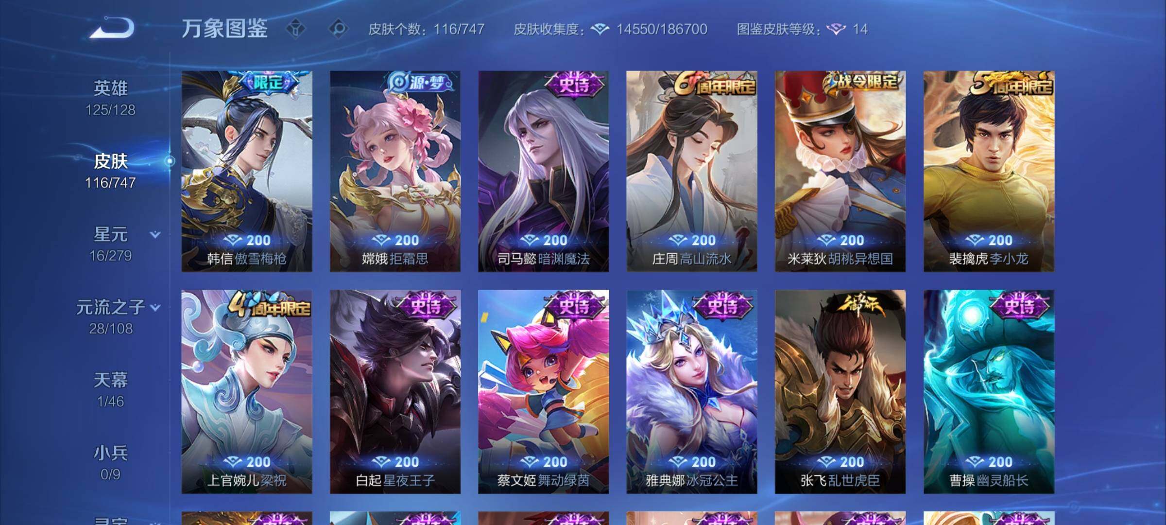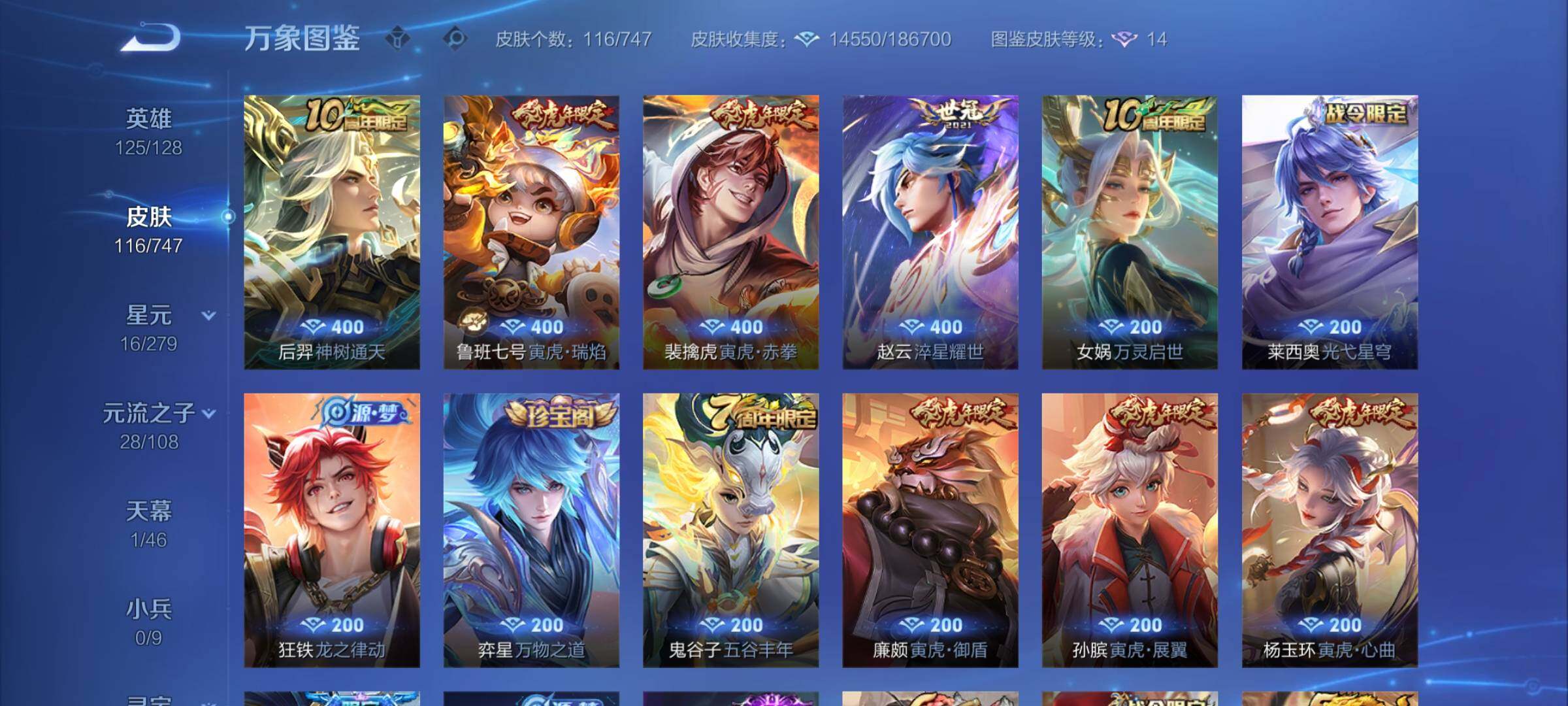 【精品虎神纪小号·满虎年限定-虎年套·寅虎焰心·淬星耀世·傲雪梅呛】【可二次】w7854-安卓q-125英雄-116皮肤-4王者印记-170铭文-贵族积分0w【贵族3】【1星传说·4传说·1天幕·2按键】【因赛季更新游戏段付以上号为准!】 【星元皮肤】:鲁班七号寅虎焰心 【天幕】:共赏芳华天幕 【传说皮肤】:后羿神树通天,裴擒虎寅虎赤拳,鲁班七号寅虎瑞焰,赵云淬星耀世 【限定皮肤】:狄仁杰