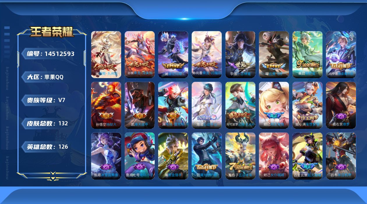 [14512593]金标云中君 苹果q-v7-永恒钻石i段位-126英雄-132皮肤-12传说-34史诗 【英雄全皮】:澜全皮,海诺全皮 【传说皮肤】:后羿神树通天,澜愿照九州拓,桑启鸣野蒿,云中君群星魔术团,孙尚香乘龙问璇玑,孙策乘龙淬吴钩,澜逐花归海,澜电玩雷克斯,铠绛天战甲,曜云鹰飞将,李信一念神魔,孙悟空地狱火 【限定皮肤】:狄仁杰阴阳师,赵云皇家上将,妲己时之奇旅,马可波罗山海玄木吟,狄仁杰魔术师,项羽海滩派对,李元芳云中旅人,鬼谷子五谷丰年,沈梦溪大漠名商,裴擒虎擒涛扼浪,鲁班大师探海日志,桑启海盐诗旅,阿古朵江河有灵,张良古海寻踪,蒙犽百解令,高渐离燃音魔法,妲己灵卜魔法,鬼谷子天穹祈灯,姬小满妄想食味,孙尚香乘龙问璇玑,孙策乘龙淬吴钩,百里玄策超元猎域,鲁班七号蔬乡物语,李元芳蔬乡物语,刘邦剑破天穹,云中君群星魔术团,海诺心动手记 【年限皮肤】:马可波罗山海玄木吟,孙尚香乘龙问璇玑,孙策乘龙淬吴钩 【赛季限定】:张良古海寻踪,李元芳云中旅人,沈梦溪大漠名商,裴擒虎擒涛扼浪,鲁班大师探海日志,桑启海盐诗旅,鬼谷子天穹祈灯,刘邦剑破天穹 【战令限定】:高渐离燃音魔法,妲己灵卜魔法,鲁班七号蔬乡物语,李元芳蔬乡物语 【史诗皮肤】:鲁班七号电玩小子,赵云皇家上将,赵云未来纪元,甄姬冰雪圆舞曲,狄仁杰魔术师,宫本武藏鬼剑武藏,孙尚香水果甜心,嬴政暗夜贵公子,妲己女仆咖啡,墨子龙骑士,刘禅绅士熊喵,吕布末日机甲,韩信白龙吟,亚瑟心灵战警,百里守约特工魅影,铠曙光守护者,李元芳逐浪之夏,白起星夜王子,孙策猫狗日记,狄仁杰鹰眼统帅,橘右京修罗,百里玄策热力回旋,澜赏金猎手,妲己时之奇旅,鬼谷子五谷丰年,马可波罗山海玄木吟,阿古朵江河有灵,蒙犽百解令,妲己灵卜魔法,高渐离燃音魔法,姬小满妄想食味,百里玄策超元猎域,鲁班七号蔬乡物语,海诺心动手记,牛魔星界战将 【其他皮肤】:项羽海滩派对,韩信街头霸王,达摩大发明家,赵云忍炎影,芈月红桃皇后,武则天东方不败,妲己少女阿狸,典韦黄金武士,亚瑟死亡骑士,达摩拳王,花木兰兔女郎,甄姬花好人间,刘备万事如意,后羿阿尔法小队,狄仁杰阴阳师,钟无艳海滩丽影,王昭君幻想奇妙夜,狂铁命运角斗场,老夫子功夫老勺,孙尚香沉稳之力,诸葛亮掌控之力,李白敏锐之力,孙膑归虚梦演,沈梦溪鲨炮海盗猫,哪吒次元突破,狂铁特工战影,刘禅秘密基地,鲁班大师乓乓大师,沈梦溪大