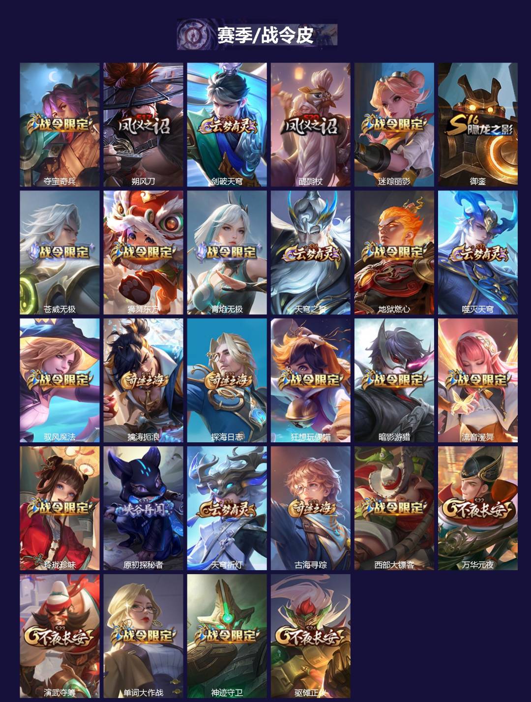 125英雄-221皮肤-v7 1典藏 14传说 125英雄 221皮肤 可修改实名 【稀有英雄】:大司命韩信韩跳跳夏洛特夏师傅艾琳橘右京橘子娜可露露鸟人不知火舞赵云金蝉唐僧戈娅 【荣耀水晶】:弑呛猎影韩信典藏 【传说皮】:神树通天地狱之眼末日机甲-孙尚香
