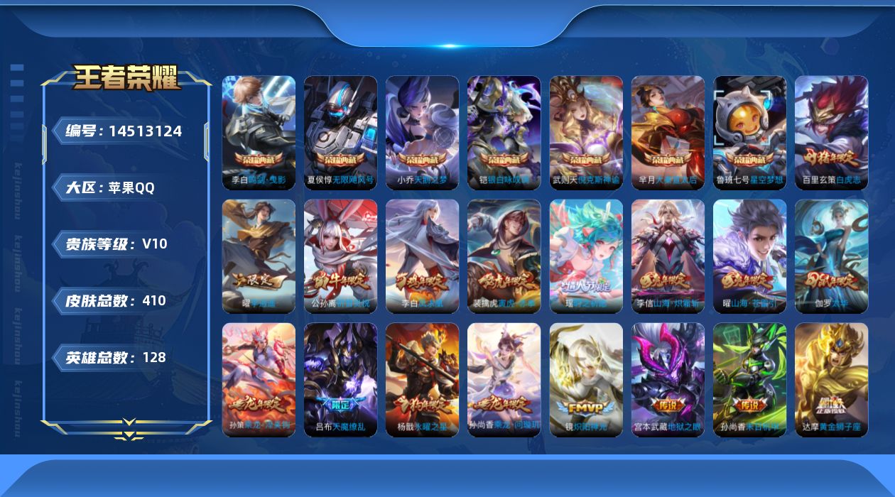 [14513124]0apa66不可二次"410皮肤v10水晶8传说62优质限定83 钱包已注销、信用分正常、无设备脸 李信全皮, 水晶皮肤:大秦宣太后无限飓风号鸣剑·曳影银白咏叹调天鹅之梦倪克斯神谕武则天星空梦想 新传说限定:李 传说限定:天魔缭乱无限倾心-项羽永曜之星山海·炽霜斩挚爱之约乘龙·淬吴钩乘龙·铭钟鼎凤求凰默契交锋-兰陵王齐天大圣白虎志寅虎·赤拳云中君群星魔术团山海·琳琅生遇见胡旋星穹之声绯月行补天武陵仙君时雨天司异界灵契乘龙·问璇玑寅虎·瑞焰艾琳觅芳踪无限倾心-虞姬祈雪灵祝太华挚爱花嫁时之祈愿-瑶燃星之曲启示之音零号·赤焰山海·苍雷引神树通天启明星使 传说皮肤:一念神魔音你心动-小乔乞巧织情游龙清影末日机甲-孙尚香黄金射手座云霓雀翎黄金狮子座冠军飞将胖达荣荣末日机甲-孙策无双飞将淬星耀世地狱之眼诗剑行地狱火时之恋人-刘备绛天战甲云鹰飞将炽阳神光音你心动-周瑜海洋之心仲夏夜之梦猫影幻舞久胜战神超时空战士-狄仁杰 新史诗限定:万灵启世涂山容容 史诗限定:寅虎·御盾白晶晶御风骁将冰锋战神青春决赛季默契交锋-花木兰神威引擎之心百木心呛岱宗飞衡傲雪梅呛至尊宝孙行者梅西时之祈愿-云中君降魔时之彼端雪夜绮愿周瑜女儿国国王乘龙·聚宝船寅虎·心曲冰霜恋舞曲如梦令-嫦娥乒乒小将山海·玄木吟辉光之辰烈魂朱雀志蜜橘之夏玉兔公主琥珀纪元伽罗云端筑梦师寅虎·展翼奔雷神使白鹤梁神女乘龙·忆丹青山海·碧波行匿光决锋者一生所爱匿光追影者天狼绘梦者逐梦之星天狼溯光者天狼运算者 新史诗皮肤:石田雨龙末日机甲-莱西奥 优质史诗皮肤:雪上飞焰永昼暗渊魔法晚萤修罗赏金猎手天秀·音浪唤灵魅影时之奇旅-安琪拉魅语时之恋人-孙尚香龙鼓争鸣遇见神鹿 周年皮肤:李小龙游园惊梦遇见飞天鹤鸣心笺神树通天高山流水
