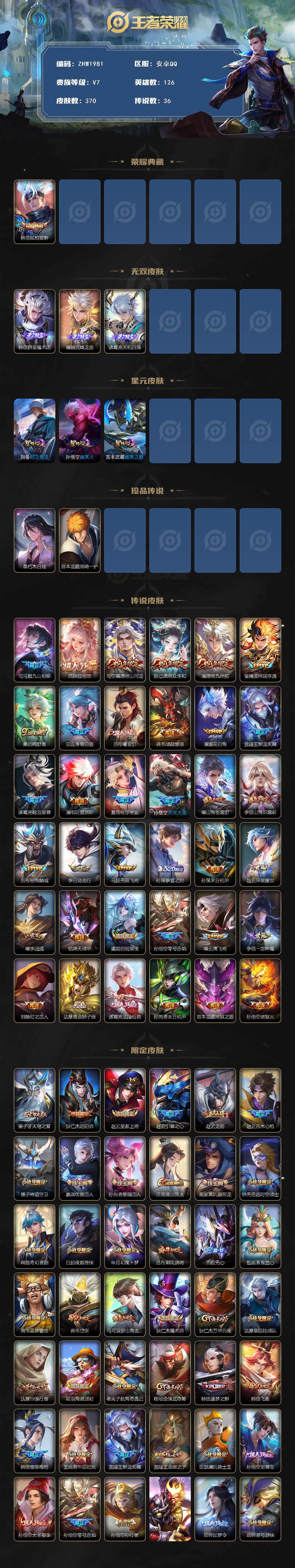 126英雄-370皮肤-【店主推荐捡漏号!可直接换绑】安卓q-v9-最强王者段位-126英雄-370皮肤-1典藏皮肤-3无双-2珍品传说-36传说-100史诗 【英雄全皮】:达摩全皮,司马懿全皮,韩信全皮,李信全皮,曜全皮,蒙恬全皮,澜全皮,司空震全皮,戈娅全皮 【荣耀典藏】:韩信弑呛猎影 【无双皮肤】:韩信群星魔术团,曜