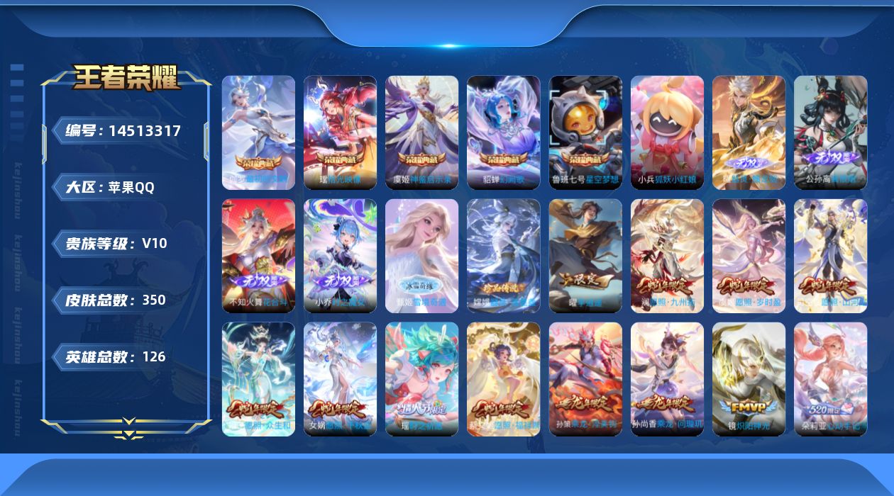 [14513317]0apgc2可二次"350皮肤v10无双5水晶6珍品传说1女号传说39优质限定65 qq钱包已注销 信用分合格 星会员已关联 水晶皮肤:幻阙歌星空梦想神鉴启示录最初的交响拾光映像 小兵皮肤:狐妖小红娘 无双皮肤:器灵·螭龙剑时之魔女雪境奇遇-甄姬花合斗离恨烟 珍品传说皮肤:器灵·落星盏 新传说限定:愿照·山河定祥瑞亨通李愿照·九州拓愿照·众生和愿照·千秋盛愿照·岁时盈愿照·福禄聚 传说限定:吕布曦玄引挚爱之约乘龙·淬吴钩乘龙·铭钟鼎默契交锋-兰陵王山海·琳琅生貂蝉曦玄引追逃游戏安琪拉星穹之声鹤羽星尊金乌负日乘龙·问璇玑艾琳觅芳踪炽翼辉光朵莉亚心动手记挚爱花嫁大乔-时之奇旅时之祈愿-瑶神树通天启明星使 传说皮肤:音你心动-小乔游龙清影末日机甲-孙尚香黄金射手座小动物乐团冠军飞将地狱之眼炽阳神光仲夏夜之梦久胜战神记忆之芯 新史诗限定:赞萌露比器灵·浮梦炉星之鸣奏千劫归真幻珠鲛人织梦人 史诗限定:浮光幕影默契交锋-花木兰神威东方月初龙胆谪仙醉月孙行者百相守梦刘备青龙志超元猎域冰霜神祇埋骨钱纯白花嫁时之奇旅-妲己幽恒魔法小厨娘乘龙·聚宝船炽弈燎原如梦令-嫦娥至美·乘鲤谣海诺心动手记如梦令-后羿烈魂琥珀纪元伽罗玄嵩白鹤梁神女乘龙·忆丹青山海·碧波行涂山红红匿光破解者 新史诗皮肤:糖绘人间上官婉儿群星魔术团浮梦罗烟星界特工狼魂孤将百相守梦-黄忠电玩·兔顽号夜落电台奇遇星旅 优质史诗皮肤:永昼暗渊魔法晚萤赏金猎手魅语银翎春语怒海争锋真我赫兹百里守约白蛇遇见神鹿 周年皮肤:鹤鸣心笺神树通天五谷丰年 珍宝阁:蔷薇恋人 史诗皮肤:星夜王子圣诞狂欢乘风破浪幽灵船长功夫厨神德古拉伯爵心灵战警未来纪元-赵云节奏热浪鬼剑武藏千年之狐紫霞仙子暗隐猎兽者冰冠公主纤云弄巧顽趣-阿古朵缤纷独角兽金属风暴魅力维加斯女仆咖啡冰雪圆舞曲圣诞恋歌心灵骇客偶像歌手滕王阁序拒霜思水果甜心鹰眼统帅逐浪之夏特工魅影箭羽风息电玩·爆裂旋风乱世虎臣乐园奇幻夜舞动绿茵 "