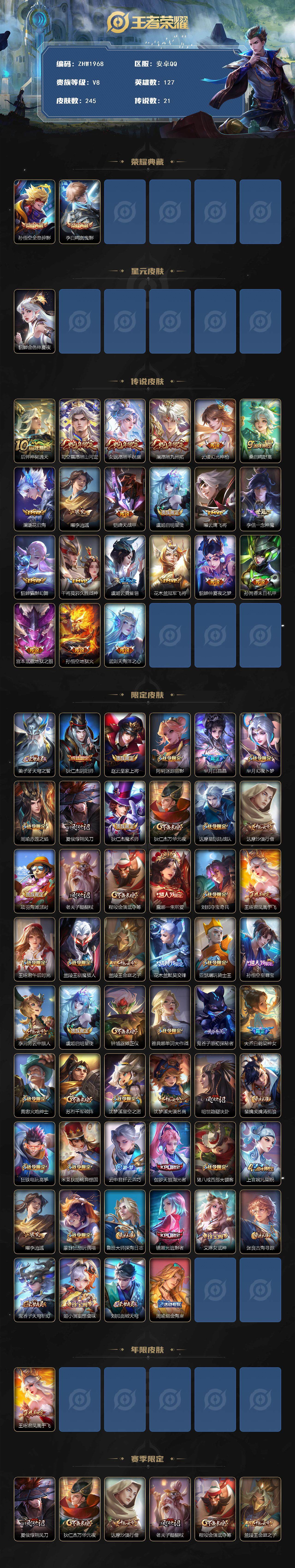127英雄-245皮肤-可二次【店主推荐捡漏号!可直接换绑】,安卓q-v8-最强王者段位-127英雄-245皮肤-2典藏皮肤-21传说-62史诗 【英雄全皮】:孙权全皮 【荣耀典藏】:孙悟空全息碎影,李白鸣剑曳影 【传说皮肤】:后羿神树通天,司空震愿照山河定,女娲愿照千秋盛,澜愿照九州拓,云缨幻光神呛,桑启鸣野蒿,澜逐花归