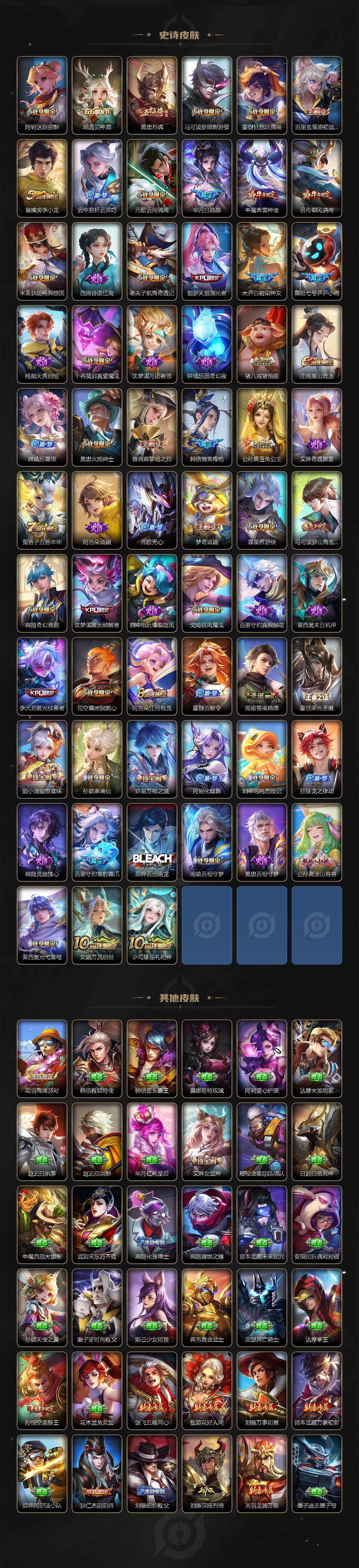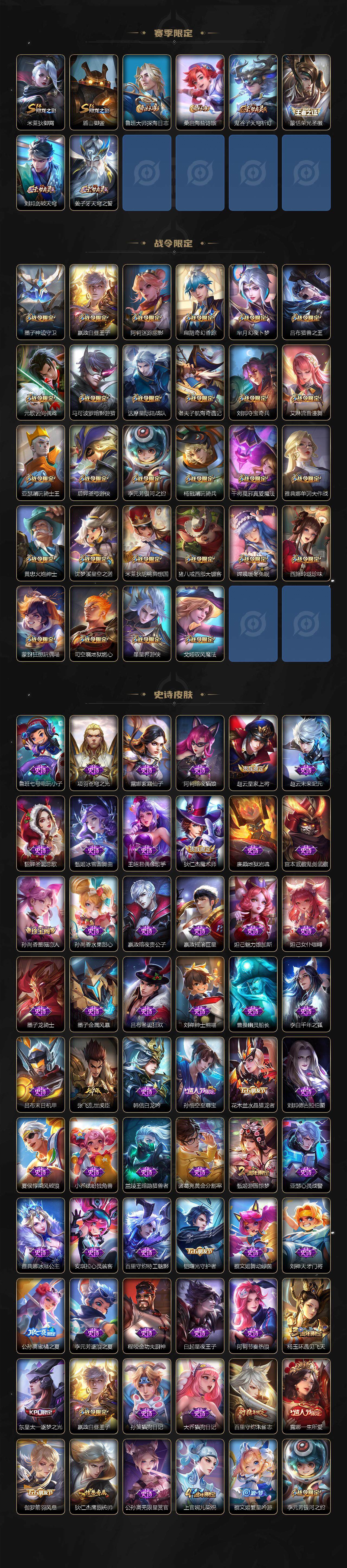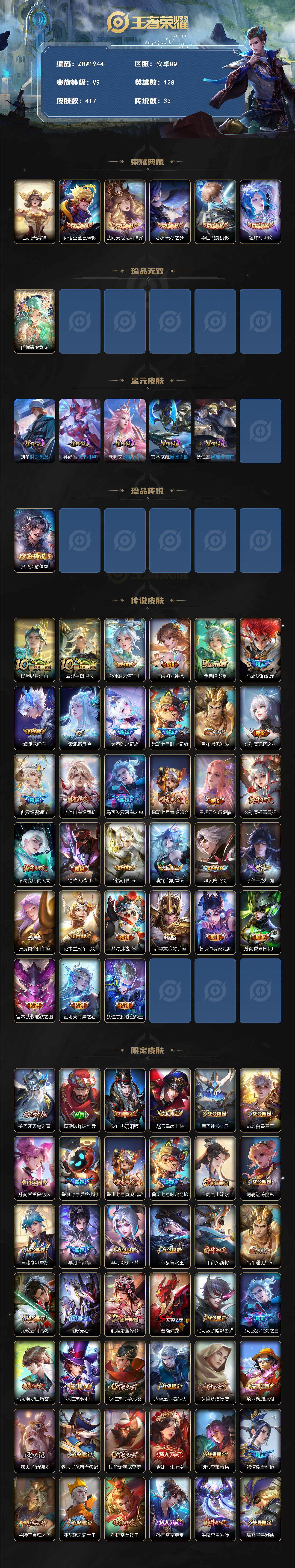 [14513884]【店主推荐捡漏号!可直接换绑】安卓q-v9-最强王者段位-128英雄-417皮肤-5典藏皮肤-1典藏英雄-1珍品无双-1珍品传说-33传说-123史诗 【英雄全皮】:刘禅全皮,鬼谷子全皮,沈梦溪全皮,李信全皮,猪八戒全皮,蒙恬全皮,阿古朵全皮,莱西奥全皮,戈娅全皮,空空儿全皮,影全皮 【荣耀典藏】:武则天英雄,孙悟空全息碎影,武则天倪克斯神谕,小乔天鹅之梦,李白鸣剑曳影,貂蝉幻阙歌 【珍品无双】:貂蝉馥梦繁花 【珍品传说】:张飞兔狲蓬尾 【传说皮肤】:杨戬纵目迁山,后羿神树通天,公孙离云诺千山,云缨幻光神呛,桑启鸣野蒿,马超琥珀纪元,澜逐花归海,露娜霜月吟,大乔时之奇旅,鲁班七号时之奇旅,吕布遇见神鼓,公孙离记忆之芯,伽罗炽翼辉光,李信山海炽霜斩,马可波罗深海之息,鲁班七号寅虎瑞焰,王昭君乞巧织情,公孙离祈雪灵祝,诸葛亮时雨天司,铠绛天战甲,镜炽阳神光,虞姬启明星使,曜云鹰飞将,李信一念神魔,张良黄金白羊座,花木兰冠军飞将,梦奇胖达荣荣,后羿黄金射手座,貂蝉仲夏夜之梦,孙尚香末日机甲,宫本武藏地狱之眼,武则天海洋之心,狄仁杰超时空战士 【限定皮肤】:姜子牙天穹之誓,杨戬破阵退雄兵,狄仁杰阴阳师,赵云皇家上将,墨子神迹守卫,嬴政白昼王子,孙尚香蔷薇恋人,鲁班七号乒乒小将,鲁班七号寅虎瑞焰,鲁班七号时之奇旅,庄周高山流水,阿轲迷踪丽影,扁鹊奇幻香踪,芈月白晶晶,芈月幻夜卜梦,吕布猎兽之王,吕布御风骁将,吕布遇见神鼓,元歌云间偶戏,元歌无心,甄姬游园惊梦,曹操烛龙,马可波罗暗影游猎,马可波罗深海之息,马可波罗山海玄木吟,狄仁杰魔术师,狄仁杰万华元夜,达摩星际陆战队,达摩沙漠行僧,项羽海滩派对,老夫子醍醐杖,老夫子航海奇遇记,程咬金演武夺筹,露娜一生所爱,刘邦夺宝奇兵,韩信傲雪梅呛,兰陵王金庭之子,亚瑟潮玩骑士王,孙悟空美猴王,孙悟空至尊宝,牛魔奔雷神使,后羿圣弓游侠,李元芳银河之约,李元芳匿光侦查者,李元芳云中旅人,虞姬启明星使,钟馗驱傩正仪,杨玉环遇见飞天,杨戬潮玩骑兵,干将莫邪真爱魔法,雅典娜单词大作战,雅典娜黎明之约,蔡文姬繁星吟游,太乙真人华丽摇滚,东皇太一逐梦之光,鬼谷子原初探秘者,鬼谷子五谷丰年,诸葛亮时雨天司,大乔白鹤梁神女,大乔时之奇旅,黄忠烈魂,黄忠火炮绅士,苏烈千军破阵,百里玄策原初追逐者,百里守约朱雀志,弈星混沌棋,梦奇顽趣,公孙离蜜橘之夏,公孙离