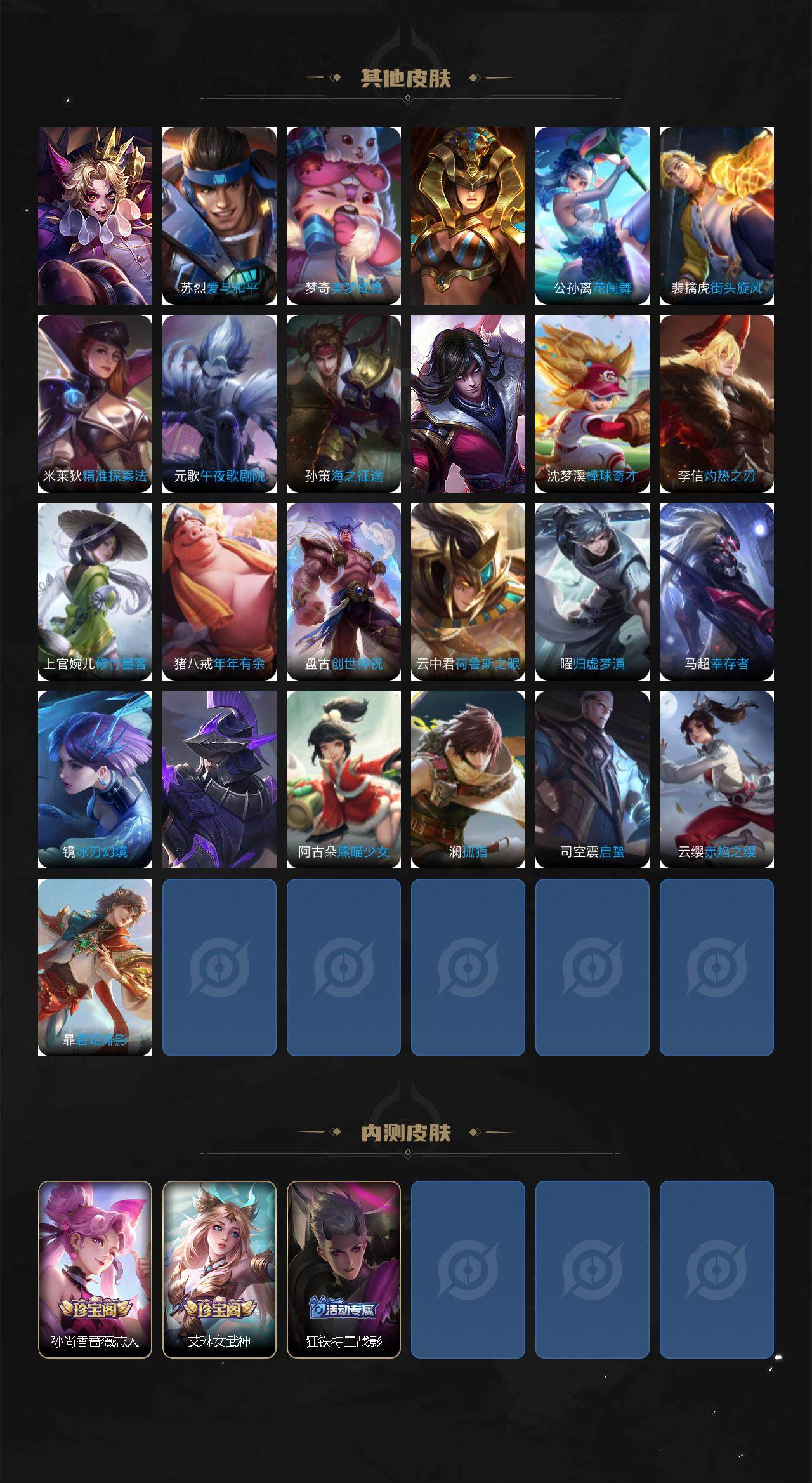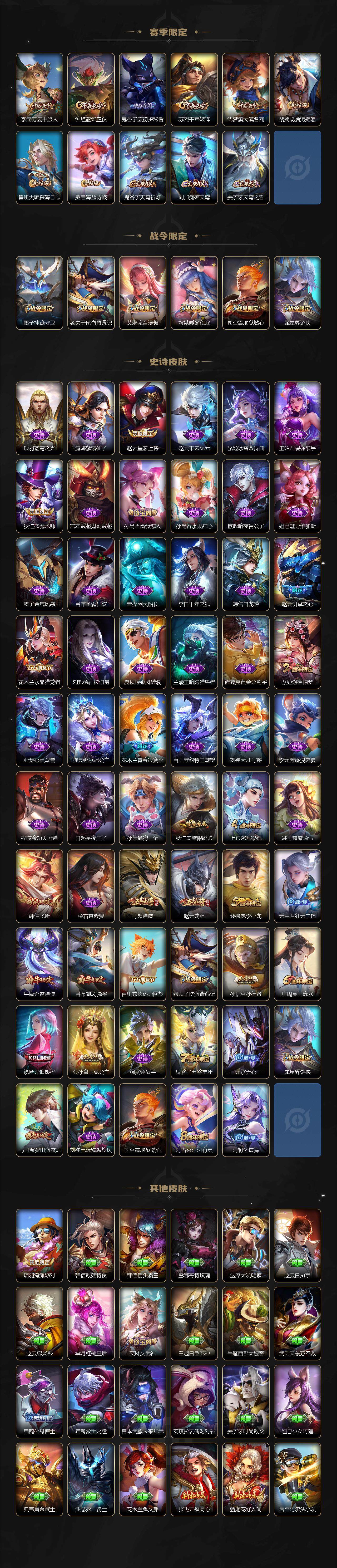 可二次 【店主推荐捡漏号!可直接换绑】安卓q-v7-永恒钻石v段位-123英雄-224皮肤-1珍品传说-13传说-59史诗 【英雄全皮】:橘右京全皮,影全皮 【珍品传说】:马可波罗怪盗基德 【传说皮肤】:桑启鸣野蒿,孙尚香乘龙问璇玑,孙策乘龙淬吴钩,铠琥珀纪元,澜逐花归海,伽罗炽翼辉光,曜山海苍雷引,李白诗剑行,橘右京枫霜尽,孙尚香音你闪耀,曜李 ,曜云鹰飞将,百里玄策白虎志 【限定皮肤】:姜子牙天穹之誓,狄仁杰阴阳师,赵云皇家上将,赵云引擎之心,赵云龙胆,墨子神迹守卫,孙尚香蔷薇恋人,庄周高山流水,吕布御风骁将,元歌无心,甄姬游园惊梦,马可波罗山海玄木吟,狄仁杰魔术师,狄仁杰万华元夜,达摩沙漠行僧,项羽海滩派对,老夫子醍醐杖,老夫子航海奇遇记,程咬金演武夺筹,韩信飞衡,兰陵王金庭之子,花木兰青春决赛季,橘右京枫霜尽,孙悟空孙行者,牛魔奔雷神使,李元芳云中旅人,钟馗驱傩正仪,鬼谷子原初探秘者,鬼谷子五谷丰年,苏烈千军破阵,百里玄策白虎志,公孙离玉兔公主,沈梦溪大漠名商,裴擒虎李小龙,裴擒虎擒涛扼浪,云中君纤云弄巧,伽罗炽翼辉光,上官婉儿梁祝,嫦娥暖冬兔眠,曜李 ,曜山海苍雷引,鲁班大师探海日志,镜匿光追影者,桑启海盐诗旅,暃星界游侠,艾琳女武神,艾琳流音漫舞,司空震地狱燃心,阿古朵江河有灵,张良古海寻踪,鬼谷子天穹祈灯,铠琥珀纪元,孙尚香乘龙问璇玑,孙策乘龙淬吴钩,沈梦溪龙舞盛年,刘邦剑破天穹,程咬金群星魔术团,周瑜熔金海岸 【年限皮肤】:百里玄策白虎志,吕布御风骁将,牛魔奔雷神使,韩信飞衡,马超神威,赵云龙胆,马可波罗山海玄木吟,曜山海苍雷引,伽罗炽翼辉光,孙尚香乘龙问璇玑,孙策乘龙淬吴钩 【赛季限定】:狄仁杰万华元夜,达摩沙漠行僧,老夫子醍醐杖,程咬金演武夺筹,兰陵王金庭之子,张良古海寻踪,李元芳云中旅人,钟馗驱傩正仪,鬼谷子原初探秘者,苏烈千军破阵,沈梦溪大漠名商,裴擒虎擒涛扼浪,鲁班大师探海日志,桑启海盐诗旅,鬼谷子天穹祈灯,刘邦剑破天穹,姜子牙天穹之誓 【战令限定】:墨子神迹守卫,老夫子航海奇遇记,艾琳流音漫舞,嫦娥暖冬兔眠,司空震地狱燃心,暃星界游侠 【史诗皮肤】:项羽苍穹之光,露娜紫霞仙子,赵云皇家上将,赵云未来纪元,甄姬冰雪圆舞曲,王昭君偶像歌手,狄仁杰魔术师,宫本武藏鬼剑武藏,孙尚香蔷薇恋人,孙尚香水果甜心,嬴政暗夜贵公子,妲己魅力维加斯,墨子金属风暴,吕布圣诞狂欢,曹操幽灵船长,李白千年之狐,韩信白龙吟,赵云引擎之心,花木兰水晶猎龙者,刘邦德古拉伯爵,夏侯惇乘风破浪,兰陵王暗隐猎兽者,诸葛亮黄金分割率,甄姬游园惊梦,亚瑟心灵战警,雅典娜冰冠公主,花木兰青春决赛季,百里守约特工魅影,刘禅天才门将,李元芳逐浪之夏,程咬金功夫厨神,白起星夜王子,孙策猫狗日记,狄仁杰鹰眼统帅,上官婉儿梁祝,娜可露露晚萤,韩信飞衡,橘右京修罗,马超神威,赵云龙胆,裴擒虎李小龙,云中君纤云弄巧,牛魔奔雷神使,吕布御风骁将,百里玄策热力回旋,老夫子航海奇遇记,孙悟空孙行者,庄周高山流水,镜匿光追影者,公孙离玉兔公主,澜赏金猎手,鬼谷子五谷丰年,元歌无心,暃星界游侠,马可波罗山海玄木吟,刘禅电玩爆裂旋风,司空震地狱燃心,阿古朵江河有灵,阿轲化蝶舞 【其他皮肤】:项羽海滩派对,韩信教廷特使,韩信街头霸王,露娜哥特玫瑰,达摩大发明家,赵云白执事,赵云忍炎影,芈月红桃皇后,艾琳女武神,白起白色死神,牛魔西部大镖客,武则天东方不败,扁鹊化身博士,扁鹊救世之瞳,宫本武藏未来纪元,安琪拉玩偶对对碰,姜子牙时尚教父,妲己少女阿狸,典韦黄金武士,亚瑟死亡骑士,花木兰兔女郎,张飞五福同心,甄姬花好人间,后羿阿尔法小队,狄仁杰阴阳师,刘备纽约教父,刘备汉昭烈帝,关羽龙腾万里,钟无艳海滩丽影,宫本武藏霸王丸,王昭君幻想奇妙夜,老夫子功夫老勺,孙尚香沉稳之力,诸葛亮掌控之力,李白敏锐之力,鬼谷子幻乐之宴,苏烈坚韧之力,大乔守护之力,项羽科学大爆炸,明世隐虹云星官,庄周奇妙博物学,孙膑归虚梦演,沈梦溪鲨炮海盗猫,姜子牙炽热元素使,哪吒次元突破,鲁班七号黑桃队长,盾山圆桌骑士,老夫子醍醐杖,狂铁特工战影,鬼谷子原初探秘者,狄仁杰万华元夜,刘禅秘密基地,杨戬次元傲视,露娜瓷语鉴心,程咬金演武夺筹,张良缤纷绘卷,钟馗驱傩正仪,墨子神迹守卫,鲁班大师乓乓大师,苏烈千军破阵,典韦铁甲之心,妲己紫罗兰之誓,达摩沙漠行僧,程咬金无双福将,兰陵王金庭之子,沈梦溪大漠名商,蒙恬蔚蓝守将,李元芳云中旅人,刘备潮玩造梦师,桑启海盐诗旅,嫦娥暖冬兔眠,海月幻泉雾影,猪八戒潮玩探月行,牛魔牛运亨通,白起乐园追猎者,赵怀真太极少年,裴擒虎擒涛扼浪,太乙真人劲辣红锅,鲁班大师探海日志,李元芳妄想特派,哪吒热血海滩,艾琳流音漫舞,张良古海寻踪,钟无艳聚星闪耀,亚连破局者,后羿完美运算,鬼谷子天穹祈灯,廉颇功夫炙烤,沈梦溪龙舞盛年,钟无艳春野之旅,刘邦剑破天穹,程咬金群星魔术团,大司命暗都幽影,姜子牙天穹之誓,周瑜熔金海岸,盘古敬我三分,东皇太一噬灭天穹,干将莫邪雾都夜雨,吕布逐霄战戟,影魅影绮裳,姜子牙星梦巡礼,鲁班七号福禄兄弟,高渐离金属狂潮,项羽帝国元帅,露娜绯红之刃,貂蝉异域舞娘,老夫子潮流仙人,曹操超能战警,张良一千零一夜,小乔万圣前夜,孙膑未来旅行,孙悟空西部大镖客,周瑜海军大将,后羿精灵王,兰陵王