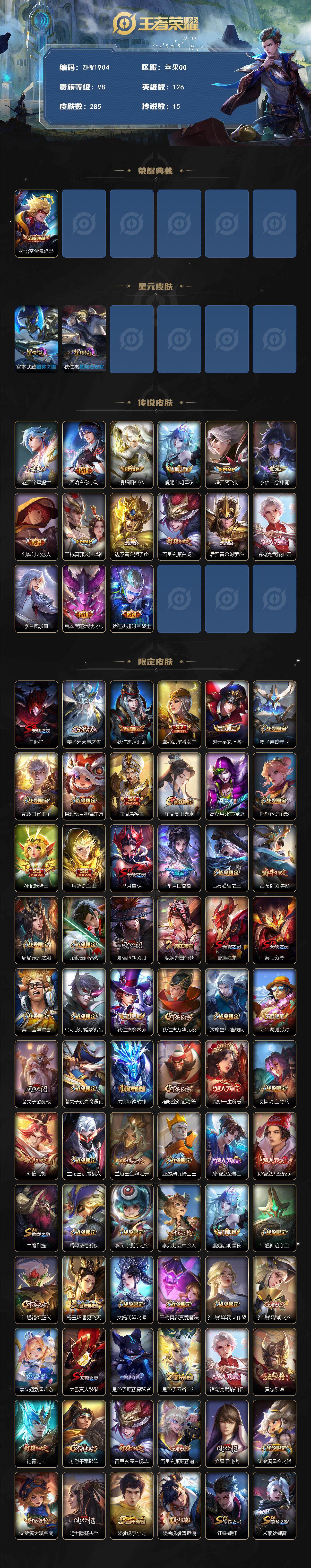 【店主推荐捡漏号!可直接换绑】,,苹果q-v8-最强王者段位-126英雄-285皮肤-1典藏皮肤-15传说-2星传说-75史诗 【英雄全皮】:孙权全皮 【荣耀典藏】:孙悟空全息碎影 【传说皮肤】:赵云淬星耀世,周瑜音你心动,镜炽阳神光,虞姬启明星使,曜云鹰飞将,李信一念神魔,刘备时之恋人,干将莫邪久胜战神,达摩黄金狮子座,百里玄策白虎志,后羿黄金射手座,诸葛亮武陵仙君,李白凤求凰,宫本武藏地狱之眼,狄仁杰超时空战士 【限定皮肤】:白起狰,姜子牙天穹之誓,狄仁杰阴阳师,虞姬凯尔特女王,赵云皇家上将,墨子神迹守卫,嬴政白昼王子,鲁班七号狮舞东方,庄周蜃楼王,庄周高山流水,高渐离死亡摇滚,阿轲迷踪丽影,孙膑妖精王,扁鹊炼金王,芈月重明,芈月白晶晶,吕布猎兽之王,吕布御风骁将,周瑜赤莲之焰,元歌云间偶戏,夏侯惇朔风刀,甄姬游园惊梦,曹操烛龙,典韦穷奇,典韦蓝屏警告,马可波罗暗影游猎,狄仁杰魔术师,狄仁杰万华元夜,达摩星际陆战队,项羽海滩派对,老夫子醍醐杖,老夫子航海奇遇记,关羽冰锋战神,程咬金演武夺筹,露娜一生所爱,刘邦夺宝奇兵,韩信飞衡,兰陵王驯魔猎人,兰陵王金庭之子,亚瑟潮玩骑士王,孙悟空至尊宝,孙悟空大圣娶亲,牛魔御旌,后羿圣弓游侠,李元芳银河之约,李元芳云中旅人,虞姬启明星使,钟馗神迹守卫,钟馗驱傩正仪,杨玉环遇见飞天,女娲朔望之晖,干将莫邪真爱魔法,雅典娜单词大作战,雅典娜黎明之约,蔡文姬繁星吟游,太乙真人饕餮,鬼谷子原初探秘者,鬼谷子五谷丰年,诸葛亮武陵仙君,黄忠烈魂,铠青龙志,苏烈千军破阵,百里玄策白虎志,百里玄策原初追逐者,弈星混沌棋,沈梦溪星空之诺,沈梦溪大漠名商,明世隐疑决卦,裴擒虎李小龙,裴擒虎擒涛扼浪,狂铁御狮,米莱狄御霄,米莱狄胡桃异想国,云中君纤云弄巧,伽罗天狼溯光者,盾山御銮,猪八戒西部大镖客,上官婉儿梁祝,上官婉儿天狼绘梦者,蒙犽狂想玩偶喵,鲁班大师探海日志,桑启海盐诗旅,艾琳女武神,张良古海寻踪,鬼谷子天穹祈灯,刘邦剑破天穹 【年限皮肤】:百里玄策白虎志,铠青龙志,李白凤求凰,吕布御风骁将,韩信飞衡,马超神威,黄忠烈魂 【赛季限定】:庄周蜃楼王,孙膑妖精王,扁鹊炼金王,白起狰,芈月重明,夏侯惇朔风刀,曹操烛龙,典韦穷奇,狄仁杰万华元夜,老夫子醍醐杖,程咬金演武夺筹,兰陵王金庭之子,张良古海寻踪,牛魔御旌,李元芳云中旅人,虞姬凯尔特女王,钟馗驱傩正仪,雅典娜黎明之约,太乙真人饕餮,鬼谷子原初探秘者,苏烈千军破阵,百里玄策原初追逐者,弈星混沌棋,沈梦溪大漠名商,明世隐疑决卦,裴擒虎擒涛扼浪,狂铁御狮,米莱狄御霄,盾山御銮,鲁班大师探海日志,桑启海盐诗旅,鬼谷子天穹祈灯,刘邦剑破天穹,姜子牙天穹之誓 【战令限定】:墨子神迹守卫,嬴政白昼王子,鲁班七号狮舞东方,阿轲迷踪丽影,吕布猎兽之王,周瑜赤莲之焰,元歌云间偶戏,典韦蓝屏警告,马可波罗暗影游猎,达摩星际陆战队,老夫子航海奇遇记,刘邦夺宝奇兵,兰陵王驯魔猎人,亚瑟潮玩骑士王,后羿圣弓游侠,李元芳银河之约,钟馗神迹守卫,女娲朔望之晖,干将莫邪真爱魔法,雅典娜单词大作战,沈梦溪星空之诺,米莱狄胡桃异想国,猪八戒西部大镖客,蒙犽狂想玩偶喵 【史诗皮肤】:项羽苍穹之光,赵云皇家上将,赵云未来纪元,貂蝉圣诞恋歌,甄姬冰雪圆舞曲,王昭君偶像歌手,狄仁杰魔术师,宫本武藏鬼剑武藏,孙尚香水果甜心,嬴政摇滚巨星,妲己女仆咖啡,墨子金属风暴,吕布圣诞狂欢,曹操幽灵船长,李白千年之狐,张飞乱世虎臣,关羽冰锋战神,孙悟空至尊宝,花木兰水晶猎龙者,刘邦德古拉伯爵,小乔缤纷独角兽,甄姬游园惊梦,雅典娜冰冠公主,百里守约特工魅影,蔡文姬舞动绿茵,刘禅天才门将,李元芳逐浪之夏,程咬金功夫厨神,白起星夜王子,杨玉环遇见飞天,嬴政白昼王子,孙策猫狗日记,铠青龙志,露娜一生所爱,孙悟空大圣娶亲,典韦蓝屏警告,鲁班七号狮舞东方,狄仁杰鹰眼统帅,公孙离无限星赏官,兰陵王驯魔猎人,上官婉儿梁祝,蔡文姬繁星吟游,李元芳银河之约,娜可露露晚萤,韩信飞衡,不知火舞魅语,阿轲迷踪丽影,橘右京修罗,马超神威,黄忠烈魂,孙尚香时之恋人,上官婉儿天狼绘梦者,马可波罗暗影游猎,蒙犽狂想玩偶喵,百里玄策原初追逐者,裴擒虎李小龙,云中君纤云弄巧,元歌云间偶戏,芈月白晶晶,吕布御风骁将,米莱狄胡桃异想国,百里玄策热力回旋,老夫子航海奇遇记,伽罗天狼溯光者,干将莫邪真爱魔法,庄周高山流水,雅典娜黎明之约,鬼谷子五谷丰年,刘禅电玩爆裂旋风,弈星万物之道,狂铁龙之律动,黄忠百相守梦,莱西奥光弋星穹,女娲万灵启世,少司缘巫礼祀神 【其他皮肤】:项羽海滩派对,韩信教廷特使,韩信街头霸王,露娜哥特玫瑰,阿轲致命风华,阿轲爱心护理,达摩大发明家,赵云白执事,赵云忍炎影,艾琳女武神,程咬金星际陆战队,白起白色死神,牛魔西部大镖客,武则天东方不败,扁鹊化身博士,扁鹊救世之瞳,安琪拉玩偶对对碰,孙膑天使之翼,姜子牙时尚教父,妲己少女阿狸,典韦黄金武士,亚瑟死亡骑士,达摩拳王,花木兰兔女郎,张飞五福同心,甄姬花好人间,刘备万事如意,宫本武藏万象初新,后羿阿尔法小队,狄仁杰阴阳师,庄周蜃楼王,刘备纽约教父,高渐离死亡摇滚,孙膑妖精王,刘备汉昭烈帝,扁鹊炼金王,关羽龙腾万里,虞姬凯尔特女王,墨子进击墨子号,白起狰,钟无艳海滩丽影,太乙真人饕餮,宫本武藏霸王丸,曹操烛龙,
