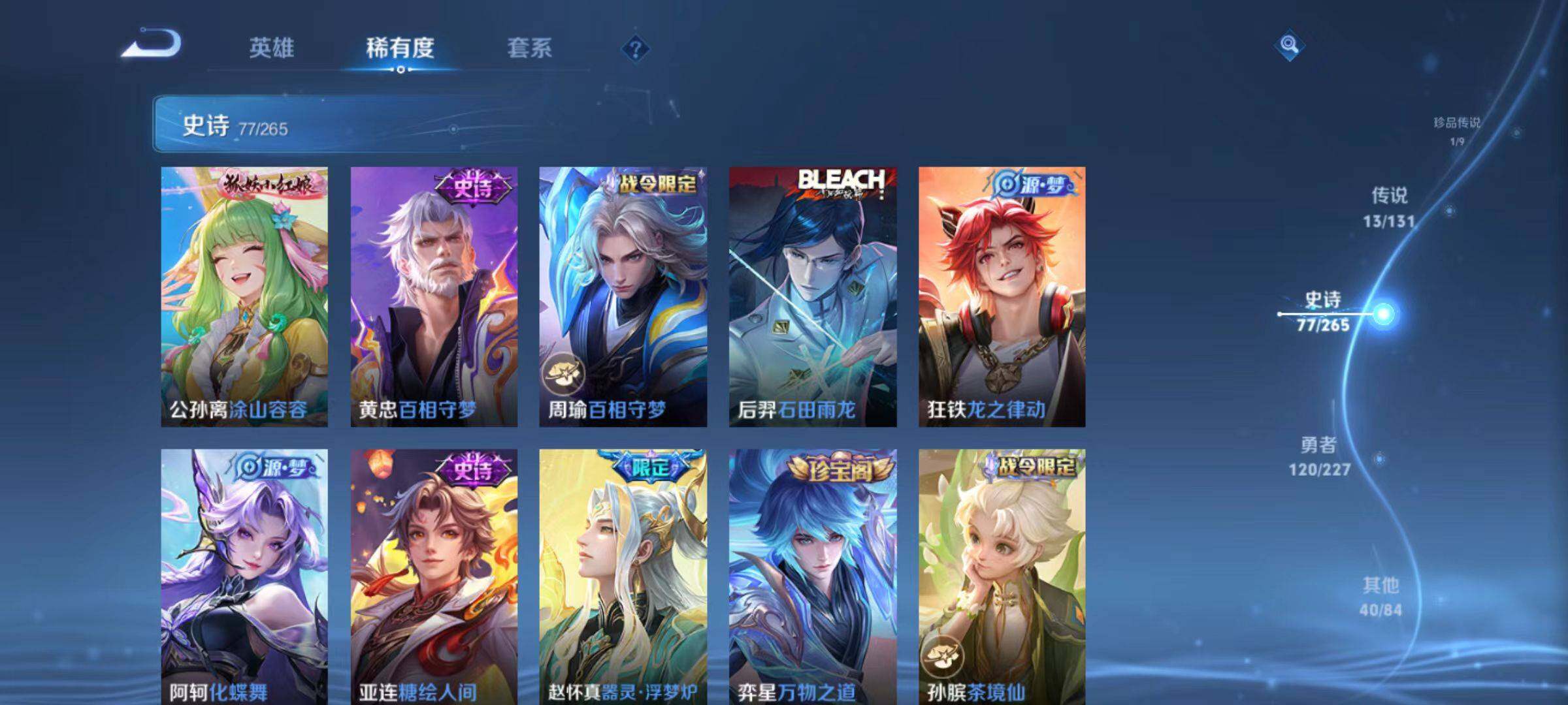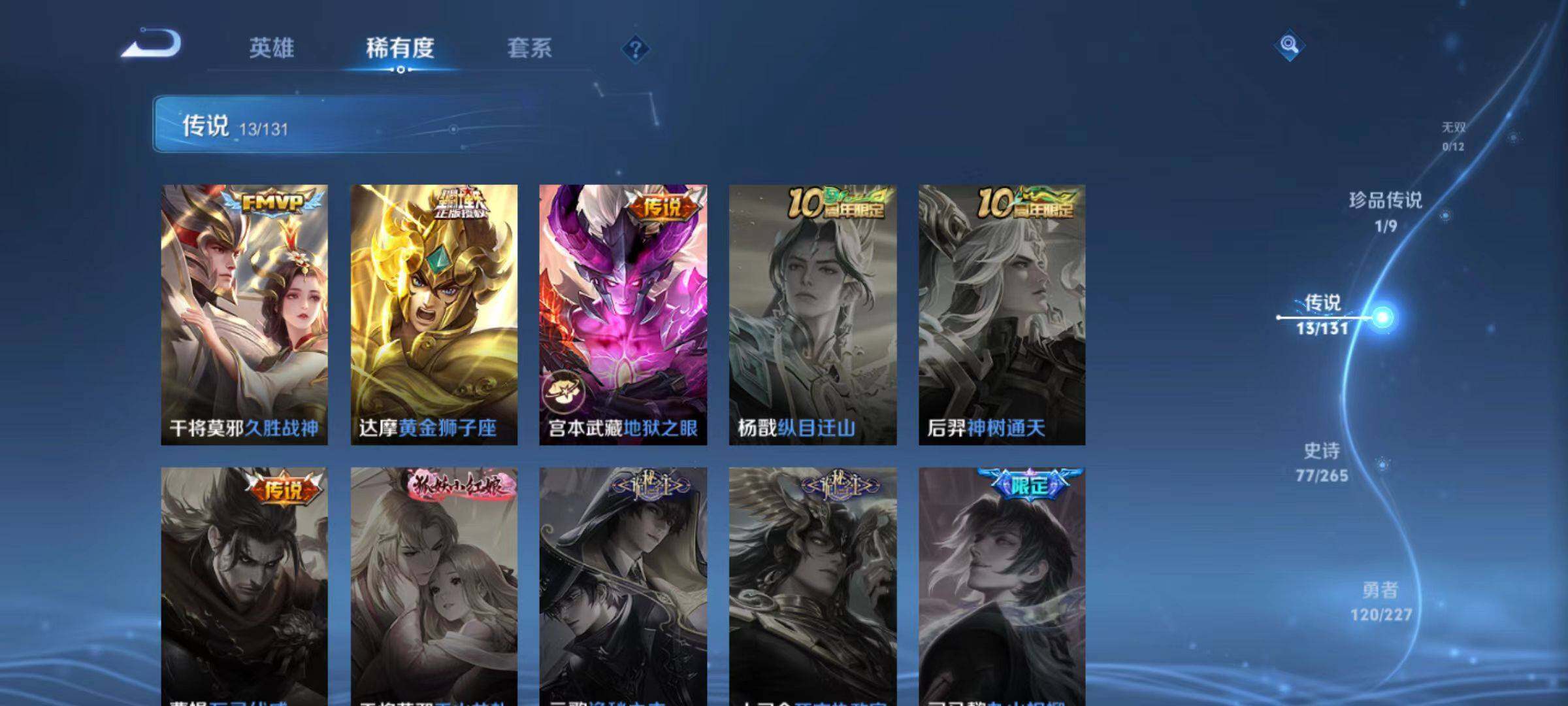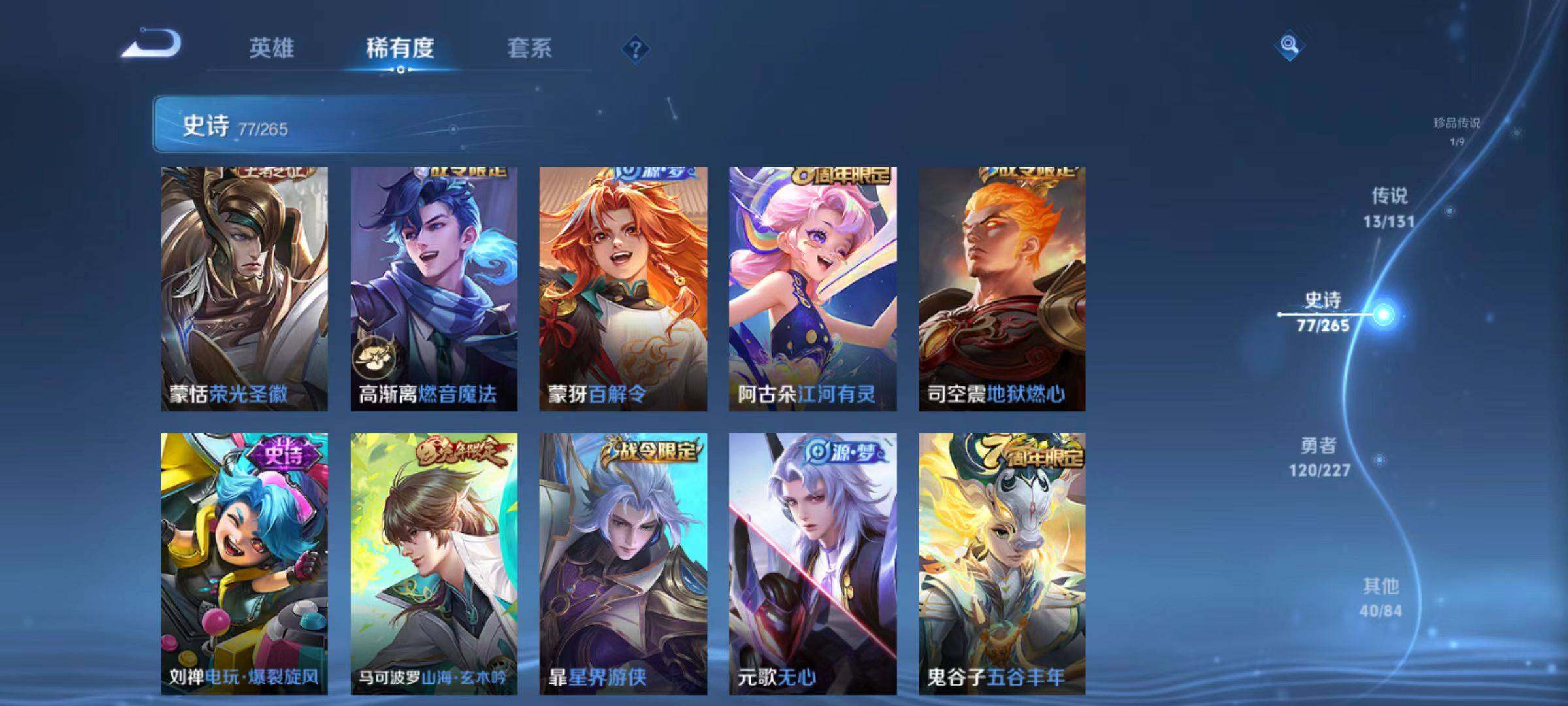 [14514889]安卓q-v7-至尊星耀v段位-127英雄-251皮肤-1典藏英雄-1珍品传说-13传说-77史诗 【英雄全皮】:孙权全皮,司空震全皮,影全皮,海诺全皮 【荣耀典藏】:武则天英雄 【珍品传说】:孙策时之奇旅 【传说皮肤】:司空震愿照山河定,澜愿照九州拓,桑启鸣野蒿,孙策乘龙淬吴钩,赵云乘龙铭钟鼎,马超琥珀纪元,孙悟空齐天大圣,曜山海苍雷引,蔡文姬花朝如约,张良黄金白羊座,干将莫邪久胜战神,达摩黄金狮子座,宫本武藏地狱之眼 【限定皮肤】:蒙犽顽岩魄,蔡文姬夏日便利店,虞姬夏日便利店,姜子牙天穹之誓,杨戬破阵退雄兵,狄仁杰阴阳师,赵云皇家上将,孙尚香蔷薇恋人,芈月幻夜卜梦,吕布猎兽之王,元歌无心,马可波罗暗影游猎,马可波罗山海玄木吟,狄仁杰魔术师,达摩星际陆战队,项羽海滩派对,韩信傲雪梅呛,兰陵王驯魔猎人,兰陵王金庭之子,孙悟空至尊宝,孙悟空孙行者,孙悟空齐天大圣,李元芳云中旅人,鬼谷子五谷丰年,铠青龙志,百里玄策原初追逐者,沈梦溪大漠名商,裴擒虎李小龙,裴擒虎擒涛扼浪,云中君纤云弄巧,上官婉儿梁祝,曜山海苍雷引,鲁班大师探海日志,桑启海盐诗旅,暃星界游侠,艾琳流音漫舞,司空震地狱燃心,阿古朵江河有灵,张良古海寻踪,蒙犽百解令,蒙恬荣光圣徽,高渐离燃音魔法,妲己灵卜魔法,鬼谷子天穹祈灯,马超琥珀纪元,孙策乘龙淬吴钩,赵云乘龙铭钟鼎,沈梦溪龙舞盛年,鲁班七号蔬乡物语,李元芳蔬乡物语,刘邦剑破天穹,程咬金群星魔术团,关羽决胜骁骑,镜青焰无极,项羽苍威无极,海诺心动手记,周瑜熔金海岸 【年限皮肤】:铠青龙志,马可波罗山海玄木吟,曜山海苍雷引,孙策乘龙淬吴钩,赵云乘龙铭钟鼎 【赛季限定】:兰陵王金庭之子,张良古海寻踪,李元芳云中旅人,百里玄策原初追逐者,沈梦溪大漠名商,裴擒虎擒涛扼浪,鲁班大师探海日志,桑启海盐诗旅,鬼谷子天穹祈灯,蒙恬荣光圣徽,刘邦剑破天穹,姜子牙天穹之誓 【战令限定】:蔡文姬夏日便利店,虞姬夏日便利店,芈月幻夜卜梦,吕布猎兽之王,马可波罗暗影游猎,达摩星际陆战队,兰陵王驯魔猎人,艾琳流音漫舞,司空震地狱燃心,暃星界游侠,高渐离燃音魔法,妲己灵卜魔法,鲁班七号蔬乡物语,李元芳蔬乡物语,镜青焰无极,项羽苍威无极 【史诗皮肤】:赵云皇家上将,赵云未来纪元,甄姬冰雪圆舞曲,王昭君偶像歌手,狄仁杰魔术师,宫本武藏鬼剑武藏,孙尚香蔷薇恋人,孙尚香水果甜心,嬴政暗夜贵公子