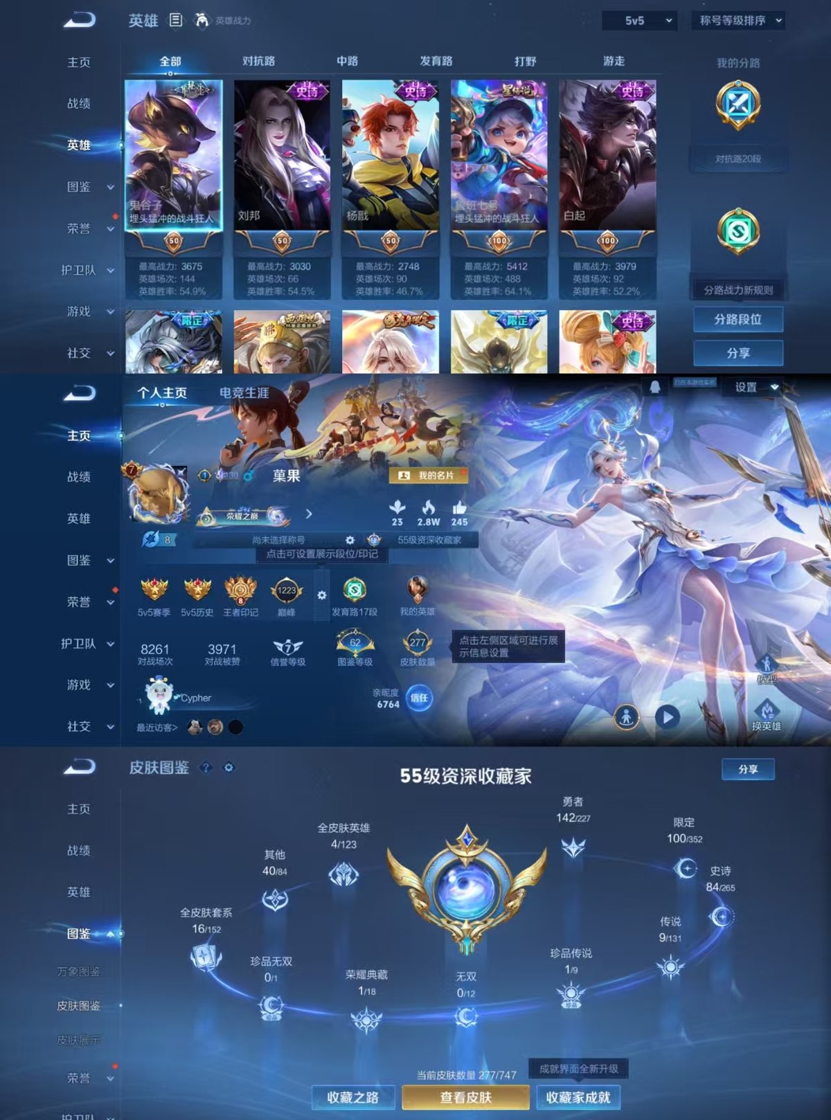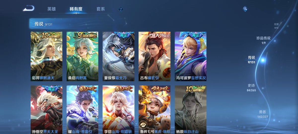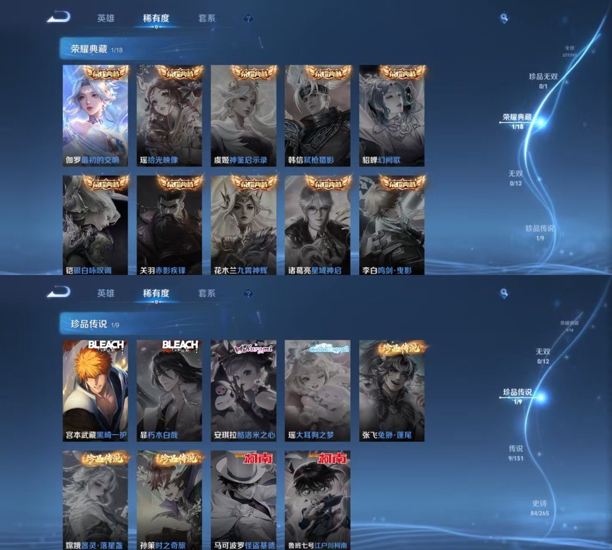 _2302518-实名:可修改贵族等级:v7英雄数:126皮肤数:277荣耀水晶:最初的交响珍品传说:黑崎一护传说皮:山海·炽霜斩山海·苍雷引妄想实况吕布曦玄引神树通天限定皮:李小龙梁祝逐梦之影寅虎·瑞焰高山流水孙行者猪悟能五谷丰年降魔山海·玄木吟山海·碧波行齐天大圣夏侯惇霜北刀鸣野蒿陌上桑逐霄战戟