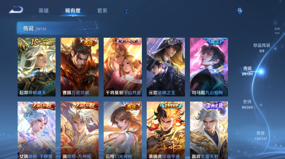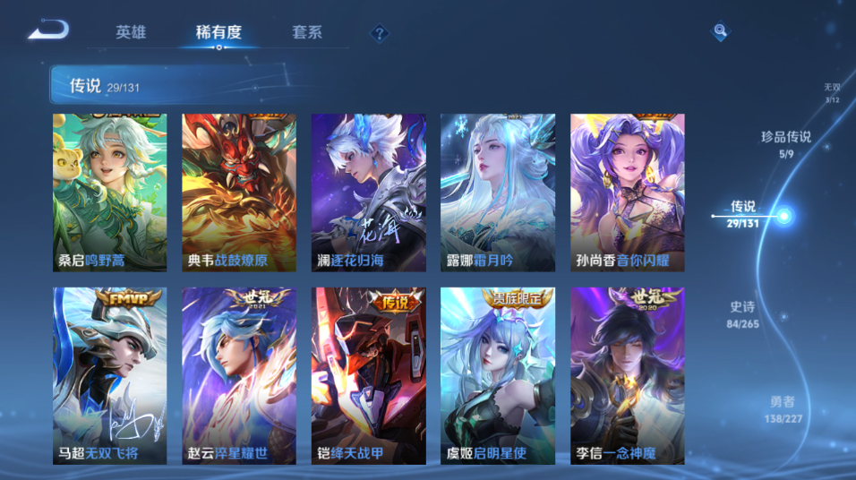 【王者荣耀】【lywz23111】珍品无双0 典藏3 无双3 珍品传说5 传说29 史诗84 英雄127 皮肤327 贵族9级 荣耀典藏:九霄神辉|弑呛猎影|最初的交响__无双皮肤:器灵·螭龙剑|天机白泽|神罪__珍品传说:江户川柯南|怪盗基德|孙策-时之奇旅|朽木白哉|黑崎一护__传说皮肤:鸣野蒿|音你闪耀|无双飞将|绛天战甲|启明星使|地狱之眼|地狱火|黄金狮子座|狄仁杰-超时空战士|黄金射手座|黄金白羊座|刘备-时之恋人|一念神魔|淬星耀世|凤求凰|霜月吟|永曜之星|战鼓燎原|逐花归海|玄雷天君|幻光神呛|祥瑞亨通|愿照·九州拓|愿照·千秋盛|九山相柳|诡秘之主|千山共赴|万灵伏威|神树通天__稀有限定:白晶晶|至尊宝|大圣娶亲|飞衡|傲雪梅呛|李小龙|梁祝|暗影游猎|地狱燃心|海滩派对|胡桃夹子|皇家上将|辉光之辰|混沌棋|剑破天穹|魔术师|千军破阵|穷奇|驱傩正仪|燃音魔法|沙漠行僧|朔风刀|死亡摇滚|饕餮|醍醐杖|天穹祈灯|万华元夜|演武夺筹|疑决卦|阴阳师|优雅恋人|遇见飞天|御旌|御銮|御狮|原初追逐者|云间偶戏|暗夜贵公子|暗隐猎兽者|冰冠公主|冰雪圆舞曲|乘风破浪|大乔-猫狗日记|德古拉伯爵|地狱岩魂|浮梦罗烟|功夫厨神|鬼剑武藏|节奏热浪|金属风暴|莱西奥-末日机甲|吕布-末日机甲|魅力维加斯|魅语|女仆咖啡|偶像歌手|热力回旋|圣诞狂欢|圣诞恋歌|水果甜心|水晶猎龙者|孙策-猫狗日记|天才门将|赵云-未来纪元|星夜王子|雪上飞焰|鹰眼统帅|幽灵船长|遇见神鹿|月团寄思|逐浪之夏|紫霞仙子|百里守约-百相守梦|老夫子-百相守梦|陌上桑|星界特工|噬灭天穹|敬我三分|撼地雄心|破空之剑|东方月初|顽岩魄|天穹之誓|修罗|曙光守护者|心灵战警|千年之狐|孙尚香-时之恋人|无限星赏官|舞动绿茵|特工魅影|心灵骇客|茶境仙|星界战将|谧流熔炉|器灵·浮梦炉|化蝶舞|御霄|狰|烛龙|原初探秘者|重明|孙悟空-神迹守卫|访茗客|暖冬·兔眠|灵卜魔法|华尔街大亨|龙之律动|布丁狗之约|虚灵犬护|逆浪荇歌|孙策-百相守梦|周瑜-百相守梦|戍鼓铭心|赞萌露比|幻珠鲛人|黄忠-百相守梦|守夜人|涂山容容|光弋星穹|傩神司|往忆晖光|荣光之誓|万灵启世|巫礼祀神|鹤鸣心笺__优质皮肤:一千零一夜|创世神祝|年年有余|埃及法老|孤猎|熊喵少女|午夜歌剧院|露花倒影|未来旅行|激情绿茵|海之征途|天启骑士|碧珀绯影|秩序猎龙将|锦衣卫|冰刃幻境|森|维京掠夺者|绯红之刃|踏雪寻梅|启蛰|战争骑士|伊势巫女|生化警戒|威尼斯狂欢|第七人偶|潮流仙人|芝加哥教父|街头旋风|绝影神呛|地府判官|荷鲁斯之眼|幸存者|赤焰之缨|福禄兄弟|隐刃|前尘|特种部队|三太子|剑舞者|范海辛|星航指挥官|龙域领主|爱与和平|占星师|花间舞|魇语军师|花见巫女|棒球奇才|东海龙王|蔷薇王座|灼热之刃|圣殿之光|帝国元帅|战争女神|加勒比小姐|异域舞娘|精灵公主|修竹墨客|怪诞之夜|动物派对|功夫炙烤|潮玩探月行|秘密基地|次元突破|鲨炮海盗猫|野性能量|丁香结|虹云星官|科学大爆炸|守护之力|坚韧之力|幻乐之宴|功夫老勺|命运角斗场|幻想奇妙夜|海滩丽影|阿尔法小队|兔女郎|死亡骑士|黄金武士|少女阿狸|天使之翼|宫本武藏-未来纪元|红桃皇后|忍·炎影|爱心护理|街头霸王|教廷特使|时空谍影|零食大作战|西部游侠|胡桃狂想曲|契约魔法|紫罗兰之誓|铁甲之心|次元傲视|黑桃队长|如懿|拳王|时尚教父|白色死神|白执事|大发明家|哥特玫瑰|魅影绮裳|西施-雪境奇遇|金福满堂|星梦巡礼|灵卦秘语|爆裂喵拳|景韶洛都|浪漫序章|缤纷绘卷|掌控之力|雾都夜雨|逐霄战戟|铁骨偃魂|龙腾万里|霸王丸|敏锐之力|孙悟空-西部大镖客|牛魔-西部大镖客|龙舞盛年|汉昭烈帝|乓乓大师|五福同心|盾山-圆桌骑士|万事如意|曜-归虚梦演|唤灵魔甲|太乙真人-圆桌骑士|沉稳之力|化身博士|花好人间|熔金海岸|万象初新|苍林狼骑|蔚蓝守将|特工战影|炽热元素使|秘证寻踪|春野闲踪|灵野札记|玫蓝誓约|无双福将|锦麟游梦|踏浪烽翎|云械蓝图|戏梦巡演|落日弦歌|克喵|青衿临川|哪吒-罗小黑战记|张良-罗小黑战记|径山谋武|逐霄之志|极光幻客__贵族等级:贵族9级__王者段位:荣耀王者【3典藏3无双5珍品传说29传说皮肤】【1天幕4星传说34按键】超多高战力英雄