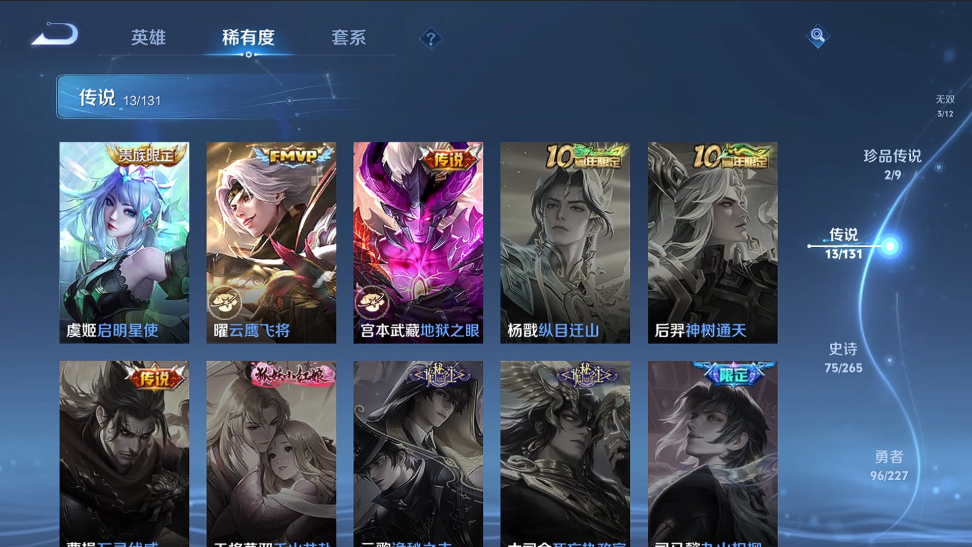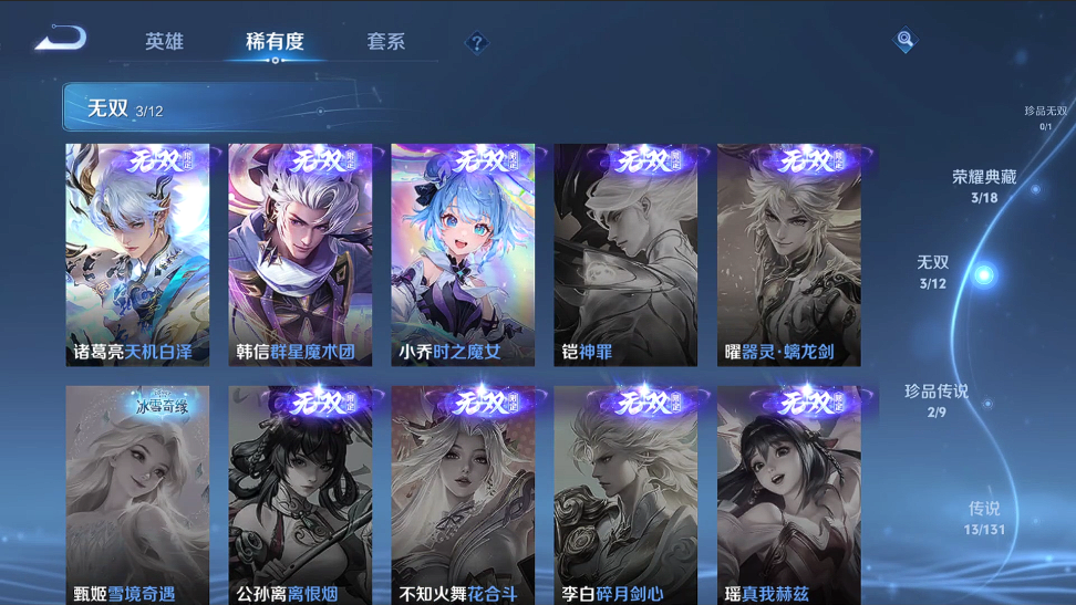 【王者荣耀】【lywz23199】珍品无双0 典藏3 无双3 珍品传说2 传说13 史诗75 英雄127 皮肤224 贵族8级 荣耀典藏:全息碎影|武则天|幻阙歌|鸣剑·曳影__无双皮肤:群星魔术团|时之魔女|天机白泽__珍品传说:大耳狗之梦|酷洛米之心__传说皮肤:深海之息|挚爱花嫁|挚爱之约|异界灵契|启明星使|地狱之眼|云鹰飞将|马超-琥珀纪元|貂蝉-曦玄引|寅虎·瑞焰|虞姬-无限倾心|幻光神呛|愿照·九州拓__稀有限定:至尊宝|乒乒小将|孙行者|猪悟能|傲雪梅呛|山海·玄木吟|拒霜思|大漠名商|地狱燃心|电玩高手|高山流水|古海寻踪|海滩派对|海盐诗旅|航海奇遇记|皇家上将|剑破天穹|江河有灵|金庭之子|魔术师|匿光决锋者|匿光启智者|匿光侦查者|奇幻香踪|千军破阵|擒涛扼浪|驱傩正仪|燃音魔法|荣光圣徽|沙漠行僧|探海日志|天穹祈灯|玩趣恶龙|妄想食味|五谷丰年|午后时光|星界游侠|夜都怪侠|阴阳师|吟游魔法|驭风魔法|原初追逐者|真爱魔法|暗夜猫娘|暗隐猎兽者|缤纷独角兽|冰冠公主|冰雪圆舞曲|苍穹之光|地狱岩魂|电玩·爆裂旋风|电玩小子|伽罗-琥珀纪元|功夫厨神|鬼剑武藏|黄金分割率|节奏热浪|金属风暴|李元芳-蔬乡物语|龙骑士|吕布-末日机甲|魅力维加斯|女仆咖啡|偶像歌手|青蛇|绅士熊喵|圣诞狂欢|圣诞恋歌|水果甜心|水晶猎龙者|天才门将|赵云-未来纪元|摇滚巨星|鹰眼统帅|逐浪之夏|噬灭天穹|战舞者|蔡文姬-夏日便利店|虞姬-夏日便利店|天穹之誓|安琪拉-时之奇旅|心灵战警|千年之狐|舞动绿茵|特工魅影|心灵骇客|星界战将|谧流熔炉|万物之道|云中旅人|玲珑珍味|流音漫舞|暖冬·兔眠|灵卜魔法|圣弓游侠|墨子-神迹守卫|死神来了|刘禅-鸭鸭历险记|沈梦溪-鸭鸭历险记|灵蛊蚀心|雪豹·霜爪|布丁狗之约|虚灵犬护|石田雨龙|逆浪荇歌|黄忠-百相守梦|织梦人|涂山容容|荣光之誓|鹤鸣心笺__优质皮肤:尼罗河女神|埃及法老|木偶奇遇记|激情绿茵|碧珀绯影|超能战警|绯红之刃|启蛰|伊势巫女|画中游|街头旋风|绝影神呛|荷鲁斯之眼|幸存者|赤焰之缨|福禄兄弟|前尘|特种部队|剑舞者|范海辛|龙域领主|爱与和平|魇语军师|极冰防御线|花见巫女|蔷薇王座|圣殿之光|帝国元帅|万圣前夜|绒语心约|功夫炙烤|野性能量|丁香结|守护之力|坚韧之力|命运角斗场|幻想奇妙夜|海滩丽影|阿尔法小队|兔女郎|死亡骑士|黄金武士|天使之翼|玩偶对对碰|红桃皇后|忍·炎影|街头霸王|零食大作战|西部游侠|乐园追猎者|幻泉雾影|潮玩牛仔|拳王|白色死神|程咬金-星际陆战队|白执事|大发明家|哥特玫瑰|西施-雪境奇遇|星梦巡礼|掌控之力|铁骨偃魂|龙腾万里|霸王丸|敏锐之力|乓乓大师|五福同心|盾山-圆桌骑士|猎兽之王|曜-归虚梦演|唤灵魔甲|沉稳之力|程咬金-群星魔术团|完美运算|化身博士|熔金海岸|万象初新|潮玩骑兵|苍林狼骑|蔚蓝守将|劲辣红锅|特工战影|炽热元素使|妄想特派|春野闲踪|灵野札记|玫蓝誓约|小满鸭|锦麟游梦|踏浪烽翎|克喵__贵族等级:贵族8级__王者段位:非凡王者打野皮肤号 3典藏 3无双 2珍品传说 琥珀纪元,启明星使,无限倾心,深海之息,异界灵契等限定皮肤