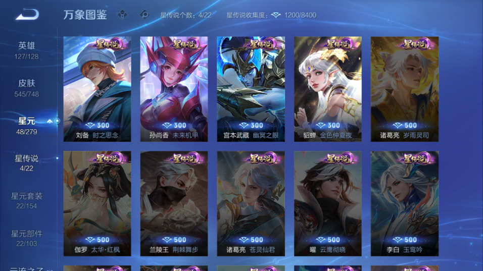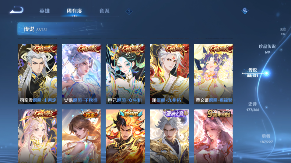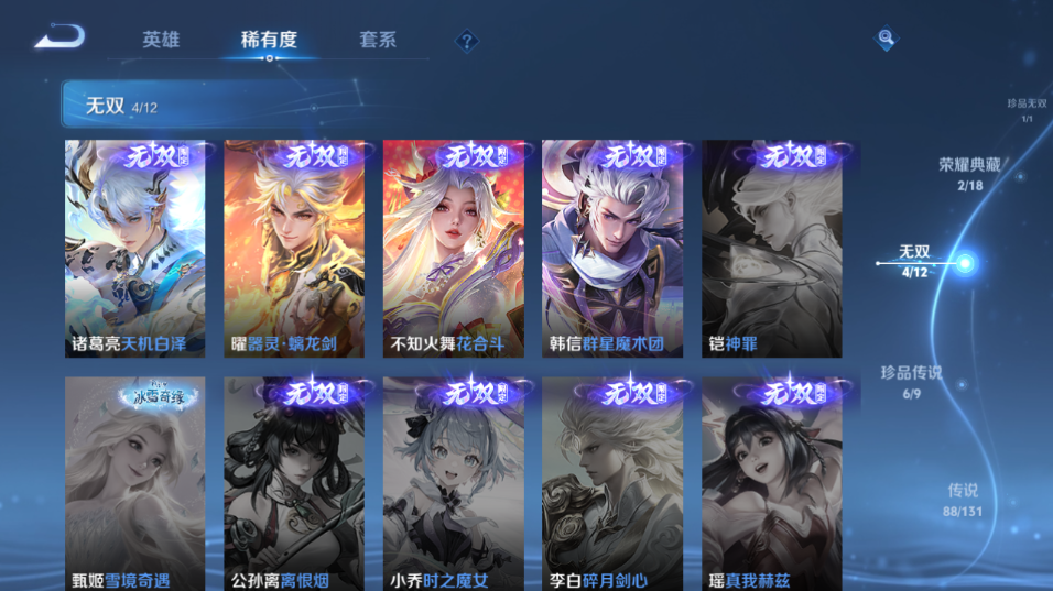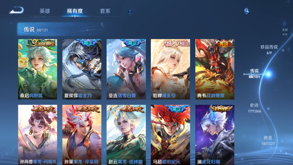 【王者荣耀】【lywz23235】珍品无双1 典藏2 无双4 珍品传说6 传说88 史诗176 英雄127 皮肤545 贵族无双级 珍品无双:馥梦繁花__荣耀典藏:九霄神辉|鸣剑·曳影__无双皮肤:群星魔术团|花合斗|器灵·螭龙剑|天机白泽__珍品传说:江户川柯南|怪盗基德|器灵·落星盏|兔狲·蓬尾|朽木白哉|黑崎一护__传说皮肤:鸣野蒿|音你闪耀|无尽星芒|无双飞将|补天|异界灵契|绛天战甲|炽阳神光|启明星使|胖达荣荣|地狱之眼|地狱火|孙策-末日机甲|仲夏夜之梦|云霓雀翎|久胜战神|黄金狮子座|狄仁杰-超时空战士|刘备-时之恋人|一念神魔|云鹰飞将|冠军飞将|飞鸢探春|李|游龙清影|乞巧织情|淬星耀世|瑶-时之祈愿|绯月行|浮生妄|画中仙|记忆之芯|孙尚香-末日机甲|齐天大圣|白虎志|凤求凰|惊梅引|兰陵王-默契交锋|零号·赤焰|鲁班七号-时之奇旅|落雪白狼|马超-琥珀纪元|怒海麟威|祈雪灵祝|燃星之曲|诗剑行|时雨天司|太华|天魔缭乱|妄想奇谈|妄想实况|武圣|貂蝉-曦玄引|小乔-音你心动|寅虎·瑞焰|虞姬-无限倾心|遇见神鼓|战鼓燎原|逐花归海|乘龙·淬吴钩|乘龙·铭钟鼎|乘龙·问璇玑|觅芳踪|山海·苍雷引|山海·炽霜斩|神器·狴犴令|寅虎·赤拳|映山客|玄雷天君|幻光神呛|祥瑞亨通|愿照·岁时盈|愿照·山河定|愿照·九州拓|愿照·众生和|愿照·福禄聚|星之鸣奏|愿照·千秋盛|续相思|云诺千山|九山相柳|死亡执政官|诡秘之主|千山共赴|万灵伏威|神树通天|纵目迁山__稀有限定:寅虎·御盾|寅虎·展翼|寅虎·心曲|奔雷神使|御风骁将|至尊宝|梅西|青龙志|玄武志|虞姬-霸王别姬|大圣娶亲|一生所爱|纯白花嫁|岱宗|飞衡|蔷薇恋人|虎魄|神威|烈魂|龙胆|白鹤梁神女|乒乒小将|孙行者|女儿国国王|傲雪梅呛|李小龙|梁祝|山海·玄木吟|神器·万象笔|狮舞东方|拒霜思|暗影游猎|冰锋战神|冰霜恋舞曲|冰霜神祇|大漠名商|电玩高手|繁星吟游|高山流水|古海寻踪|海滩派对|海盐诗旅|航海奇遇记|后羿-如梦令|胡桃异想国|华丽摇滚|幻夜卜梦|皇家上将|辉光之辰|混沌棋|火炮绅士|剑破天穹|金庭之子|狂想玩偶喵|黎明之约|迷踪丽影|魔术师|花木兰-默契交锋|匿光破解者|匿光追影者|千军破阵|擒涛扼浪|穷奇|驱傩正仪|燃音魔法|荣光圣徽|沙漠行僧|朔风刀|探海日志|饕餮|醍醐杖|天狼绘梦者|天狼溯光者|天狼运算者|天穹祈灯|玩趣恶龙|万华元夜|无心|五谷丰年|午后时光|纤云弄巧|项羽-霸王别姬|星界游侠|星空之诺|驯魔猎人|演武夺筹|疑决卦|阴阳师|银河之约|驭风魔法|御旌|御銮|御狮|原初追逐者|云间偶戏|逐梦之星|逐梦之影|暗夜贵公子|暗夜猫娘|暗隐猎兽者|暗渊魔法|白龙吟|白蛇|缤纷独角兽|冰冠公主|冰雪圆舞曲|苍穹之光|乘风破浪|乘龙·聚宝船|大乔-猫狗日记|德古拉伯爵|地狱岩魂|电玩·爆裂旋风|电玩小子|浮梦罗烟|功夫厨神|鬼剑武藏|唤灵魅影|黄金分割率|箭羽风息|节奏热浪|金属风暴|乐园奇幻夜|李元芳-蔬乡物语|龙鼓争鸣|龙骑士|吕布-末日机甲|魅力维加斯|魅语|梦奇-顽趣|女仆咖啡|偶像歌手|奇遇舞章|青蛇|热力回旋|赏金猎手|绅士熊喵|圣诞狂欢|圣诞恋歌|诗语江南|水果甜心|水晶猎龙者|孙策-猫狗日记|滕王阁序|天才门将|天秀·启明|天秀·音浪|晚萤|赵云-未来纪元|嘻哈天王|星夜王子|雪上飞焰|摇滚巨星|鹰眼统帅|永昼|幽灵船长|云中君-时之祈愿|至美·乘鲤谣|钟无艳-超时空战士|周瑜-真爱至上|逐浪之夏|紫霞仙子|百里守约-百相守梦|老夫子-百相守梦|谪仙醉月|星界特工|噬灭天穹|敬我三分|炽弈燎原|破空之剑|战舞者|东方月初|霜北刀|蔡文姬-夏日便利店|虞姬-夏日便利店|天穹之誓|修罗|曙光守护者|心灵战警|千年之狐|孙尚香-时之恋人|无限星赏官|舞动绿茵|特工魅影|心灵骇客|飞车小橘子|茶境仙|星界战将|谧流熔炉|苍鳞隐世|万物之道|器灵·浮梦炉|糖绘人间|狼魂孤将|绮世丹青|化蝶舞|御霄|狰|烛龙|原初探秘者|重明|云中旅人|玲珑珍味|单词大作战|朔望之晖|钟馗-神迹守卫|孙悟空-神迹守卫|达摩-星际陆战队|流音漫舞|访茗客|暖冬·兔眠|灵卜魔法|夺宝奇兵|圣弓游侠|墨子-神迹守卫|落雪兰心|死神来了|刘禅-鸭鸭历险记|沈梦溪-鸭鸭历险记|灵蛊蚀心|藏狐·褐绒|雪豹·霜爪|龙之律动|布丁狗之约|石田雨龙|戍鼓铭心|赞萌露比|幻珠鲛人|黄忠-百相守梦|织梦人|守夜人|涂山容容|光弋星穹|往忆晖光|荣光之誓|万灵启世|巫礼祀神|鹤鸣心笺__优质皮肤:尼罗河女神|一千零一夜|创世神祝|年年有余|埃及法老|孤猎|木偶奇遇记|熊喵少女|午夜歌剧院|露花倒影|未来旅行|激情绿茵|海之征途|天启骑士|碧珀绯影|秩序猎龙将|锦衣卫|冰刃幻境|森|超能战警|英喵野望|维京掠夺者|海军大将|绯红之刃|踏雪寻梅|启蛰|战争骑士|伊势巫女|画中游|生化警戒|威尼斯狂欢|第七人偶|潮流仙人|芝加哥教父|街头旋风|绝影神呛|地府判官|荷鲁斯之眼|幸存者|赤焰之缨|福禄兄弟|隐刃|前尘|特种部队|三太子|精灵王|剑舞者|范海辛|星航指挥官|龙域领主|爱与和平|占星师|花间舞|魇语军师|极冰防御线|花见巫女|棒球奇才|东海龙王|蔷薇王座|灼热之刃|精准探案法|圣殿之光|帝国元帅|神奇女侠|战争女神|霓裳曲|加勒比小姐|阿摩司公爵|异域舞娘|精灵公主|修竹墨客|万圣前夜|怪诞之夜|动物派对|绒语心约|长夏之忆|暗都幽影|功夫炙烤|潮玩探月行|虎啸剑宗|瓷语鉴心|秘密基地|次元突破|鲨炮海盗猫|野性能量|丁香结|奇妙博物学|虹云