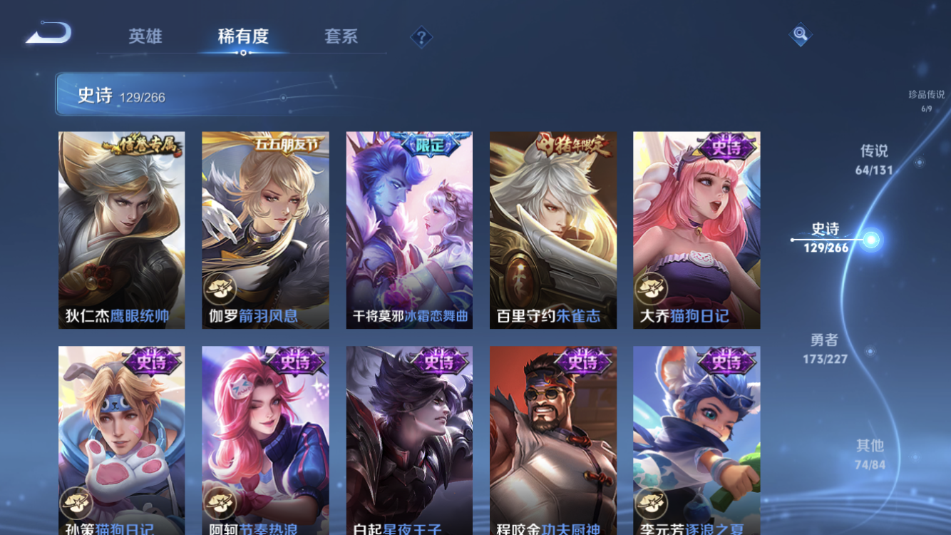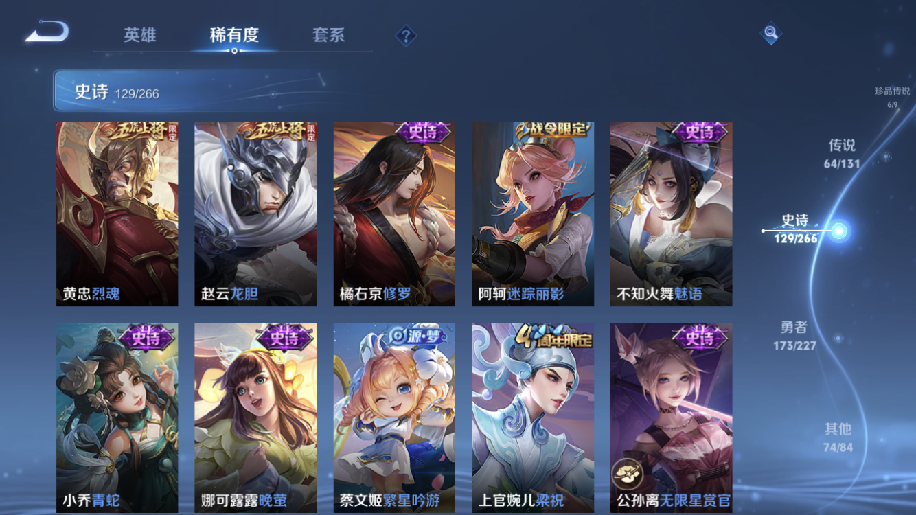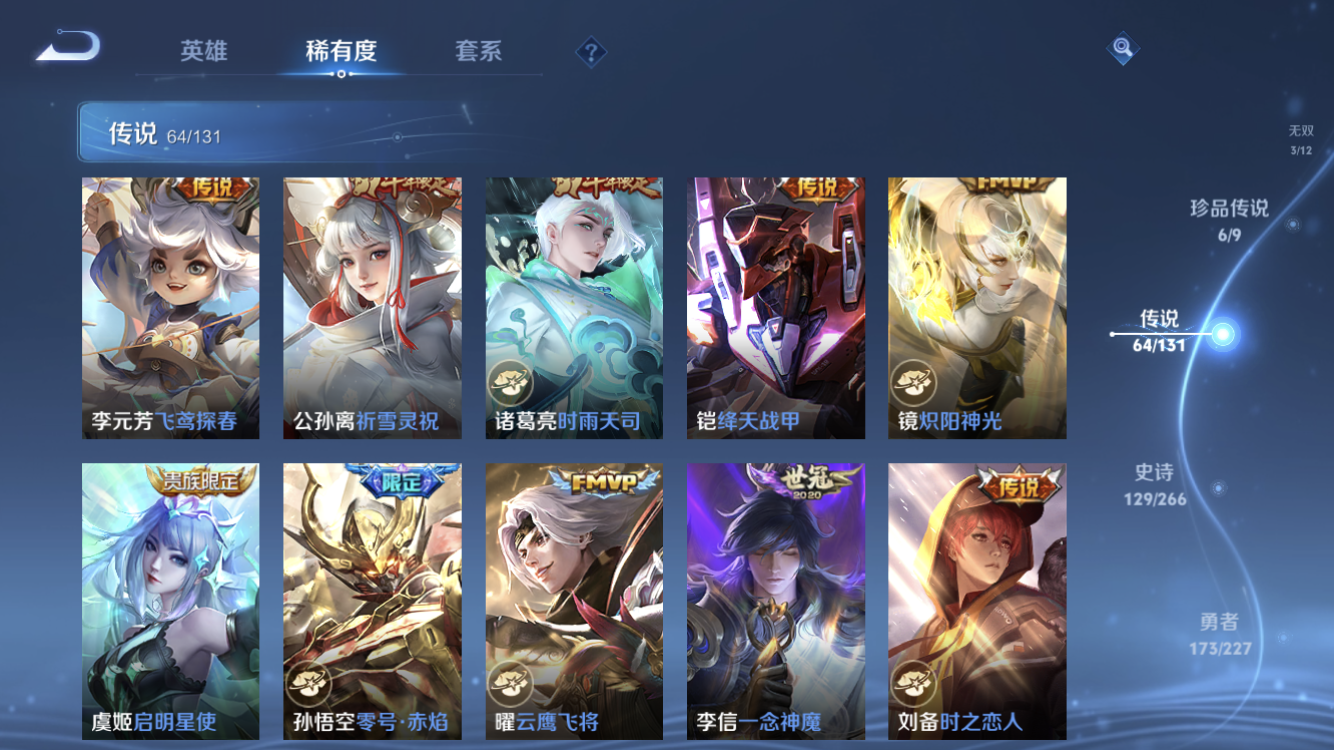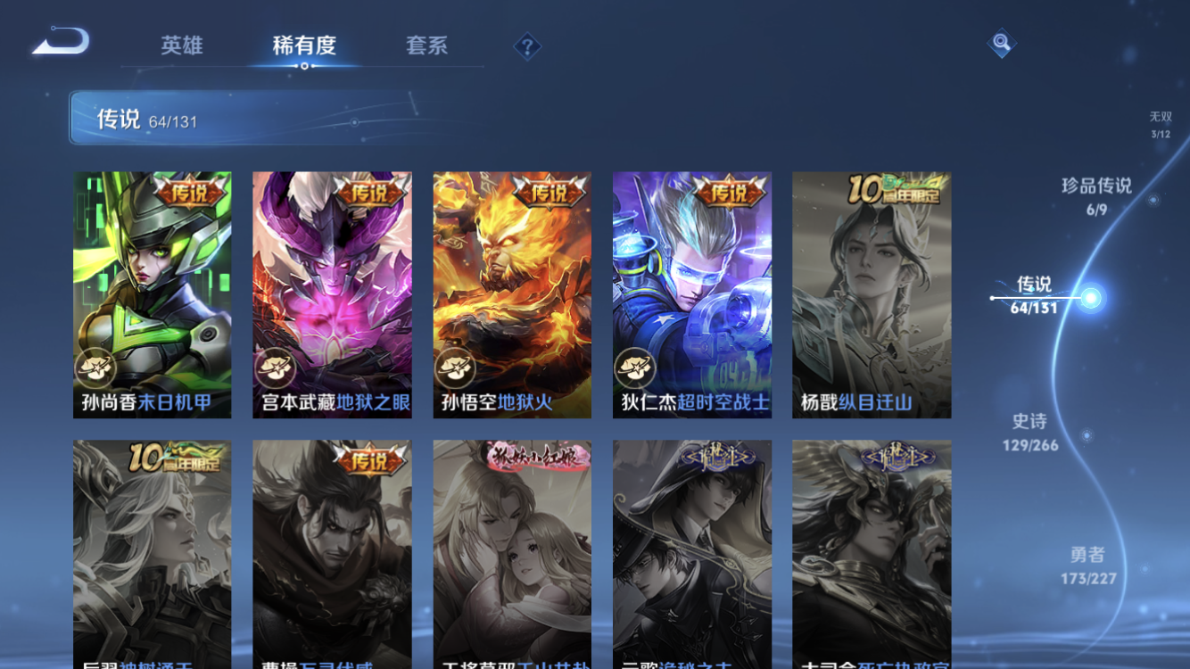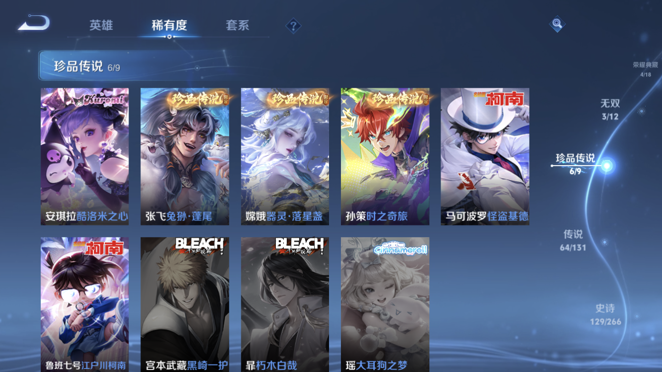 v10【离恨烟 金标鲁班 4典藏 3无双 6珍品传说 64传说】苹果qq/v10/非凡王者/453皮肤/125英雄/4典藏/3无双/6珍品传说/64传说/128史诗/9稀有英雄【4 星传说皮肤】零号雷霆 孙悟空未来机甲 孙尚香星际治安官 狄仁杰幻舞叠翠 貂蝉【6 珍品传说】酷洛米之心 安琪拉怪盗基德 马可波罗时之奇旅 孙策器灵·落星盏 嫦娥江户川柯南 鲁班七号兔狲·蓬尾 张飞
