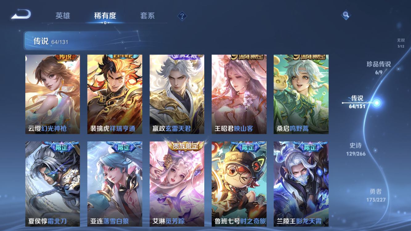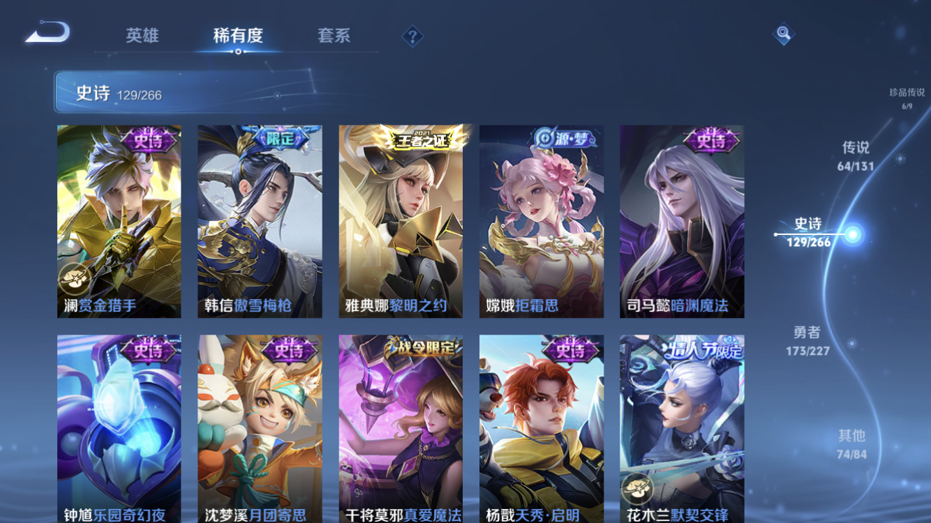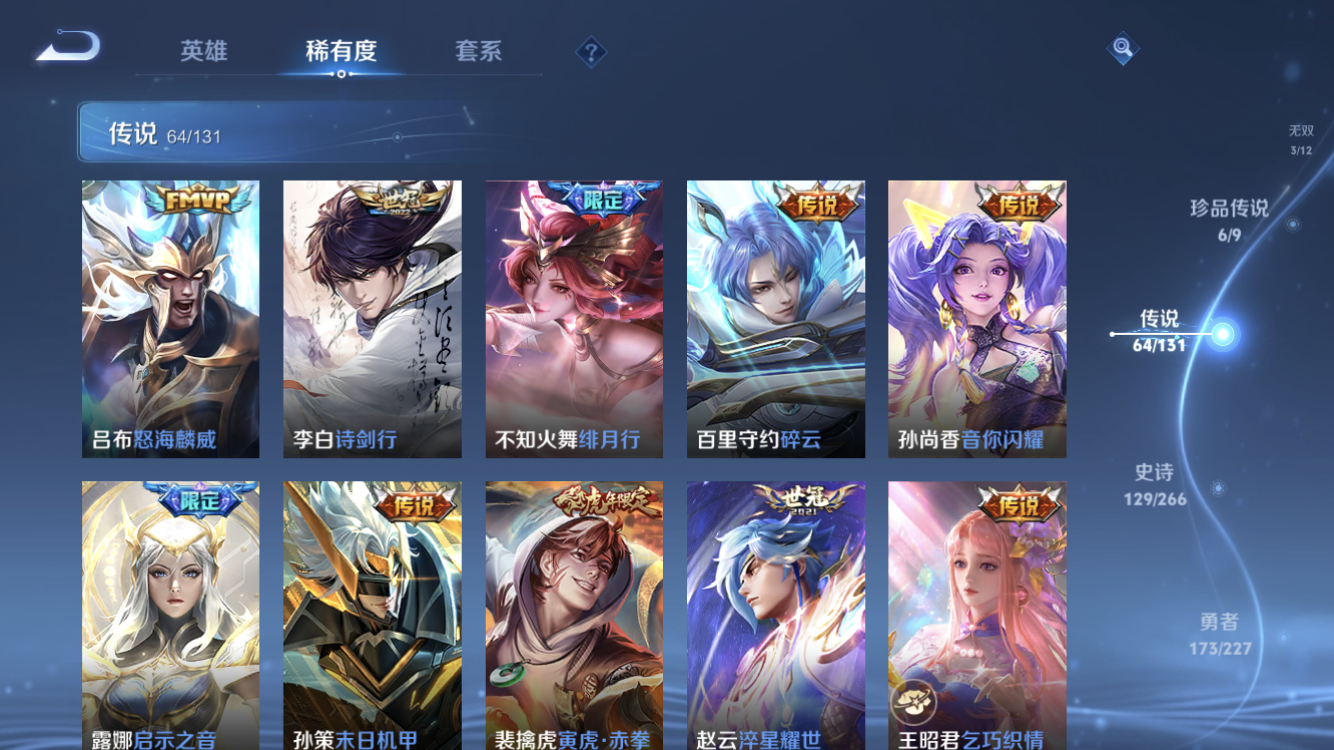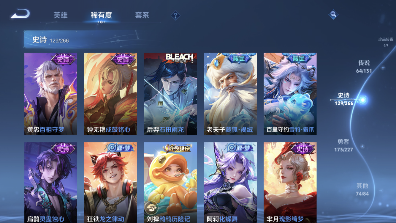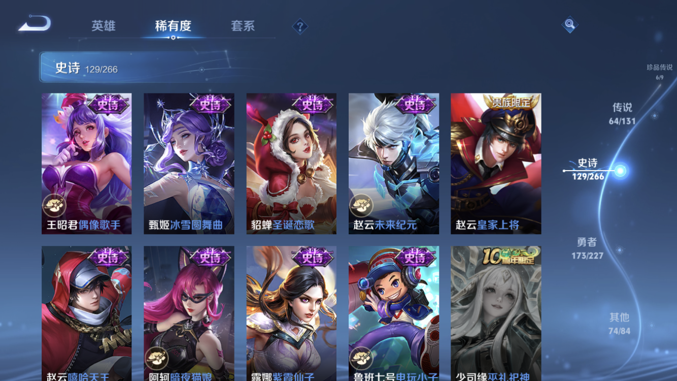 v10【离恨烟 金标鲁班 4典藏 3无双 6珍品传说 64传说】苹果qq/v10/非凡王者/453皮肤/125英雄/4典藏/3无双/6珍品传说/64传说/128史诗/9稀有英雄【4 星传说皮肤】零号雷霆 孙悟空未来机甲 孙尚香星际治安官 狄仁杰幻舞叠翠 貂蝉【6 珍品传说】酷洛米之心 安琪拉怪盗基德 马可波罗时之奇旅 孙策器灵·落星盏 嫦娥江户川柯南 鲁班七号兔狲·蓬尾 张飞