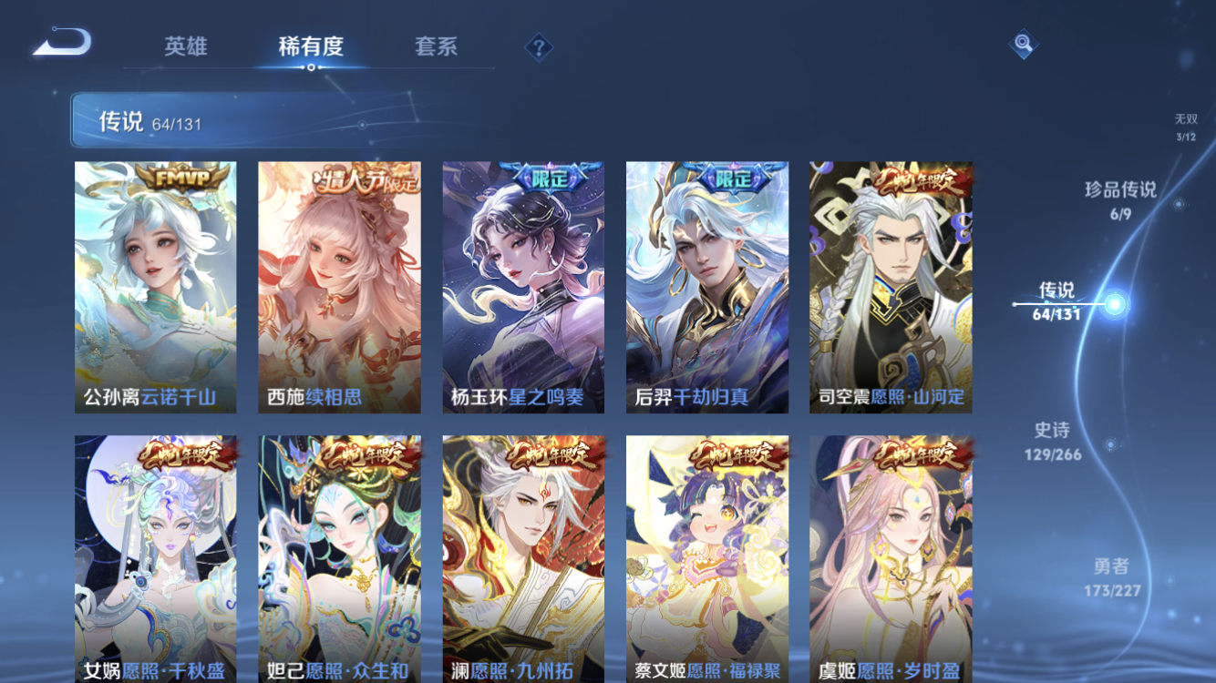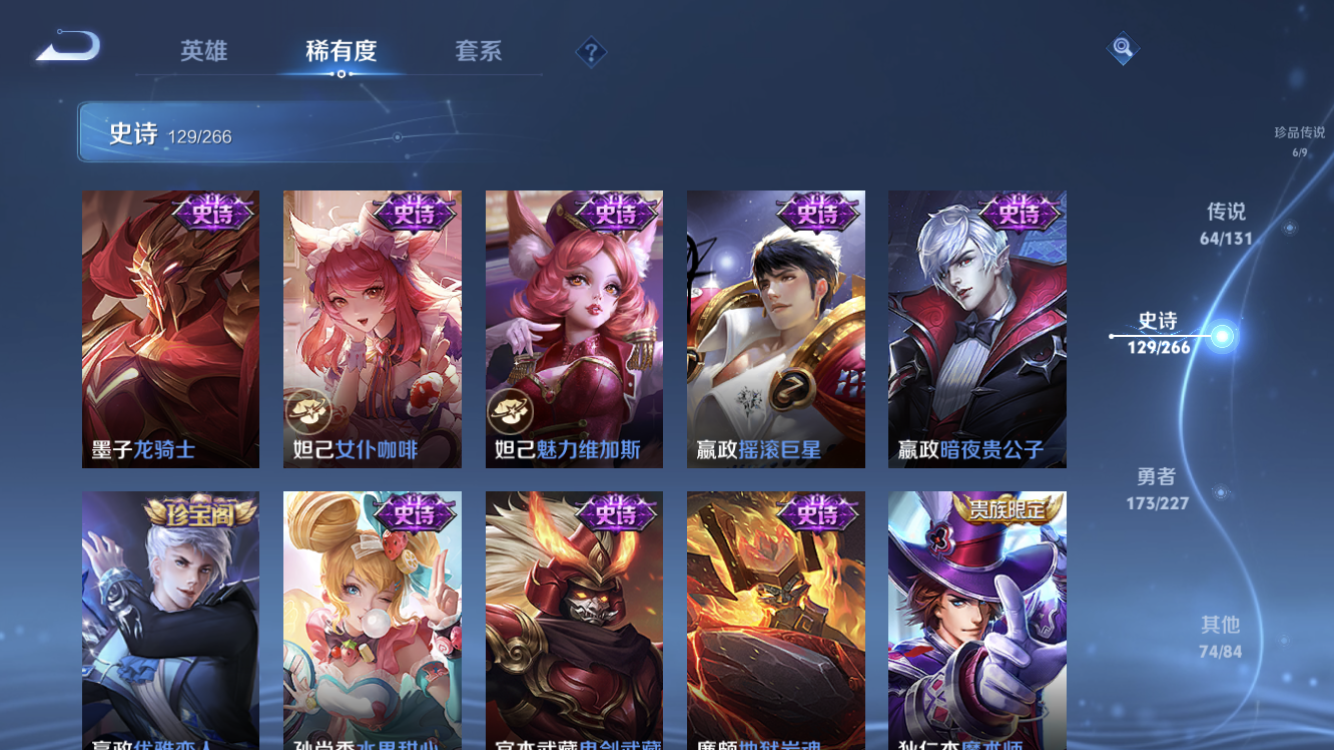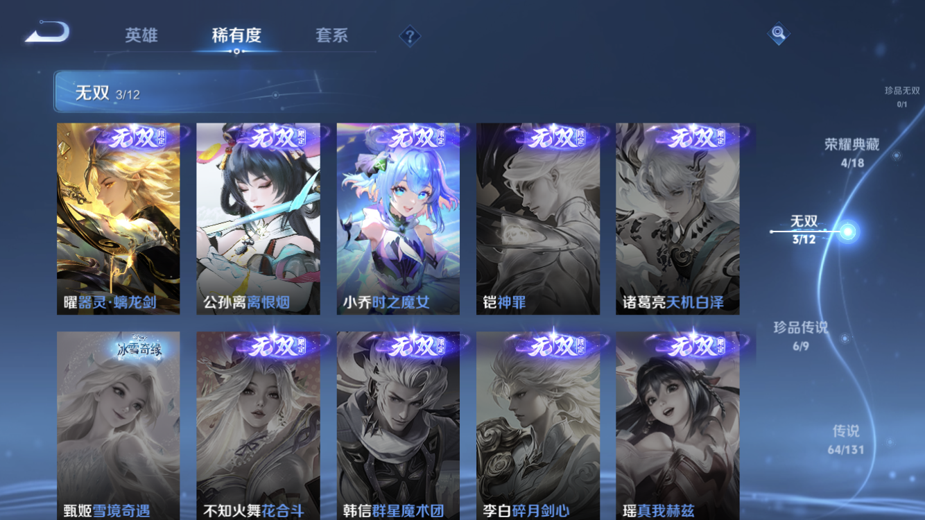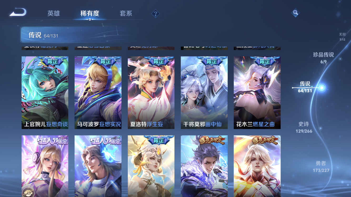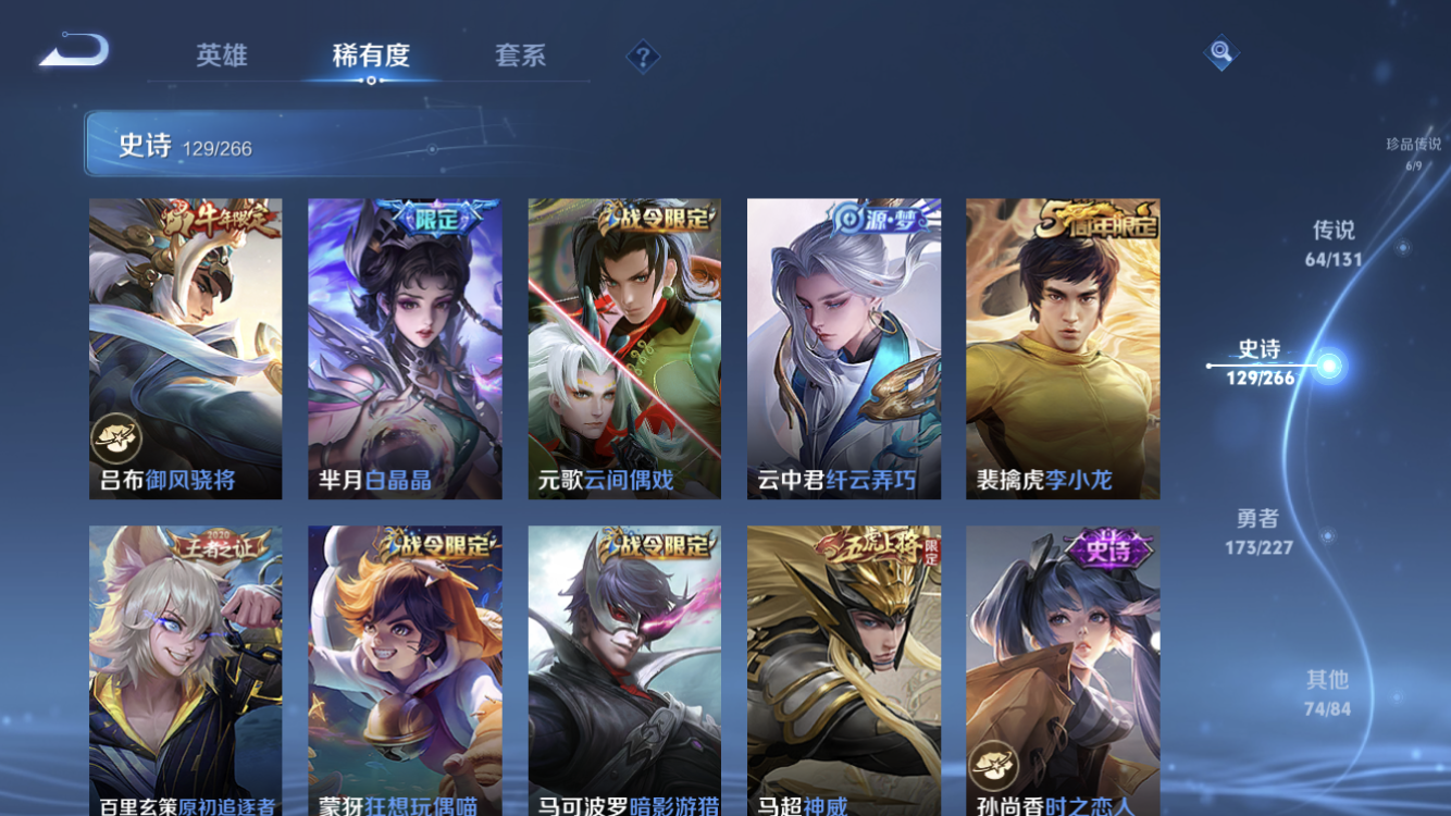 v10【离恨烟 金标鲁班 4典藏 3无双 6珍品传说 64传说】苹果qq/v10/非凡王者/453皮肤/125英雄/4典藏/3无双/6珍品传说/64传说/128史诗/9稀有英雄【4 星传说皮肤】零号雷霆 孙悟空未来机甲 孙尚香星际治安官 狄仁杰幻舞叠翠 貂蝉【6 珍品传说】酷洛米之心 安琪拉怪盗基德 马可波罗时之奇旅 孙策器灵·落星盏 嫦娥江户川柯南 鲁班七号兔狲·蓬尾 张飞