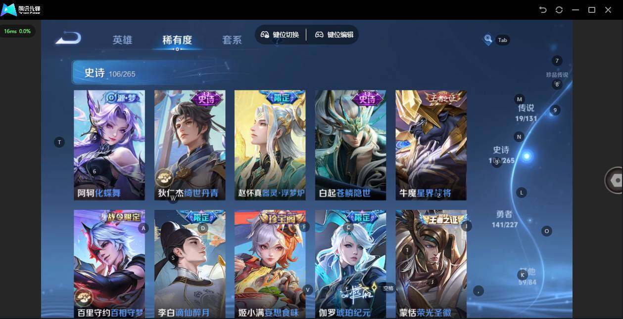 125英雄-326皮肤-【金标元歌 金标夏洛特 金标钟馗 】实名: 可修改 贵族等级: v8 英雄数: 125 皮肤数: 326 荣耀水晶: 鸣剑·曳影 传说皮: 黄金狮子座云鹰飞将久胜战神炽阳神光一念神魔飞鸢探春时之恋人-刘备浮生妄鹤羽星尊鲁班七号-时之奇旅澜逐花归海貂蝉曦玄引吕布曦玄引幻光神呛