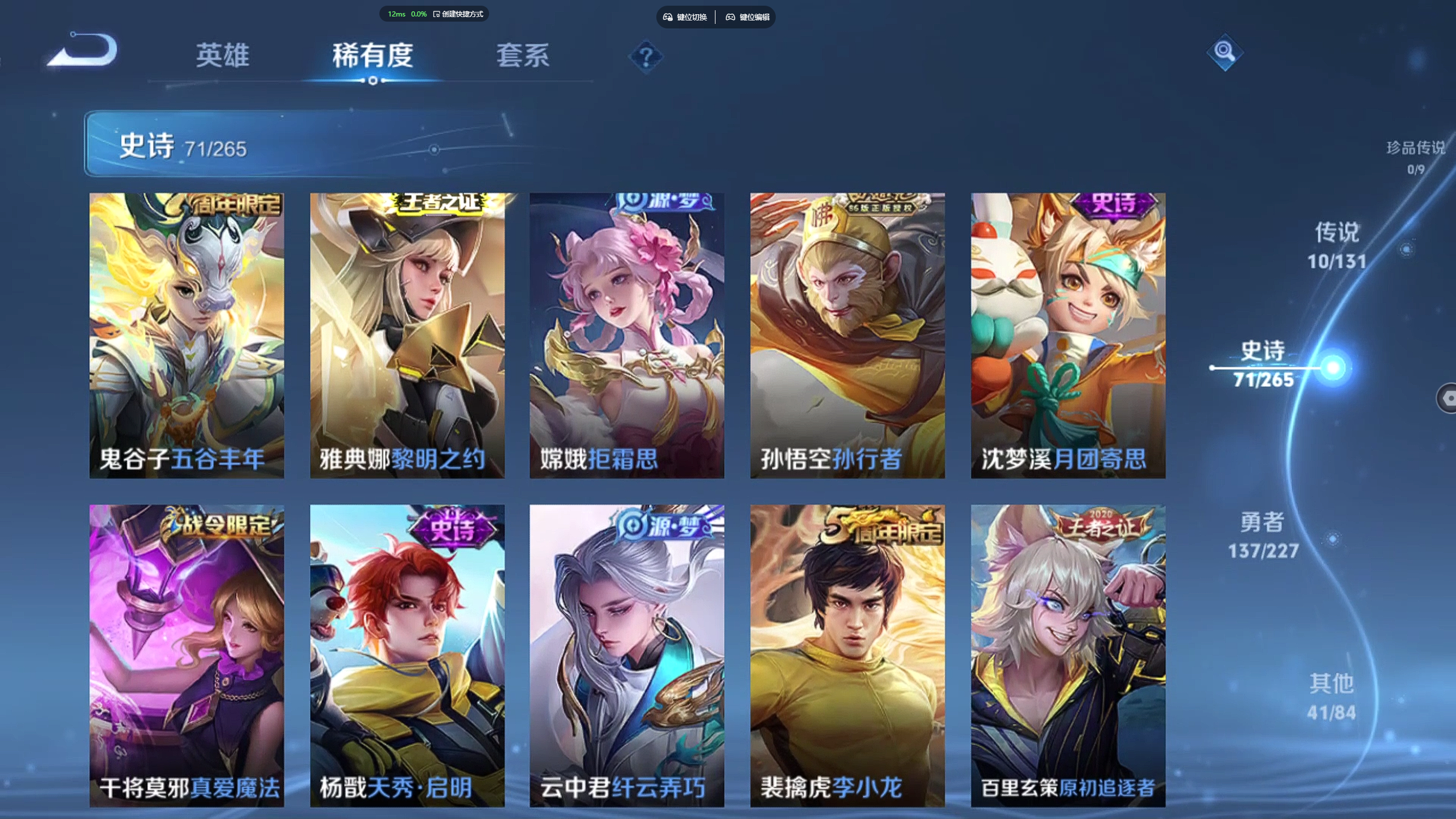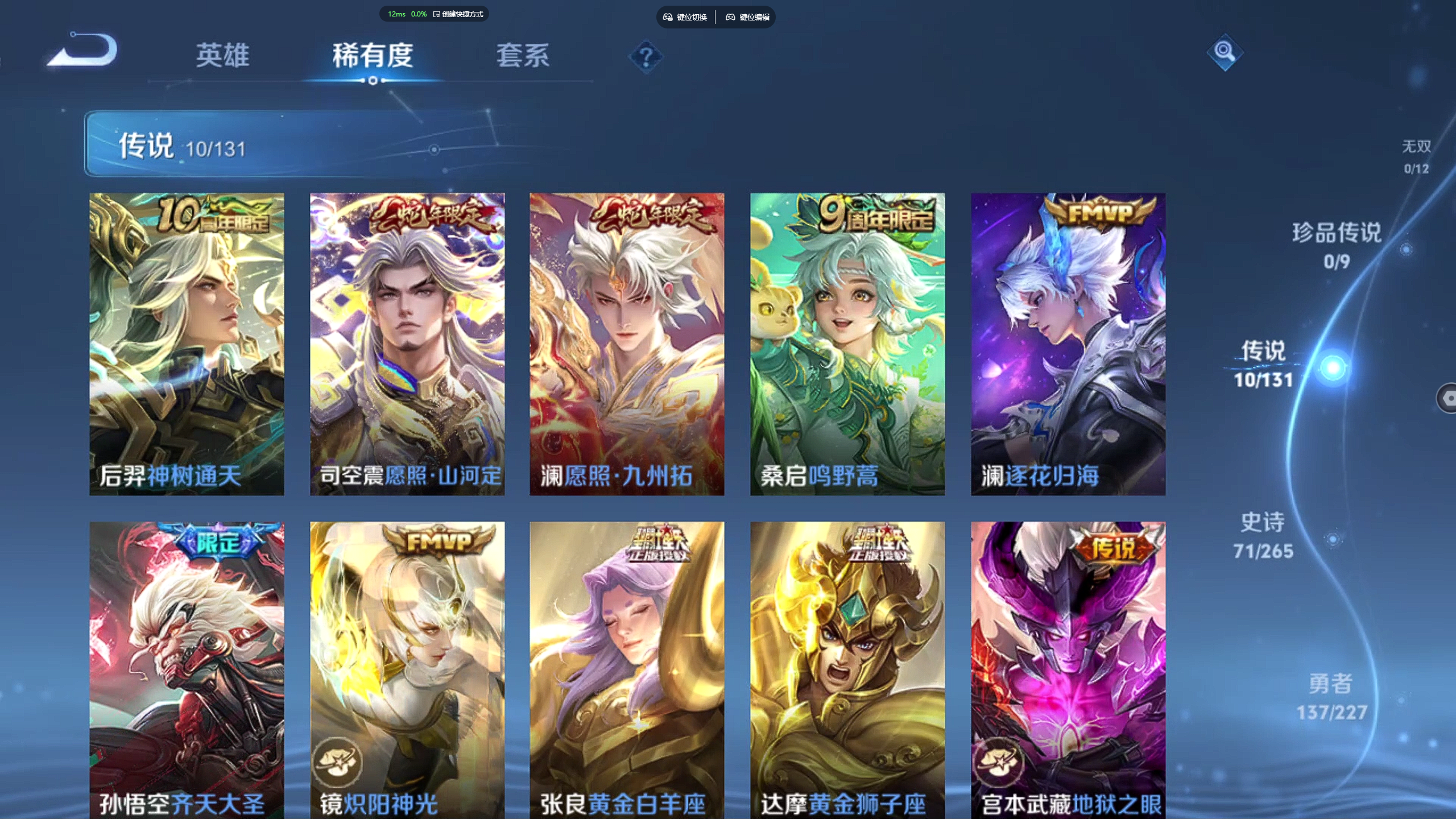 【金标橘右京 金标高渐离 金标元流之子 万战高渐离 10传说 赤影疾锋】苹果qq/v7/最强王者/260皮肤/124英雄/1典藏/10传说/71史诗/8稀有英雄【2 星传说皮肤】幽冥之眼 宫本武藏金色仲夏夜 貂蝉【1 典藏皮肤】赤影疾锋 关羽【10 传说皮肤】逐花归海 澜齐天大圣 孙悟空地狱之眼 宫本武藏炽阳神光 镜黄金狮子座 达摩黄金白羊座 张良愿照·九州拓 澜神树通天