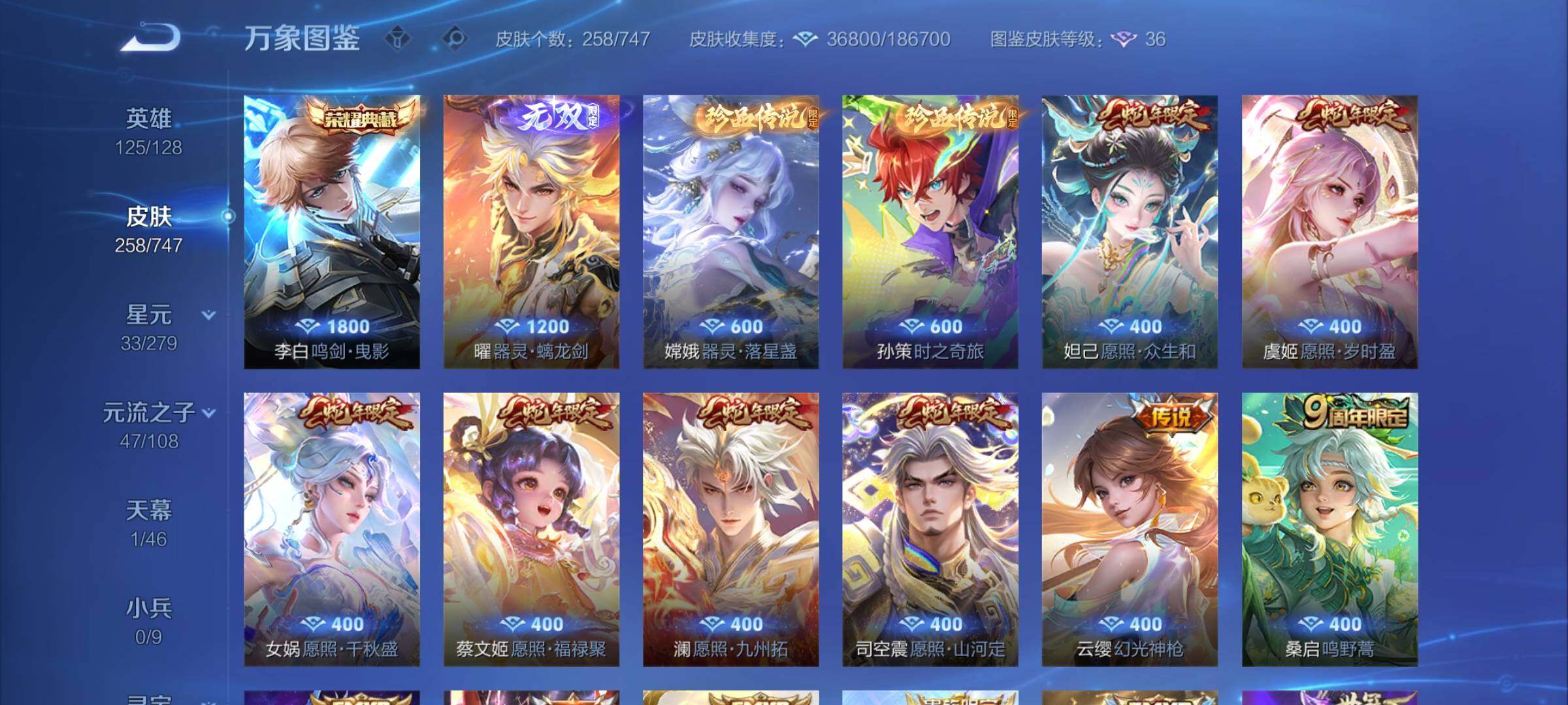 2302719-【千场次澜,小国澜,打野36段,蛇年套】 1星传说 8按键 17王者印记 五级铭文100 可二次5233 安卓wx-v8-258皮肤-1典藏皮肤-1无双-2珍品传说-15传说-61史诗【英雄全皮】:蒙恬全皮,影全皮【荣耀典藏】:李白鸣剑曳影【无双皮肤】:曜器灵螭龙剑【珍品传说】:孙策时之奇旅,嫦娥器灵落星盏【星元皮肤】:宫本武藏幽冥之眼【传说皮肤】:司空震愿照山河定,女娲