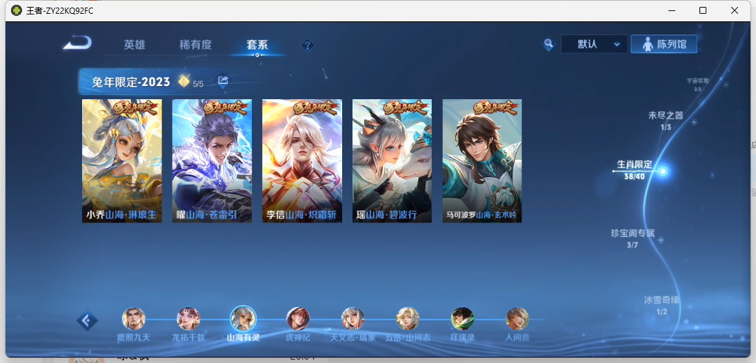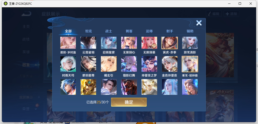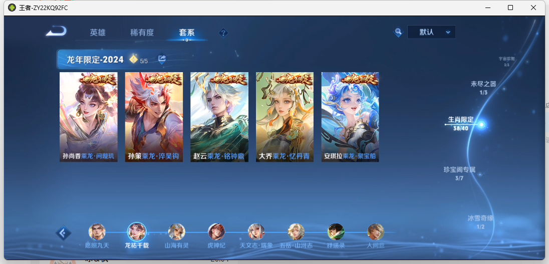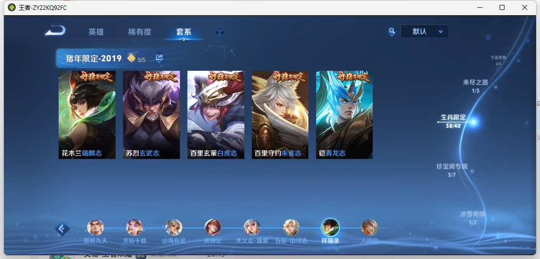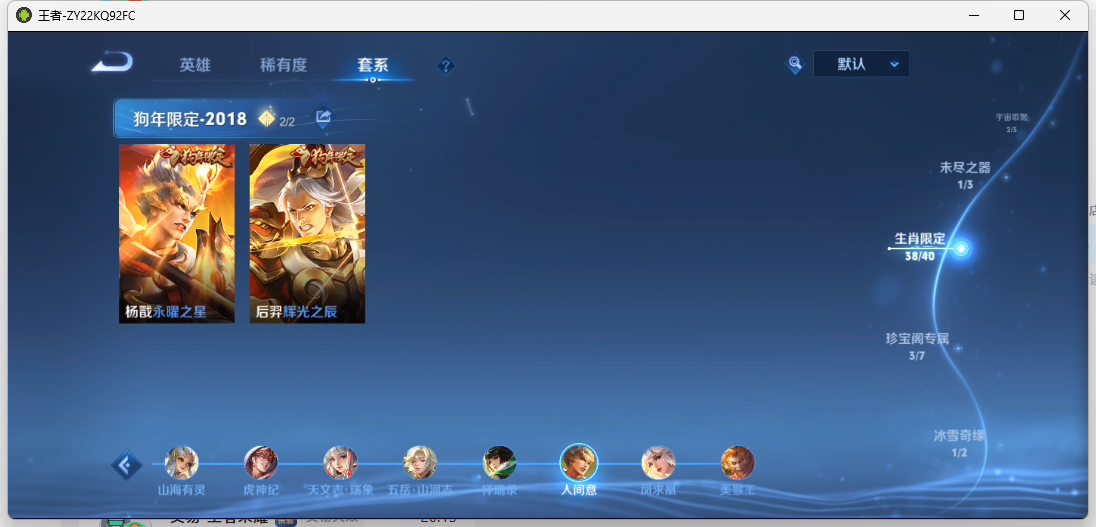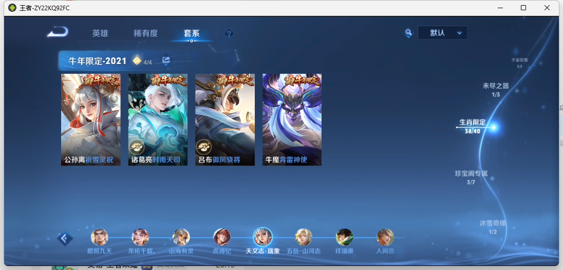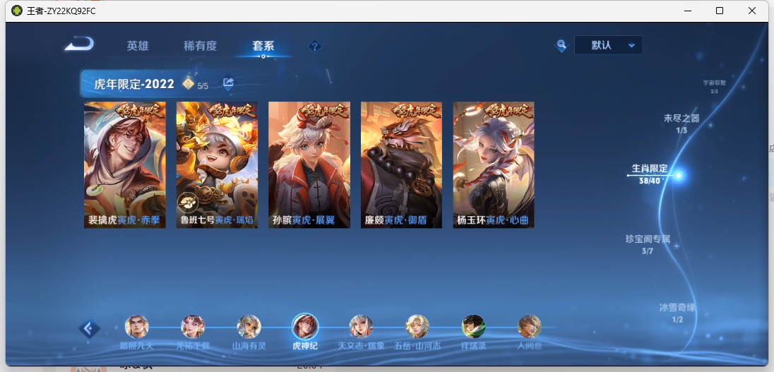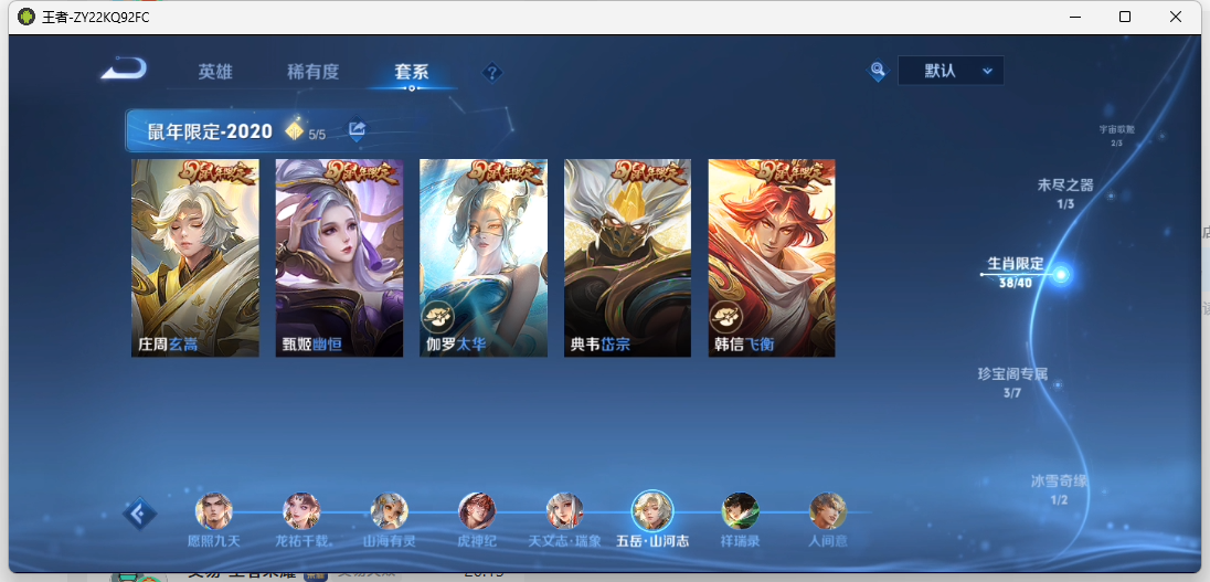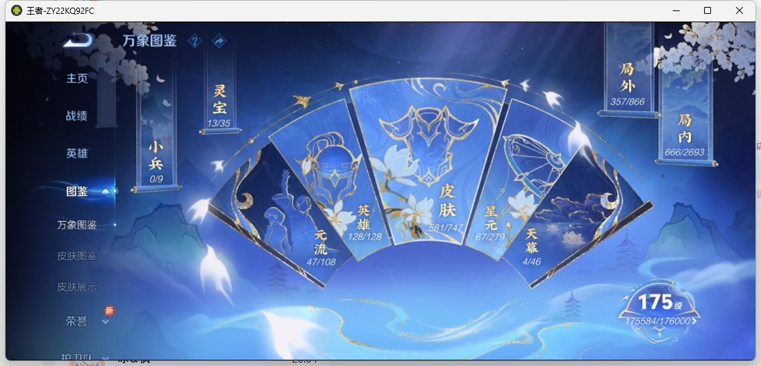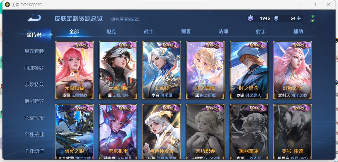 _2302730-实名:可修改贵族等级:v10英雄数:128皮肤数:581荣耀水晶:武则天无限飓风号鸣剑·曳影全息碎影九霄神辉银白咏叹调幻阙歌弑呛猎影神鉴启示录拾光映像最初的交响无双皮:真我赫兹瑶青丘·九尾碎月剑心小乔时之魔女韩信群星魔术团花合斗离恨烟器灵·螭龙剑星传说:时之愿境幻海之心未来机甲幽冥之眼金色仲夏夜时之思念无限倾慕玉鸾吟云鹰彻晓传说皮:黄金狮子座黄金射手座冠军飞将云鹰飞将绛天战甲黄金白羊座猫影幻舞久胜战神炽阳神光一念神魔云霓雀翎末日机甲-孙尚香地狱火仲夏夜之梦音你心动-小乔零号·赤焰海洋之心地狱之眼飞鸢探春音你心动-周瑜胖达荣荣李乞巧织情时之恋人-刘备游龙清影淬星耀世超时空战士-狄仁杰末日机甲-孙策花朝如约挚爱之约无双飞将音你闪耀山海·炽霜斩山海·琳琅生山海·苍雷引炽翼辉光燃星之曲浮生妄记忆之芯百相守梦张飞追逃游戏亚瑟追逃游戏安琪拉电玩·雷克斯鹤羽星尊灼幽烈阳妄想实况妄想奇谈鹤归松栖云缨惊梅引遇见神鼓鲁班七号-时之奇旅大乔-时之奇旅永恒水手月亮夜礼服假面小动物乐团霜月吟澜逐花归海艾琳觅芳踪琥珀纪元铠琥珀纪元马超乘龙·问璇玑乘龙·铭钟鼎乘龙·淬吴钩貂蝉曦玄引吕布曦玄引典韦战鼓燎原落雪白狼金乌负日黄金天蝎座云中君群星魔术团朵莉亚心动手记玄雷天君幻光神呛限定皮:冰锋战神遇见飞天李小龙奔雷神使祈雪灵祝游园惊梦梁祝御风骁将时雨天司引擎之心龙胆白鹤梁神女烈魂魔法小厨娘辉光之辰异界灵契玄嵩白晶晶岱宗天狼溯光者虎魄天魔缭乱神威永曜之星幽恒奇迹圣诞飞衡太华天狼征服者逐梦之音青春决赛季天狼狩猎者冰霜恋舞曲逐梦之星逐梦之影热情桑巴凤求凰寅虎·御盾美猴王白虎志青龙志瑞麟志玄武志朱雀志凤凰于飞如梦令-嫦娥纯白花嫁至尊宝默契交锋-兰陵王真爱至上一生所爱如梦令-后羿大圣娶亲默契交锋-花木兰寅虎·瑞焰霸王别姬-项羽霸王别姬-虞姬高山流水孙行者猪悟能女儿国国王傲雪梅呛寅虎·赤拳寅虎·心曲寅虎·展翼时之祈愿-云中君时之祈愿-瑶