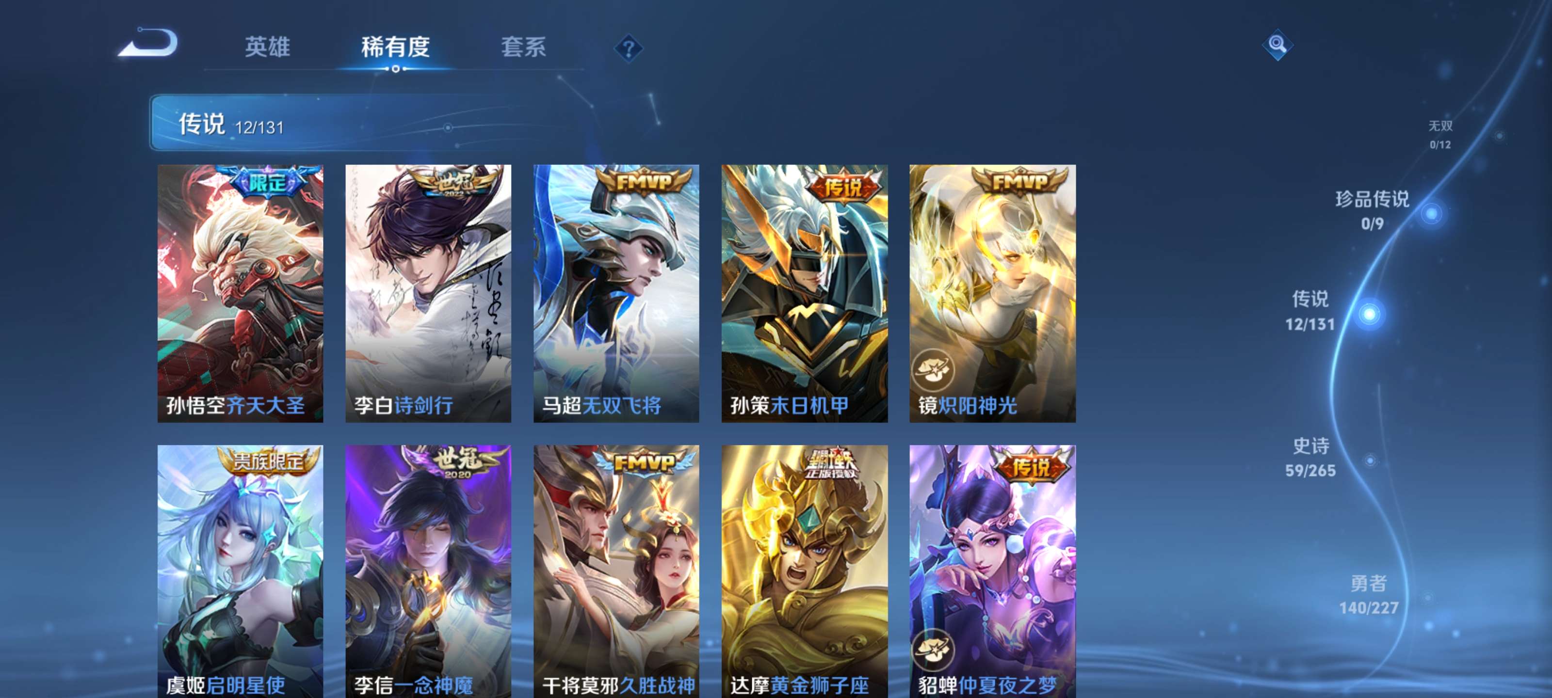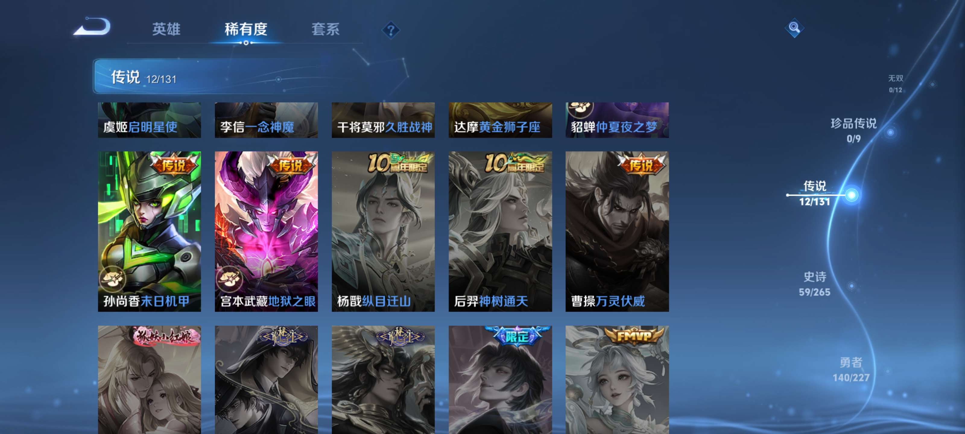 【12传说 神鉴启示录 10皮肤按键】安卓qq/永恒钻石/288皮肤/124英雄/1典藏/12传说/60史诗/8稀有英雄【2 星传说皮肤】未来机甲 孙尚香幽冥之眼 宫本武藏【1 典藏皮肤】神鉴启示录 虞姬【12 传说皮肤】启明星使 虞姬无双飞将 马超齐天大圣 孙悟空诗剑行 李白仲夏夜之梦 貂蝉地狱之眼 宫本武藏炽阳神光 镜黄金狮子座 达摩久胜战神 干将莫邪