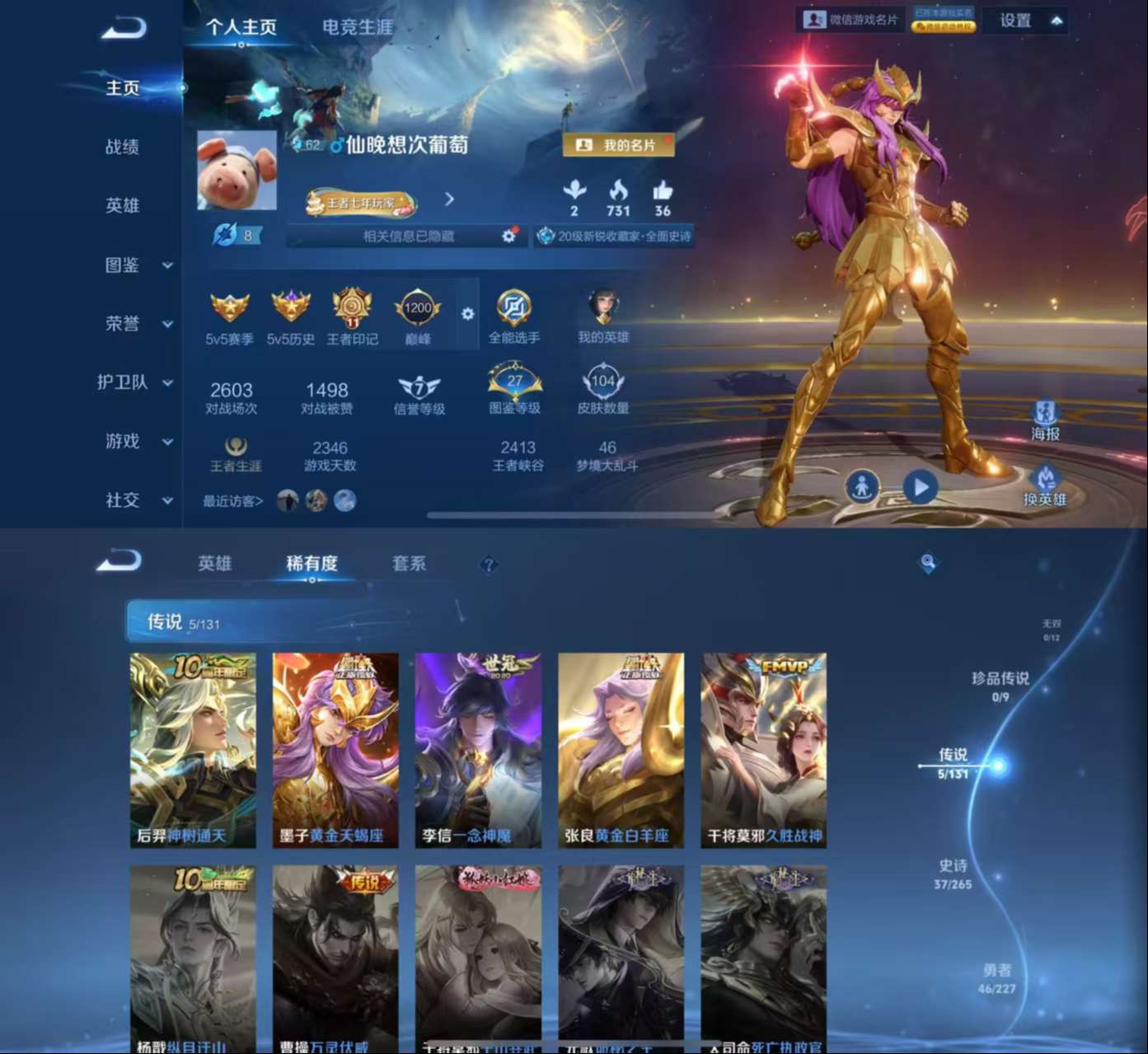 119英雄-104皮肤-jj3694苹果wx-安全保护中-【v6 3银标 中路25段 游走23段 久胜战神 一念神魔 黄金白羊座 黄金天蝎座 神树通天 天狼绘梦者】-非凡王者-119英雄-104皮肤-5传说-35史诗 【稀有英雄】 嬴政 不知火舞 橘右京 夏洛特 娜可露露 韩信 艾琳 赵云 【传说皮肤】 久胜战神 一念神魔 黄金白羊座 黄金天蝎座 神树通天 【限定皮肤】 天狼绘梦者 【史诗皮肤】 时之奇旅 电玩小