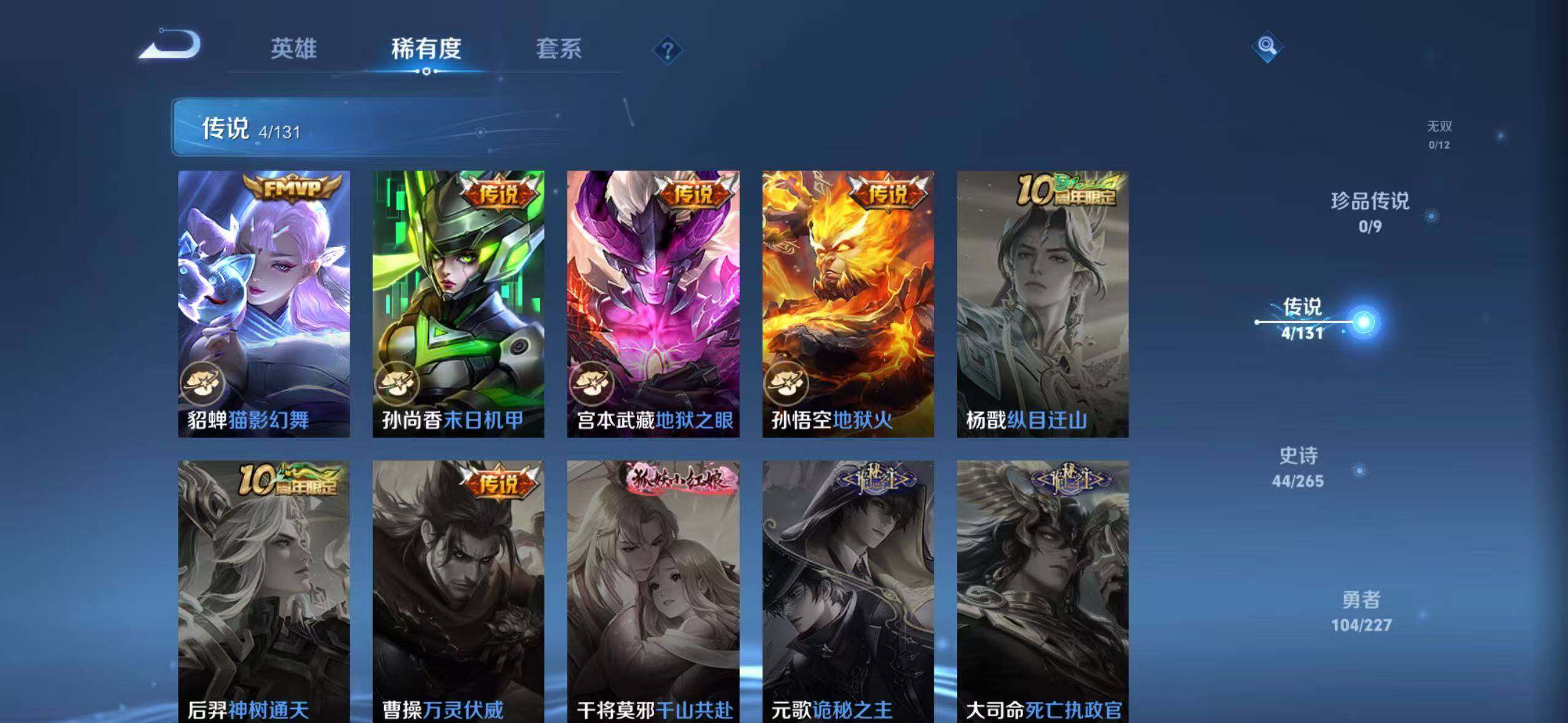 125英雄-207皮肤-金标姜子牙,苹果q-v2-207皮肤-4传说-44史诗 【传说皮肤】:貂蝉猫影幻舞,孙尚香末日机甲,宫本武藏地狱之眼,孙悟空地狱火 【限定皮肤】:白起狰,狄仁杰阴阳师,虞姬凯尔特女王,赵云皇家上将,嬴政白昼王子,鲁班七号狮舞东方,阿轲迷踪丽影,扁鹊炼金王,芈月重明,吕布猎兽之王,元歌无心,夏侯惇朔风