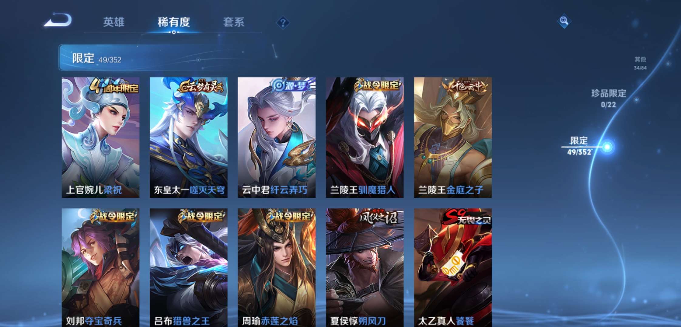 125英雄-136皮肤-jj3712:安卓q-v7-【皇冠q 至尊宝 暗影游猎 虎魄】无二次-尊贵铂金ii-125英雄-136皮肤-0典藏-0无双-0珍品传说-0传说-32史诗 【稀有英雄】 不知火舞 橘右京 夏洛特 娜可露露 韩信 艾琳 赵云 【限定皮肤】 至尊宝 暗影游猎 狂想玩偶喵 虎魄 【史诗皮肤】 奔雷神使 电玩小子 银河之约 暗影游猎 狮舞东方 心灵战警 迷踪丽影 魅力维加斯 遇见神鹿