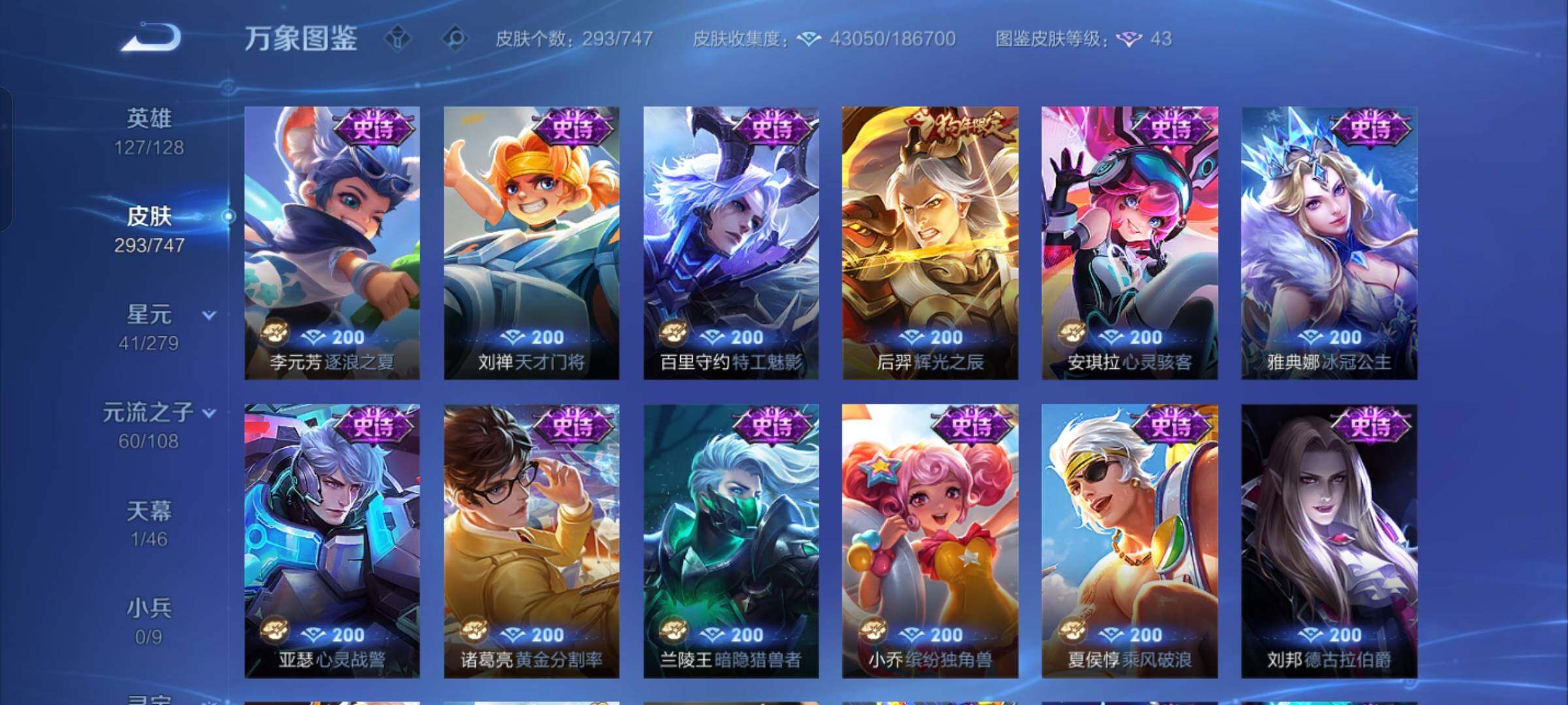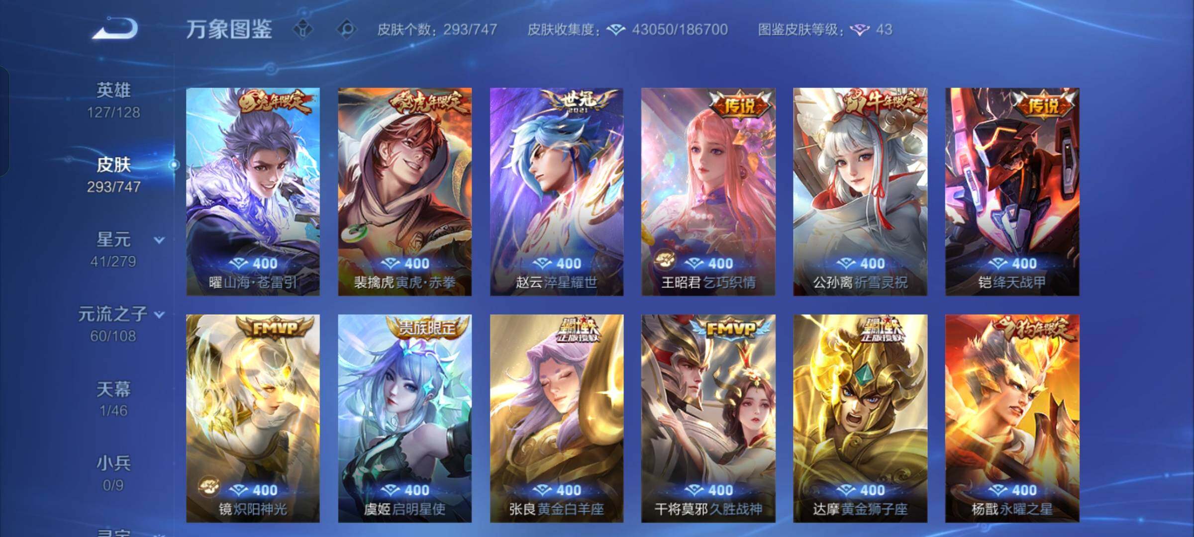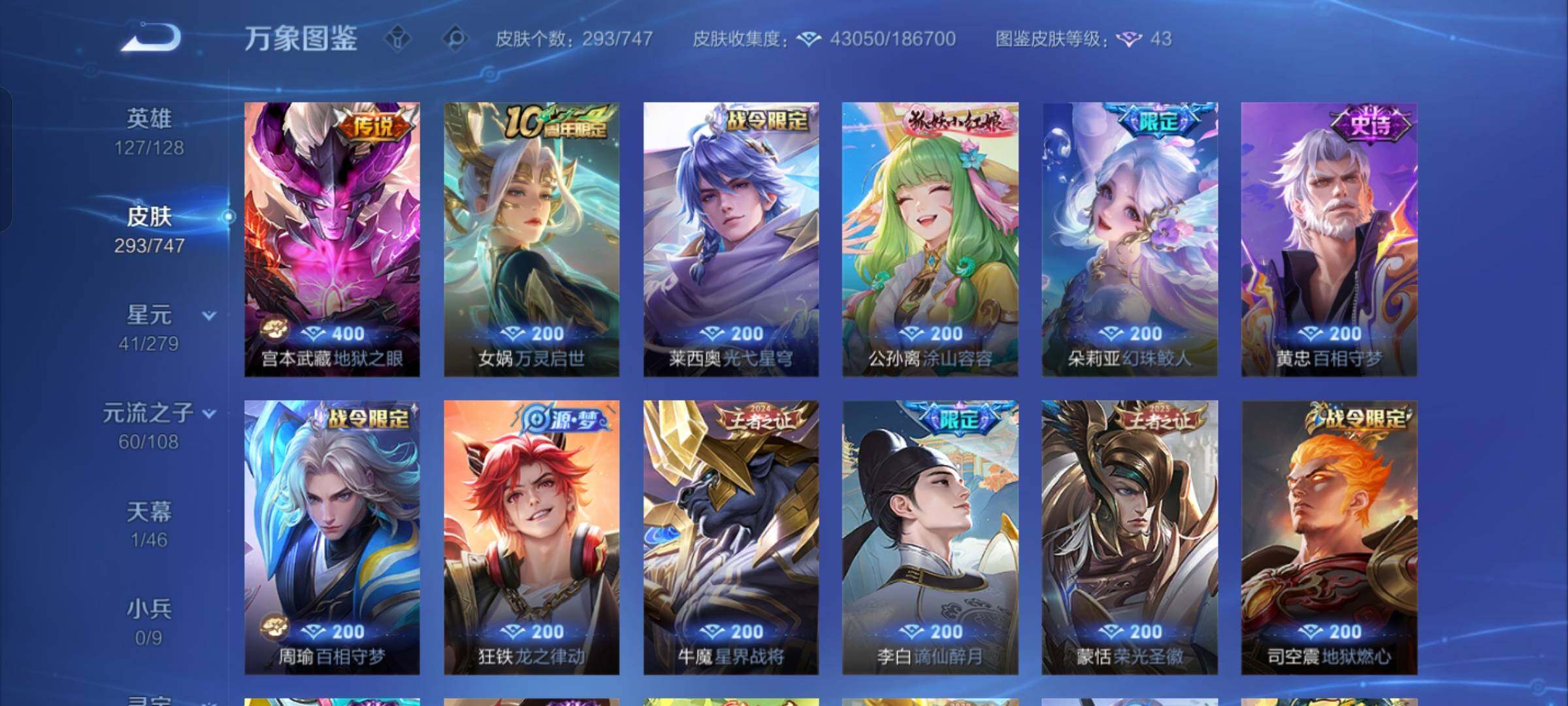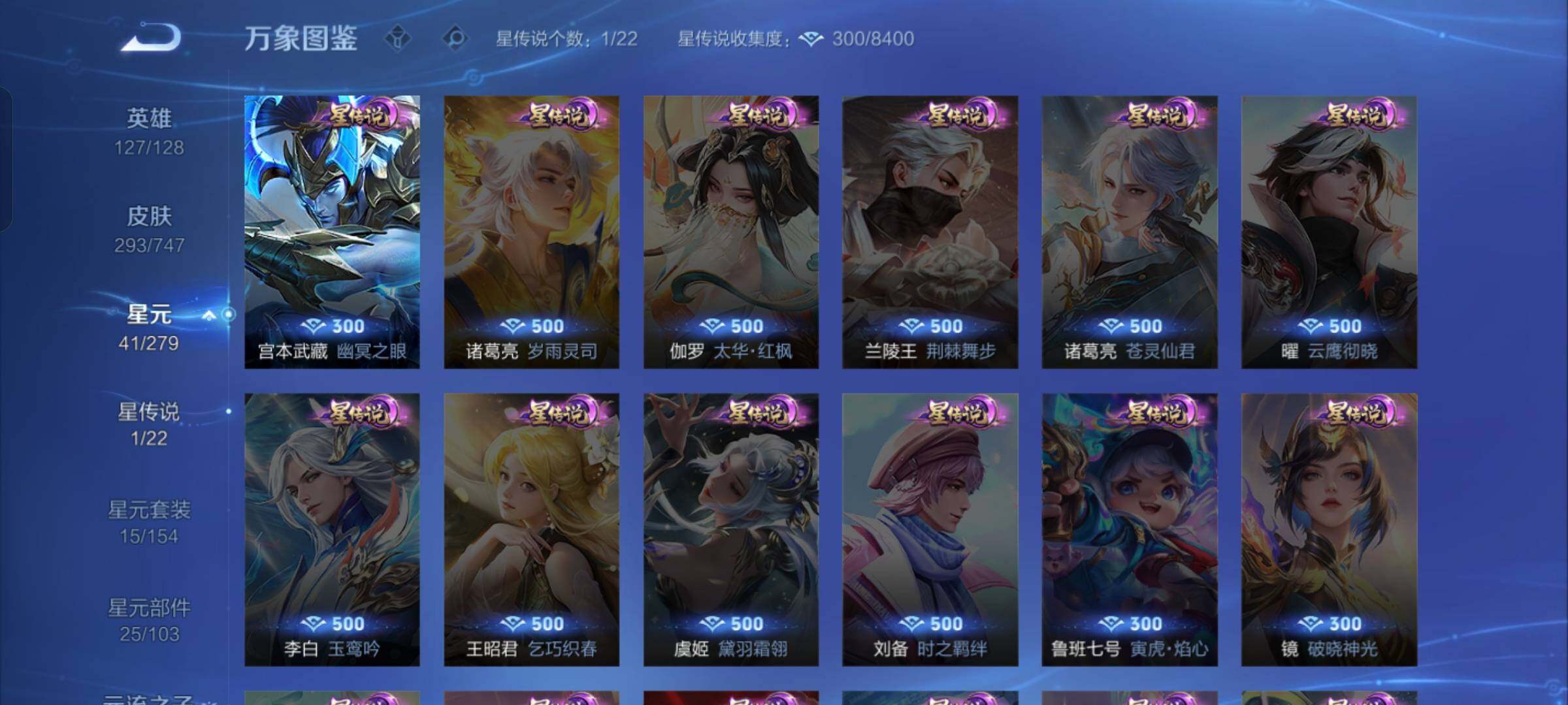 【店长推荐·韩信群星魔术团·天机白泽·九霄神辉·诡秘之主·愿照九州拓·祥瑞亨通·落雪白狼·霜月吟·山海苍雷引·山海炽霜斩·寅虎赤拳·祈雪灵祝·永曜之星·神威·山海玄木吟·可二次】w7869-安卓q-127英雄-293皮肤-16王者印记-300铭文-贵族积分5w【贵族8】【1典藏·2无双·1星传说·22传说·1天幕·12按键·247幸运值】【因赛季更新游戏段付以上号为准!】 【英雄全皮】:元