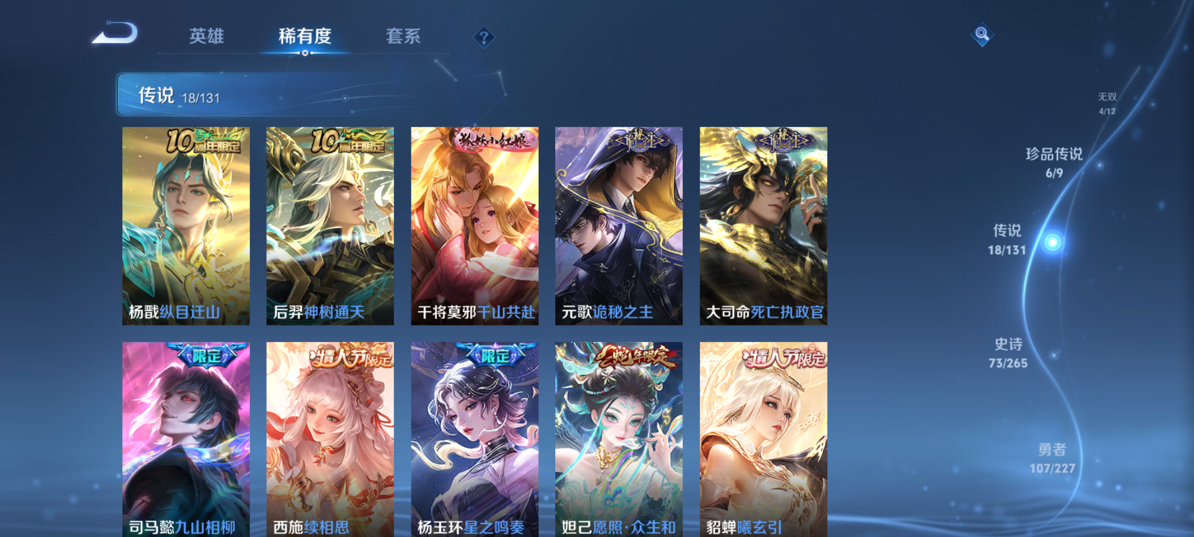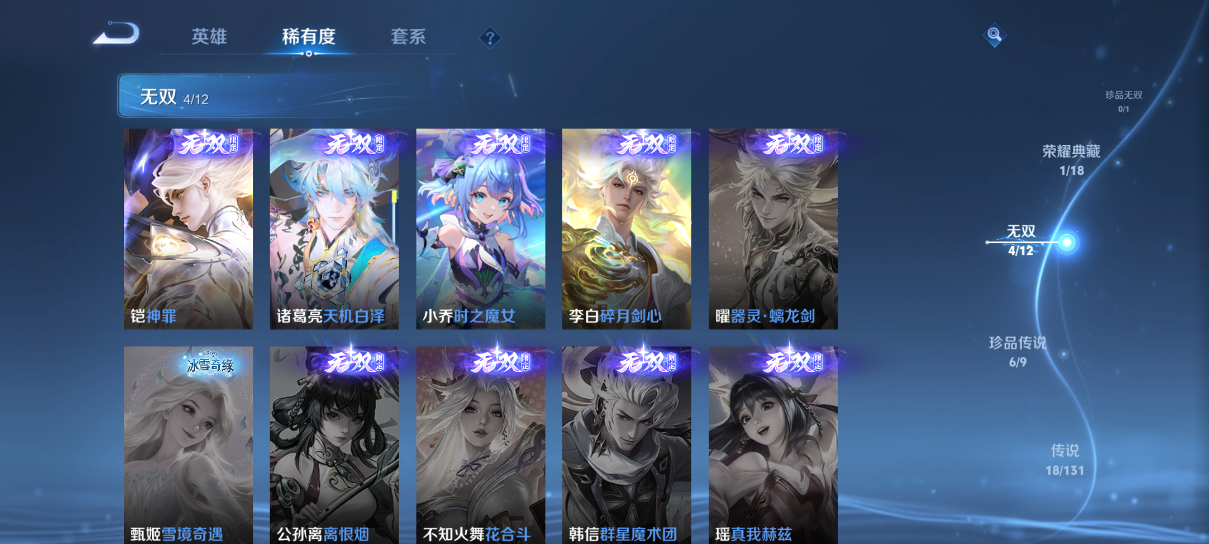 txwz23758 金标小乔(1.1w战力)金标妲己(1w战力)v8 247皮 1典藏 幻阙歌1典藏 幻阙歌 4无双 碎月剑心,神罪,天机白泽,时之魔女 6珍品传说 黑崎一护,朽木白哉,大耳狗之梦,酷洛米之心,兔狲·蓬尾,器灵·落星盏 18传说 神树通天,纵目迁山,深海之息,千山共赴,诡秘之主,死亡执政官,九山相柳,至美·化雀舞,启明星使,海洋之心,续相思,星之鸣奏,愿照·众生和,曦玄引,山海·琳琅生,乞巧织情,游龙清影,音你心动 73史诗 特工魅影,紫霞仙子,箭羽风息,万物之道,巫礼祀神,万灵启世,光弋星穹,群星魔术团,星界战将,时之奇旅,织梦人,涂山容容,守夜人,云间偶戏,百相守梦,幻珠鲛人,未来纪元,赞萌露比,奇遇舞章,戍鼓铭心,至美·乘鲤谣,百相守梦,水晶猎龙者,石田雨龙,乘风破浪,布丁狗之誓,白蛇,龙之律动,雪豹·霜爪,时之恋人,鸭鸭历险记,燃音魔法,偶像歌手,乱世虎臣,暗影游猎,茶境仙,化蝶舞,暗夜贵公子,顽趣,圣诞狂欢,遇见神鹿,星界游侠,繁星吟游,天秀·音浪,黎明之约,唤灵魅影,魅语,逐浪之夏,水果甜心,鬼剑武藏,冰雪圆舞曲,绅士熊喵,寅虎·心曲,蔷薇恋人,女儿国国王,拒霜思,真爱魔法,金属风暴,魔术师,游园惊梦,高山流水,暗渊魔法,时之奇旅,月团寄思,航海奇遇记,皇家上将,女仆咖啡,缤纷独角兽,胡桃异想国,诗语江南,鹰眼统帅,冰霜恋舞曲,李小龙