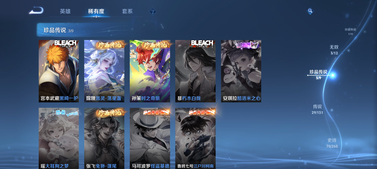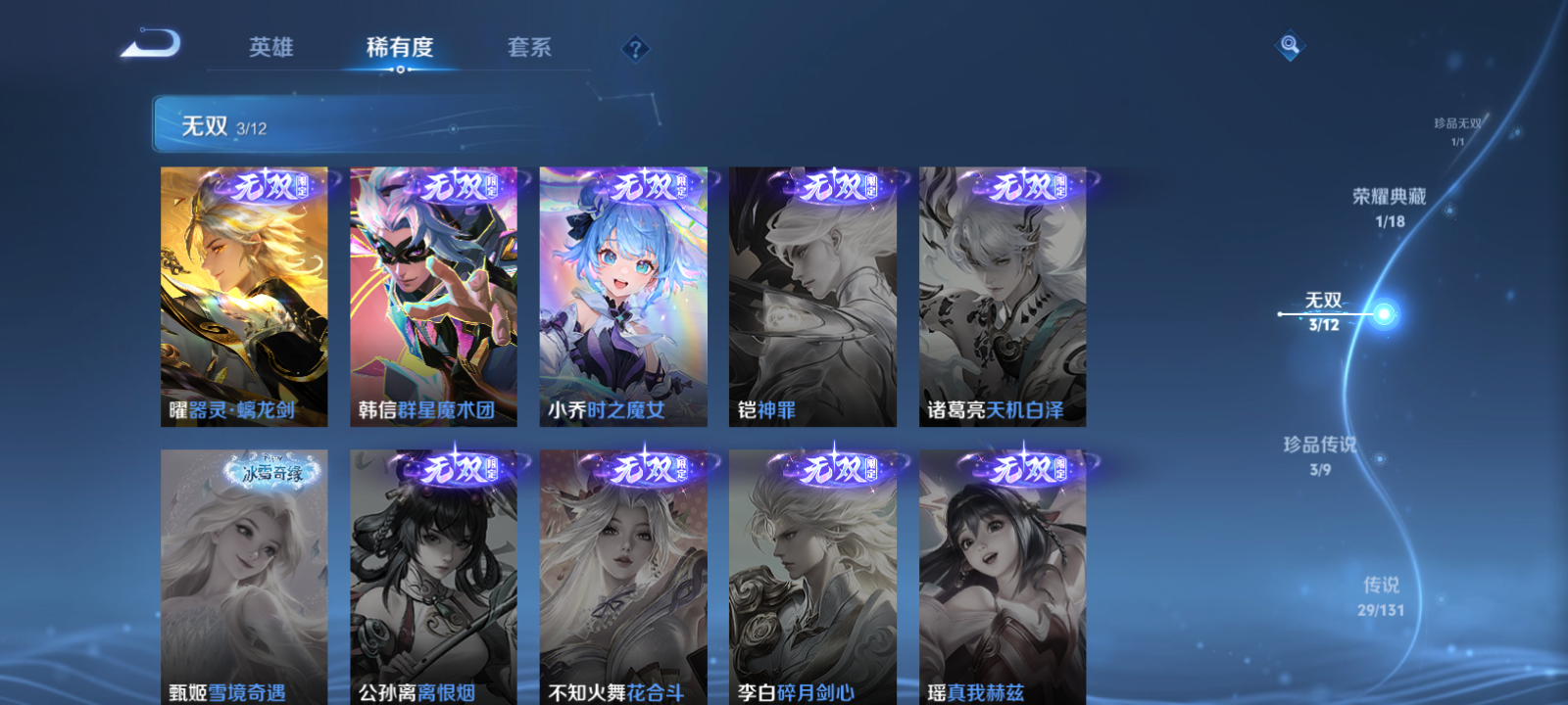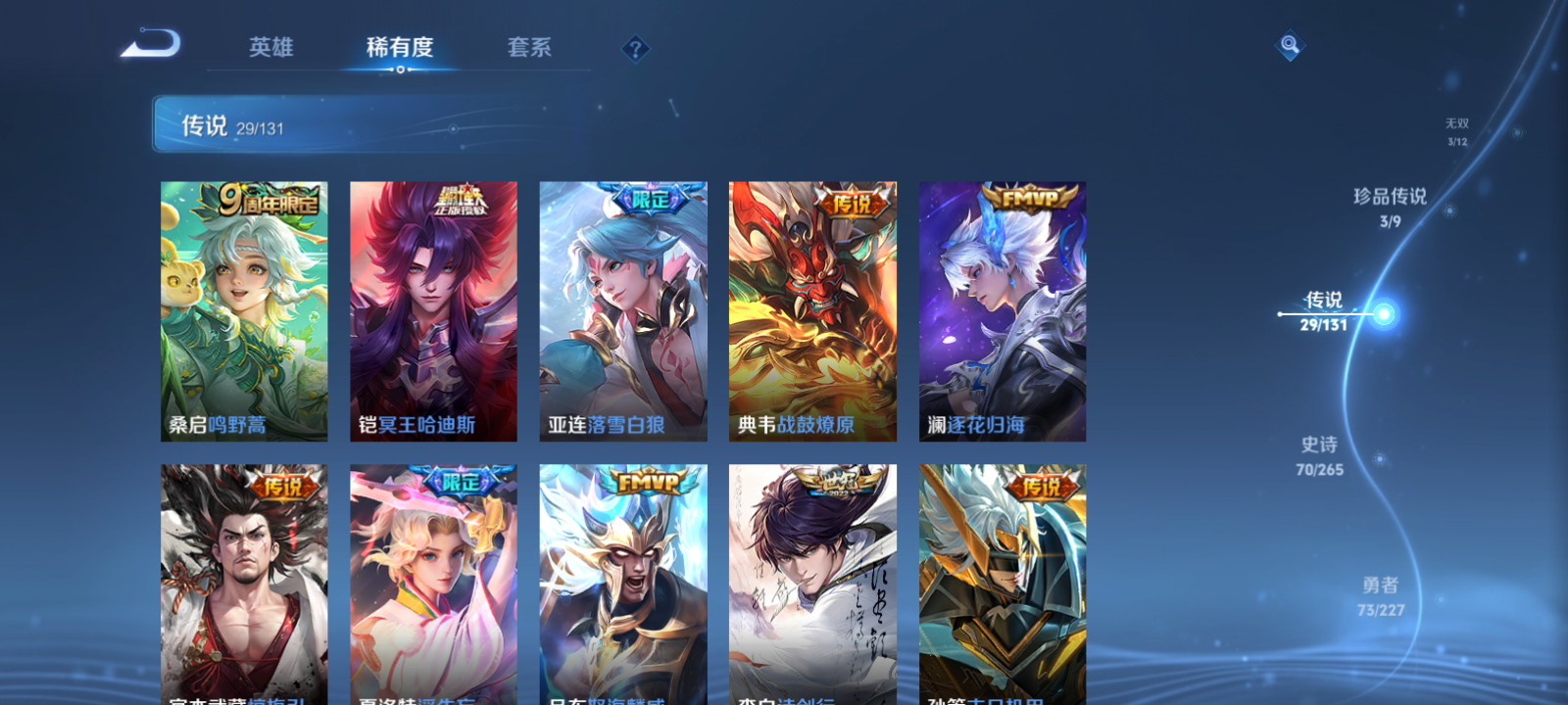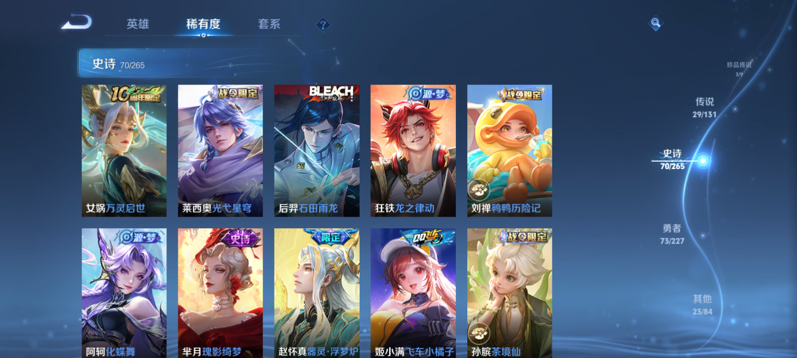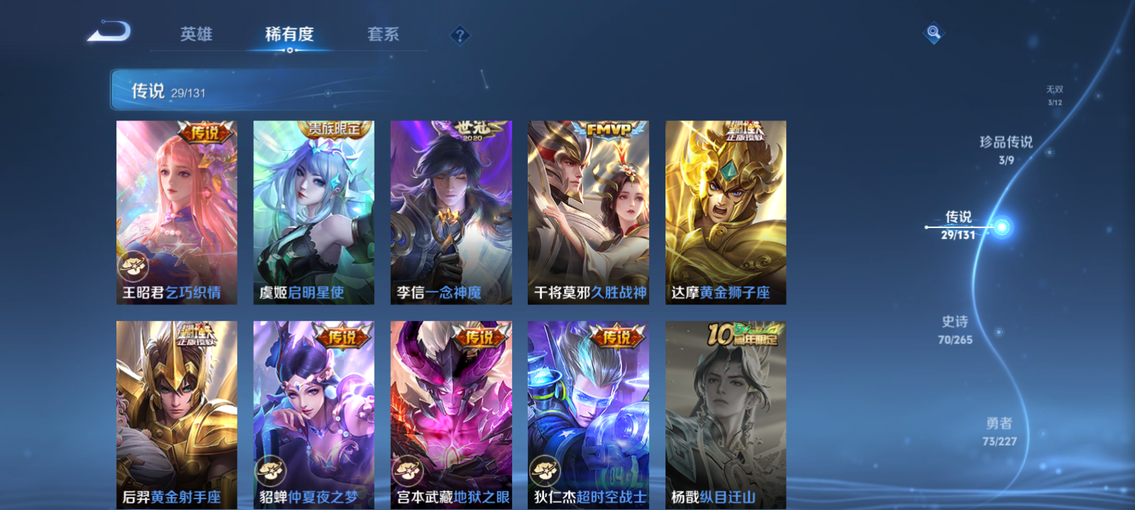 【王者荣耀】【lywz23252】珍品无双1 典藏1 无双3 珍品传说3 传说29 史诗70 英雄127 皮肤203 贵族7级 珍品无双:馥梦繁花__荣耀典藏:弑呛猎影__无双皮肤:群星魔术团|时之魔女|器灵·螭龙剑__珍品传说:孙策-时之奇旅|器灵·落星盏|黑崎一护__传说皮肤:鸣野蒿|启明星使|地狱之眼|孙策-末日机甲|仲夏夜之梦|久胜战神|黄金狮子座|狄仁杰-超时空战士|黄金射手座|一念神魔|乞巧织情|浮生妄|惊梅引|落雪白狼|怒海麟威|诗剑行|战鼓燎原|逐花归海|冥王哈迪斯|幻光神呛|愿照·岁时盈|愿照·山河定|愿照·九州拓|愿照·众生和|愿照·福禄聚|星之鸣奏|愿照·千秋盛|续相思|神树通天__稀有限定:至尊宝|蔷薇恋人|傲雪梅呛|山海·玄木吟|海滩派对|皇家上将|剑破天穹|降魔|魔术师|青焰无极|燃音魔法|天穹祈灯|阴阳师|原初追逐者|暗夜贵公子|暗隐猎兽者|白蛇|乘风破浪|大乔-猫狗日记|德古拉伯爵|伽罗-琥珀纪元|功夫厨神|鬼剑武藏|节奏热浪|金属风暴|乐园奇幻夜|李元芳-蔬乡物语|玫瑰异探|魅力维加斯|魅语|偶像歌手|上官婉儿-群星魔术团|圣诞狂欢|圣诞恋歌|鲁班七号-蔬乡物语|水果甜心|水晶猎龙者|滕王阁序|天才门将|天秀·启明|赵云-未来纪元|星夜王子|银翎春语|鹰眼统帅|永昼|幽灵船长|月团寄思|逐浪之夏|紫霞仙子|百里守约-百相守梦|老夫子-百相守梦|陌上桑|谪仙醉月|噬灭天穹|敬我三分|炽弈燎原|撼地雄心|破空之剑|东方月初|涂山红红|埋骨钱|顽岩魄|蔡文姬-夏日便利店|虞姬-夏日便利店|天穹之誓|浮光幕影|修罗|心灵骇客|飞车小橘子|茶境仙|星界战将|谧流熔炉|器灵·浮梦炉|瑰影绮梦|化蝶舞|孙悟空-神迹守卫|访茗客|灵卜魔法|苍威无极|刘禅-鸭鸭历险记|沈梦溪-鸭鸭历险记|龙之律动|布丁狗之约|虚灵犬护|石田雨龙|逆浪荇歌|光弋星穹|往忆晖光|荣光之誓|万灵启世|鹤鸣心笺__优质皮肤:年年有余|熊喵少女|露花倒影|激情绿茵|超能战警|启蛰|伊势巫女|画中游|生化警戒|第七人偶|芝加哥教父|绝影神呛|幸存者|赤焰之缨|前尘|特种部队|精灵王|范海辛|占星师|花间舞|灼热之刃|加勒比小姐|长夏之忆|暗都幽影|瓷语鉴心|丁香结|守护之力|幻想奇妙夜|死亡骑士|天使之翼|忍·炎影|街头霸王|漠中幻影|时空谍影|零食大作战|幻泉雾影|次元傲视|无尽征程|幽兰居士|白色死神|白执事|哥特玫瑰|魅影绮裳|西施-雪境奇遇|灵卦秘语|景韶洛都|浪漫序章|雾都夜雨|铁骨偃魂|龙腾万里|乱世虎臣|敏锐之力|西施-归虚梦演|牛魔-西部大镖客|热血海滩|龙舞盛年|汉昭烈帝|乓乓大师|五福同心|程咬金-群星魔术团|花好人间|熔金海岸|春野之旅|苍林狼骑|炽热元素使|春野闲踪|灵野札记|玫蓝誓约|命运加冕|潮玩士官长|小满鸭|踏浪烽翎|哪吒-罗小黑战记|张良-罗小黑战记|径山谋武__贵族等级:贵族7级__王者段位:最强王者【背包1荣耀水晶】珍品无双貂蝉 无双曜 韩信 小乔珍品孙策 嫦娥宫本等多限定热门