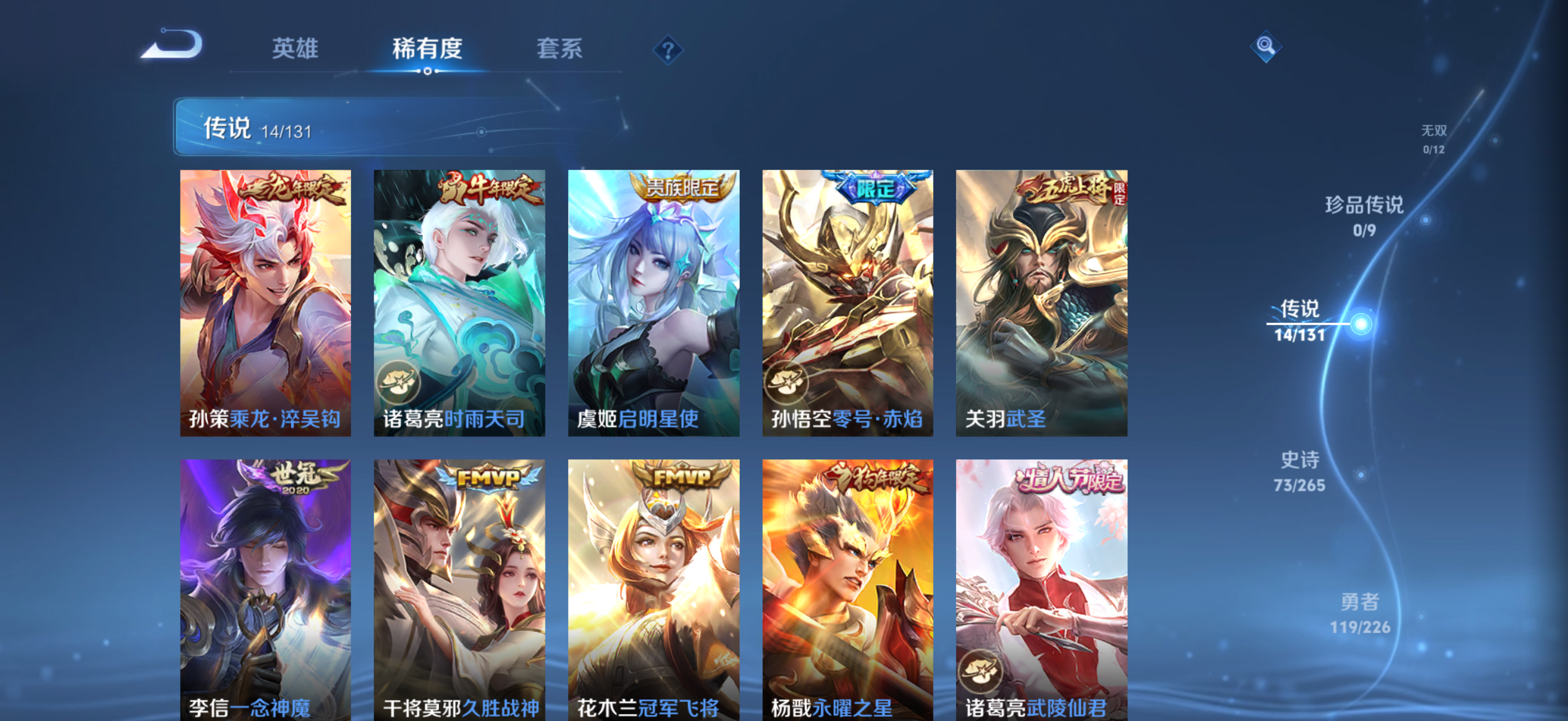 v8 262皮-6典藏(大秦宣太后,九霄神辉,星域神启,鸣剑·曳影,天鹅之梦,全息碎影)14传说乘龙·淬吴钩,时雨天司,启明星使,零号·赤焰,凤求凰,地狱之眼,天魔缭乱,武陵仙君,永曜之星,久胜战神,冠军飞将,武圣,一念神魔,地狱火