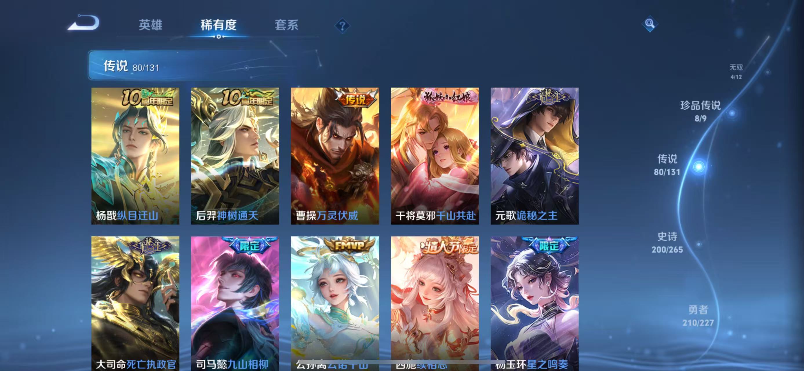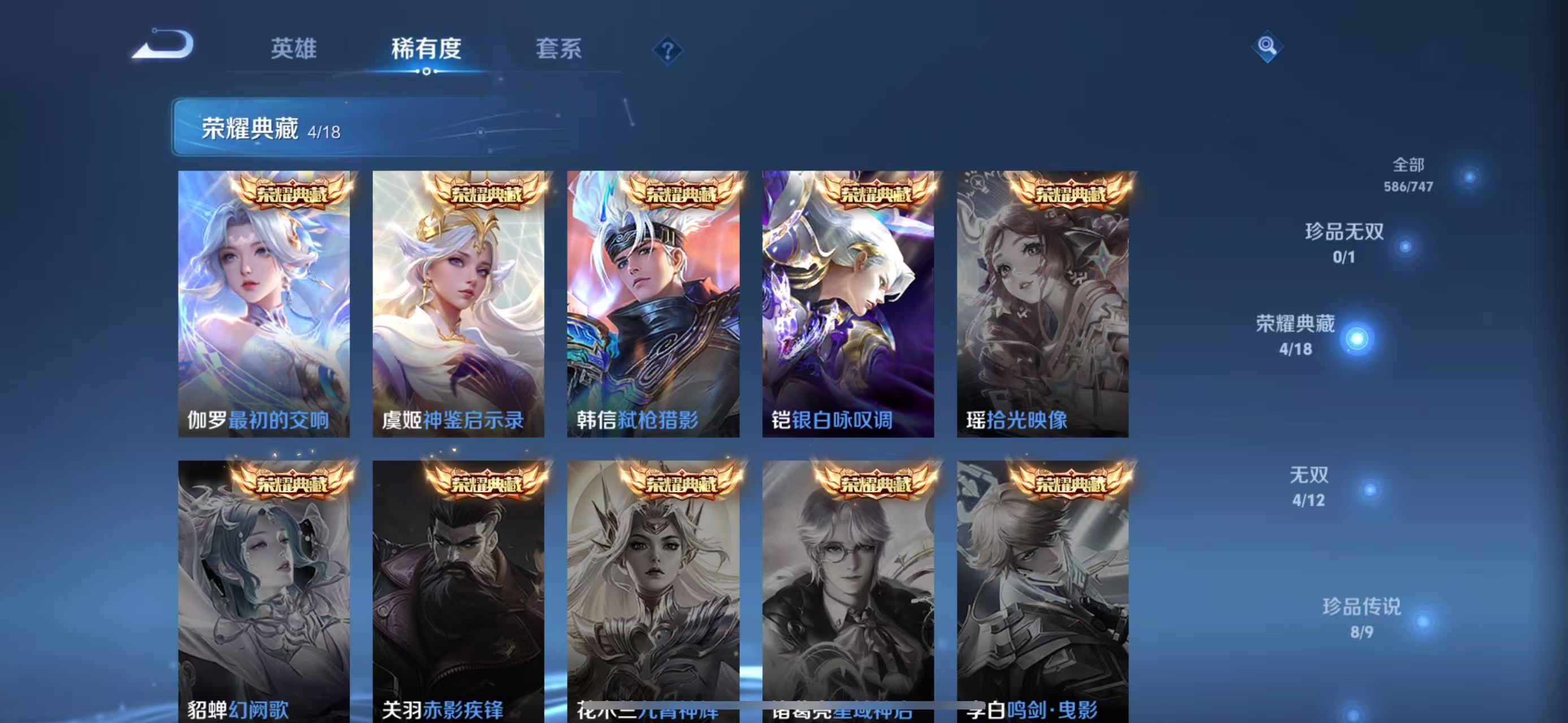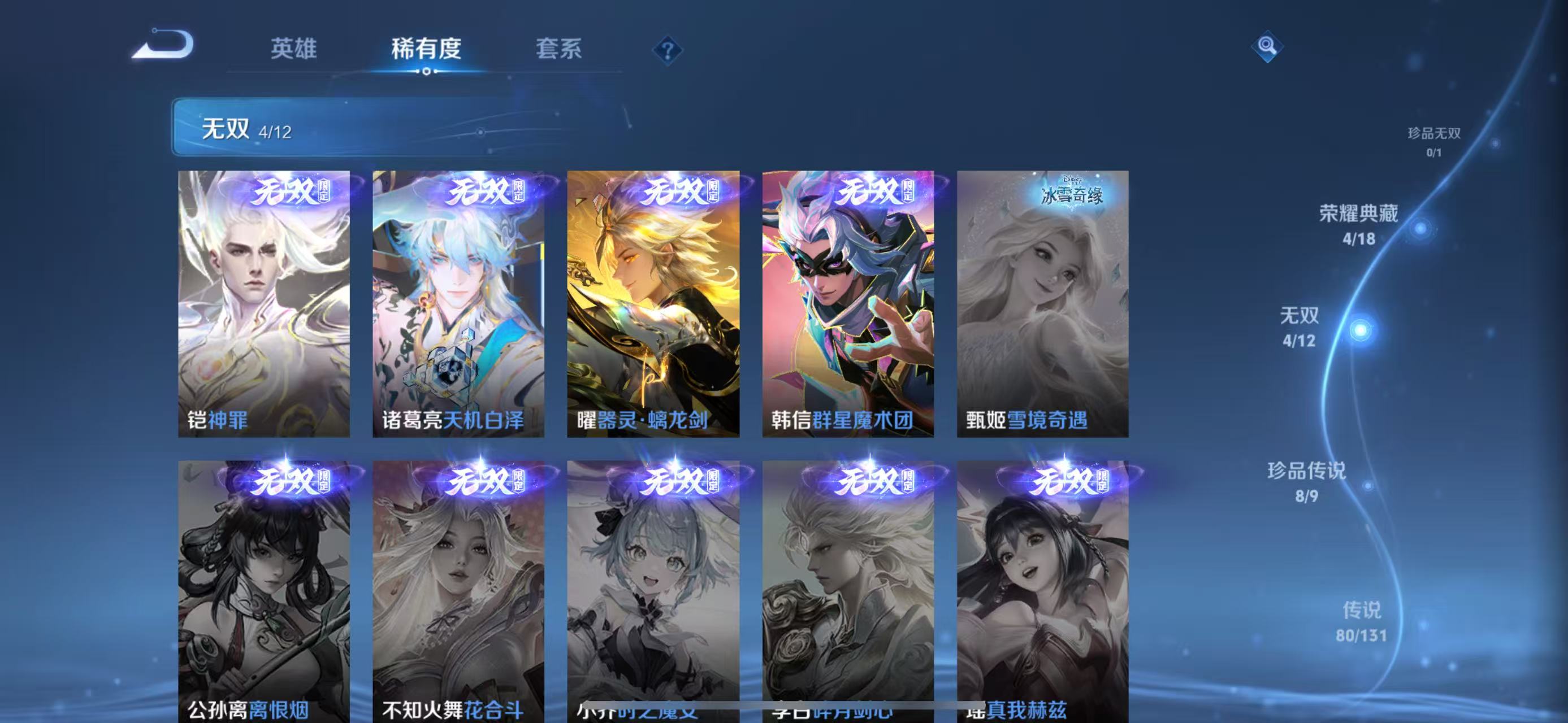 txwz23794-无双v10 586皮 百星魔方 小国标虞姬1.5w战力 小国标狄仁杰1.46w战力 金标孙尚香1.5w战力 金标公孙离 1.49w战力 金标戈娅1.3w战力 4典藏 银白咏叹调,弑呛猎影,最初的交响,神鉴启示录 4无双 神罪,群星魔术团,天机白泽,器灵·螭龙剑 8珍品 黑崎一护,朽木白哉,酷洛米之心,大耳狗之梦,兔狲·蓬尾,器灵·落星盏,时之奇旅,怪盗基德 80传说 心动手记,纵目迁山,霜北刀,琥珀纪元,神树通天,万灵伏威,千山共赴,诡秘之主,死亡执政官,九山相柳,怒海麟威,小动物乐团,电玩·雷克斯,末日机甲,惊梅引,永曜之星,寅虎·赤拳,落雪白狼,鹤羽星尊,云诺千山,久胜战神,续相思,星之鸣奏,觅芳踪,绛天战甲,黄金射手座,灼幽烈阳,黄金白羊座,妄想奇谈,战鼓燎原,末日机甲,浮生妄,诗剑行,音你闪耀,碎云,淬星耀世,祈雪灵祝,超时空战士,无双飞将,黄金狮子座,影龙天霄,千劫归真,绯月行,幻光神呛,愿照·千秋盛,愿照·山河定,愿照·岁时盈,愿照·福禄聚,愿照·众生和,愿照·九州拓,祥瑞亨通,乞巧织情,游龙清影,映山客,鸣野蒿,记忆之芯,霜月吟,逐花归海,海洋之心,牧神诗旅,曦玄引,乘龙·铭钟鼎,乘龙·问璇玑,乘龙·淬吴钩,百相守梦,启明星使,齐天大圣,山海·苍雷引,山海·琳琅生,山海·炽霜斩,地狱之眼,仲夏夜之梦,李 ,炽阳神光,武圣,云鹰飞将,一念神魔,胖达荣荣,太华,猫影幻舞 200史诗