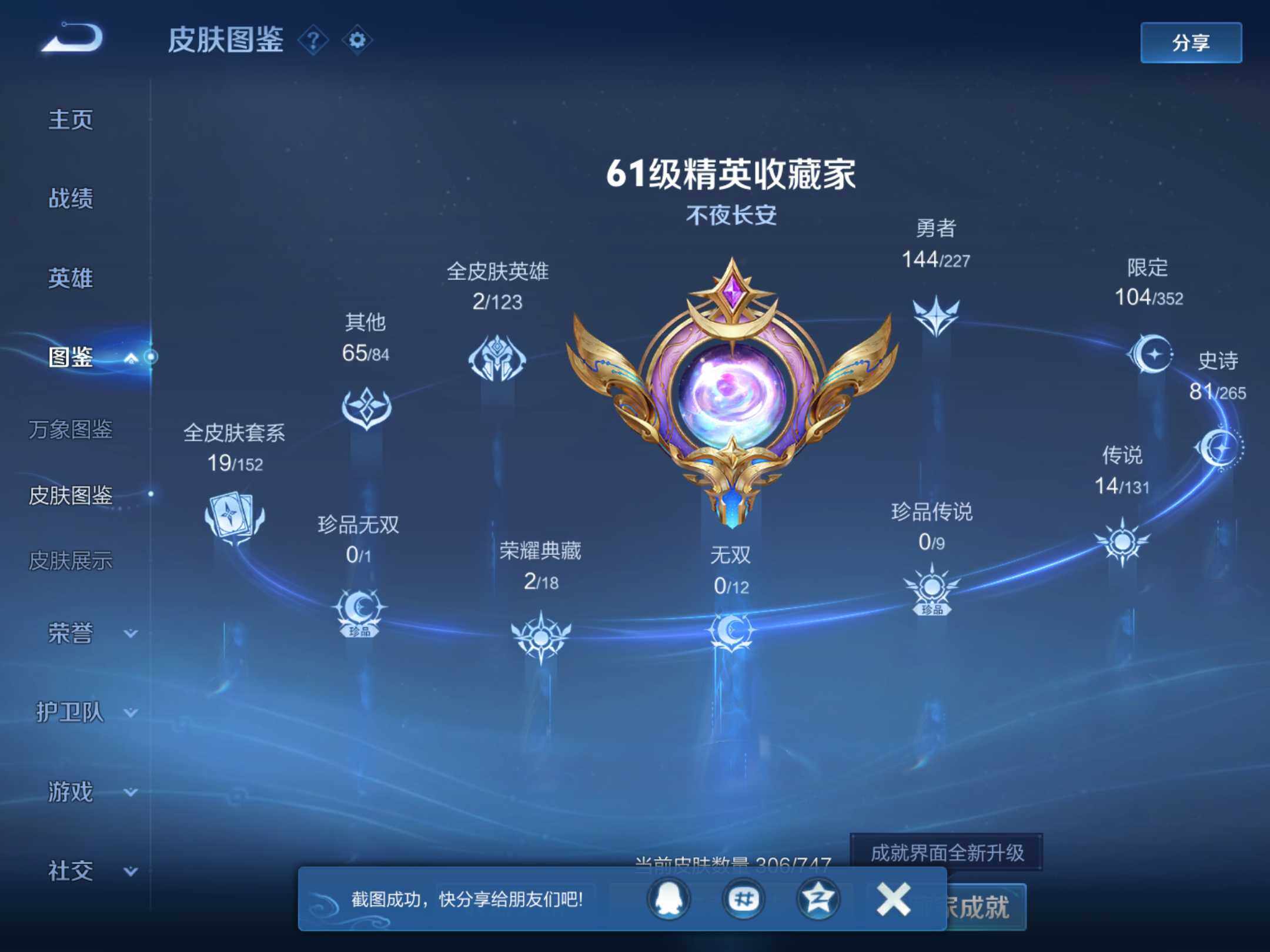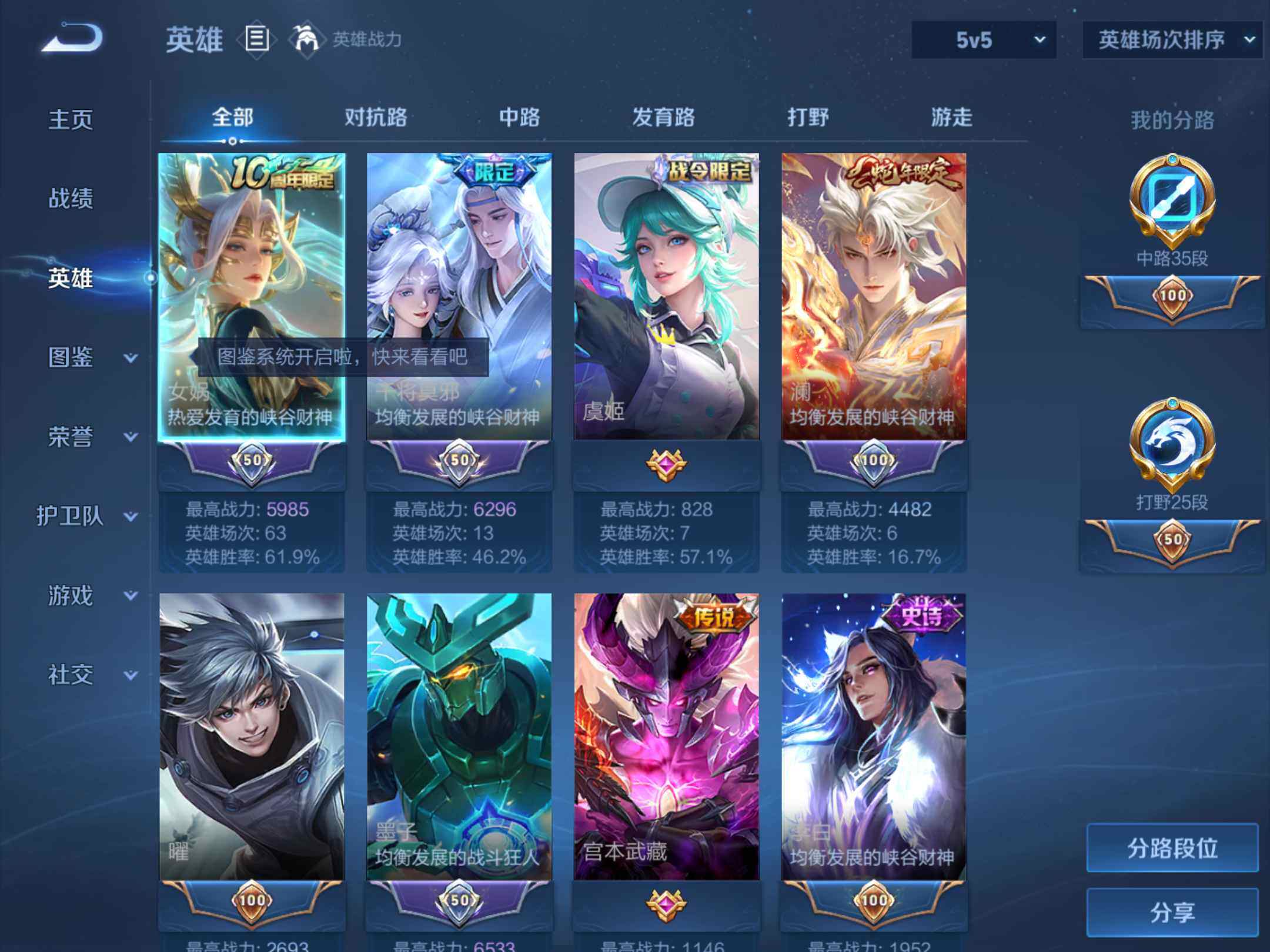 _2295392-q-v7-最强王者段位-128英雄-306皮肤-2典藏皮肤-1典藏英雄-14传说-81史诗-中路35段,对抗路22,打野25,发育路22, 【英雄全皮】:孙权全皮,猪八戒全皮 【荣耀典藏】:武则天英雄,李白鸣剑曳影,貂蝉幻阙歌 【传说皮肤】:后羿神树通天,女娲愿照千秋盛,澜愿照九州拓,虞姬愿照岁时盈,桑启鸣野蒿,干将莫邪画中仙,刘备时之恋人,干将莫邪久胜战神,百里玄策白虎志,梦奇胖达荣荣,李白凤求凰,孙尚香末日机甲,宫本武藏地狱之眼,武则天海洋之心 【限定皮肤】:白起狰,蒙犽顽岩魄,虞姬夏日便利店,姜子牙天穹之誓,狄仁杰阴阳师,小乔纯白花嫁,虞姬凯尔特女王,赵云皇家上将,赵云引擎之心,墨子神迹守卫,嬴政优雅恋人,庄周高山流水,高渐离死亡摇滚,孙膑妖精王,扁鹊炼金王,芈月重明,芈月幻夜卜梦,元歌无心,夏侯惇朔风刀,曹操烛龙,典韦穷奇,典韦蓝屏警告,马可波罗暗影游猎,马可波罗山海玄木吟,狄仁杰魔术师,狄仁杰万华元夜,达摩星际陆战队,达摩沙漠行僧,项羽海滩派对,老夫子醍醐杖,老夫子航海奇遇记,程咬金演武夺筹,刘邦夺宝奇兵,韩信逐梦之影,兰陵王金庭之子,孙悟空至尊宝,牛魔御旌,后羿圣弓游侠,李元芳云中旅人,钟馗驱傩正仪,干将莫邪真爱魔法,干将莫邪画中仙,雅典娜单词大作战,雅典娜黎明之约,蔡文姬繁星吟游,太乙真人饕餮,鬼谷子原初探秘者,黄忠火炮绅士,苏烈千军破阵,百里玄策白虎志,百里玄策原初追逐者,弈星混沌棋,梦奇顽趣,公孙离玉兔公主,沈梦溪大漠名商,明世隐疑决卦,裴擒虎李小龙,狂铁御狮,米莱狄御霄,米莱狄胡桃异想国,云中君纤云弄巧,盾山御銮,猪八戒西部大镖客,猪八戒猪悟能,上官婉儿梁祝,上官婉儿天狼绘梦者,嫦娥拒霜思,蒙犽狂想玩偶喵,艾琳女武神,艾琳流音漫舞,蒙恬荣光圣徽,姬小满妄想食味,沈梦溪龙舞盛年,刘邦剑破天穹,周瑜熔金海岸 【年限皮肤】:百里玄策白虎志,李白凤求凰,马超神威,马可波罗山海玄木吟 【赛季限定】:孙膑妖精王,扁鹊炼金王,白起狰,芈月重明,夏侯惇朔风刀,曹操烛龙,典韦穷奇,狄仁杰万华元夜,达摩沙漠行僧,老夫子醍醐杖,程咬金演武夺筹,兰陵王金庭之子,牛魔御旌,李元芳云中旅人,虞姬凯尔特女王,钟馗驱傩正仪,雅典娜黎明之约,太乙真人饕餮,鬼谷子原初探秘者,苏烈千军破阵,百里玄策原初追逐者,弈星混沌棋,梦奇顽趣,沈梦溪大漠名商,明世隐疑决卦,狂铁御狮,米莱狄