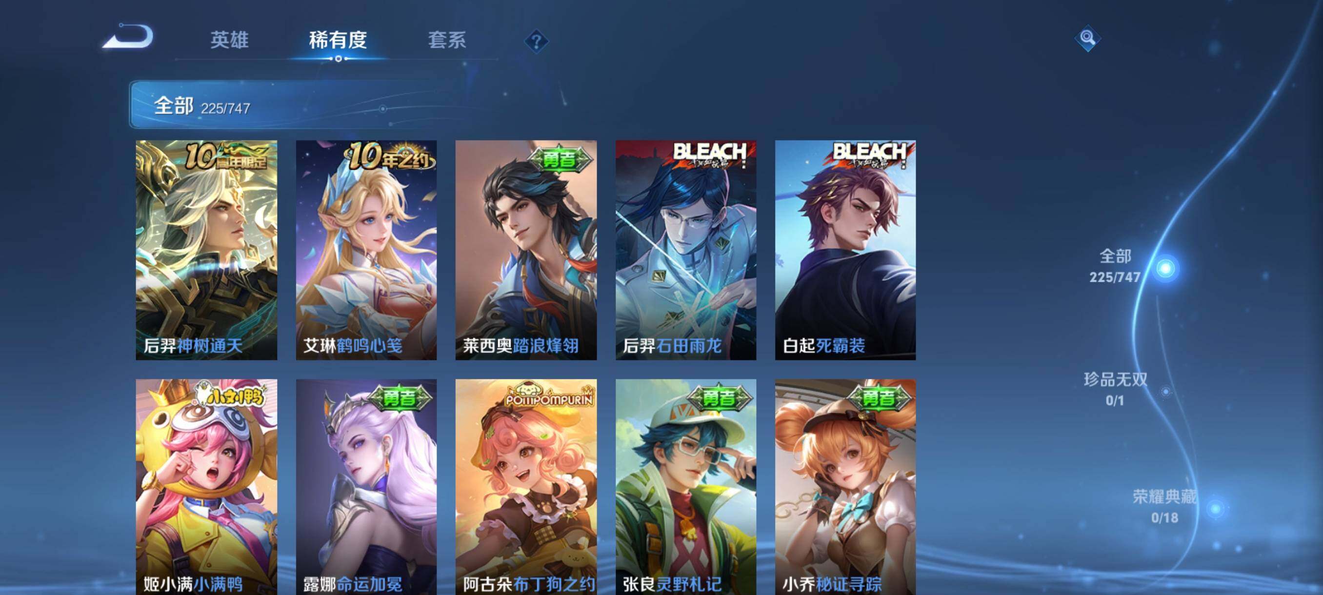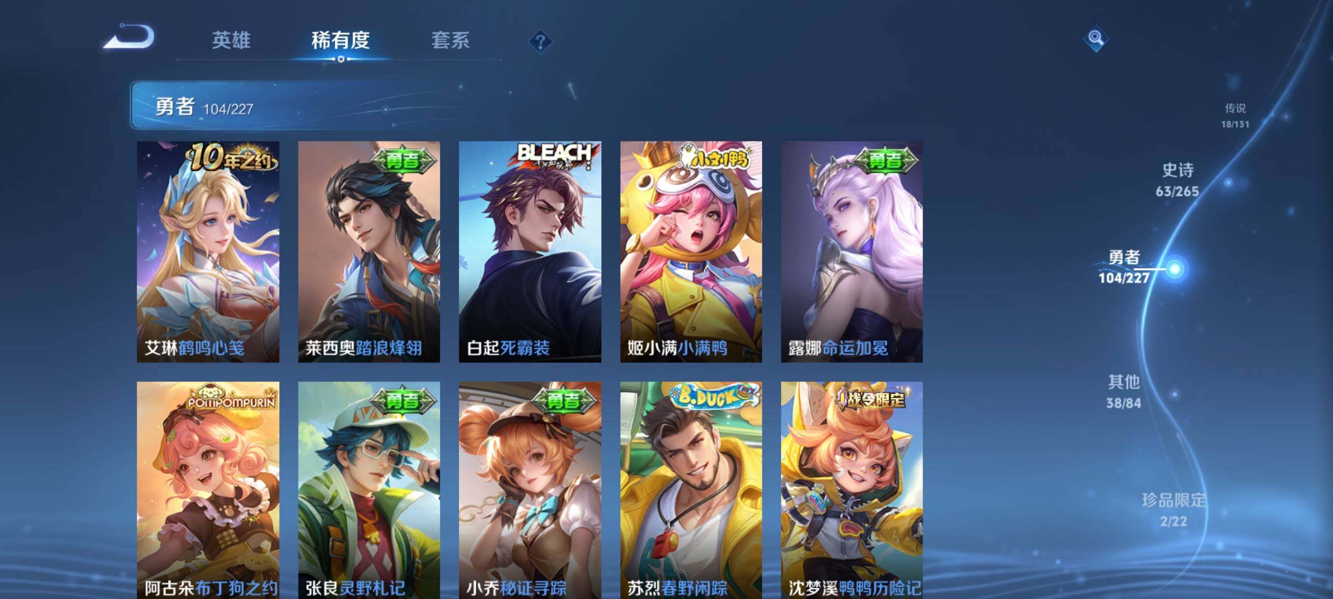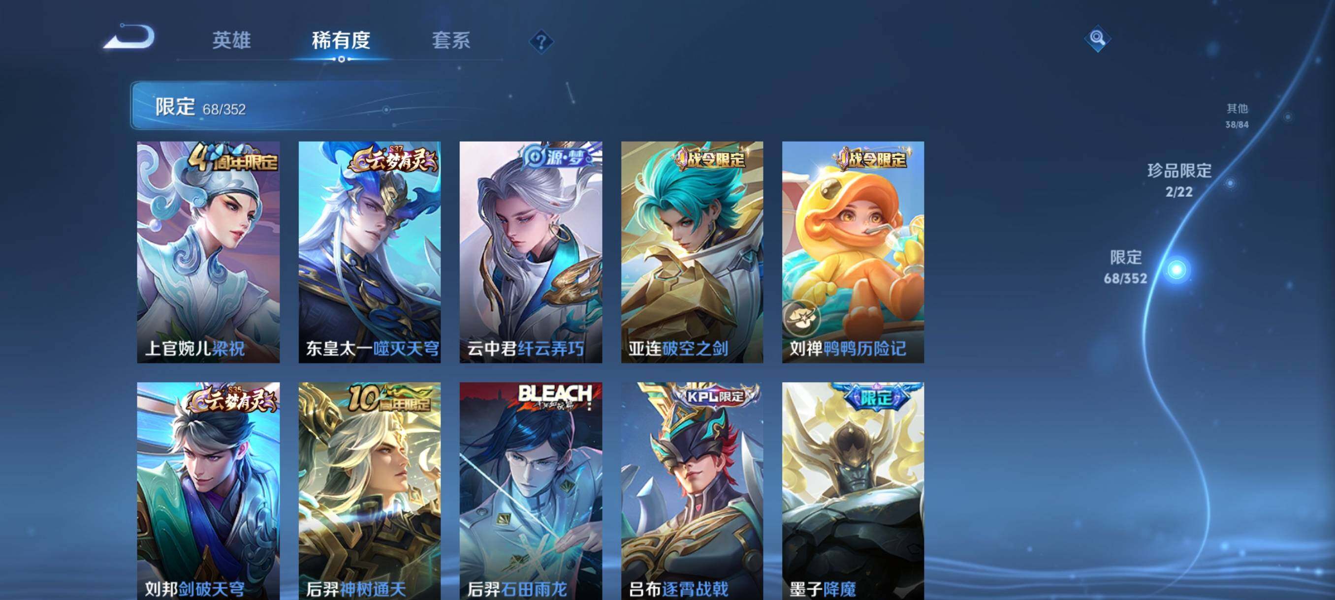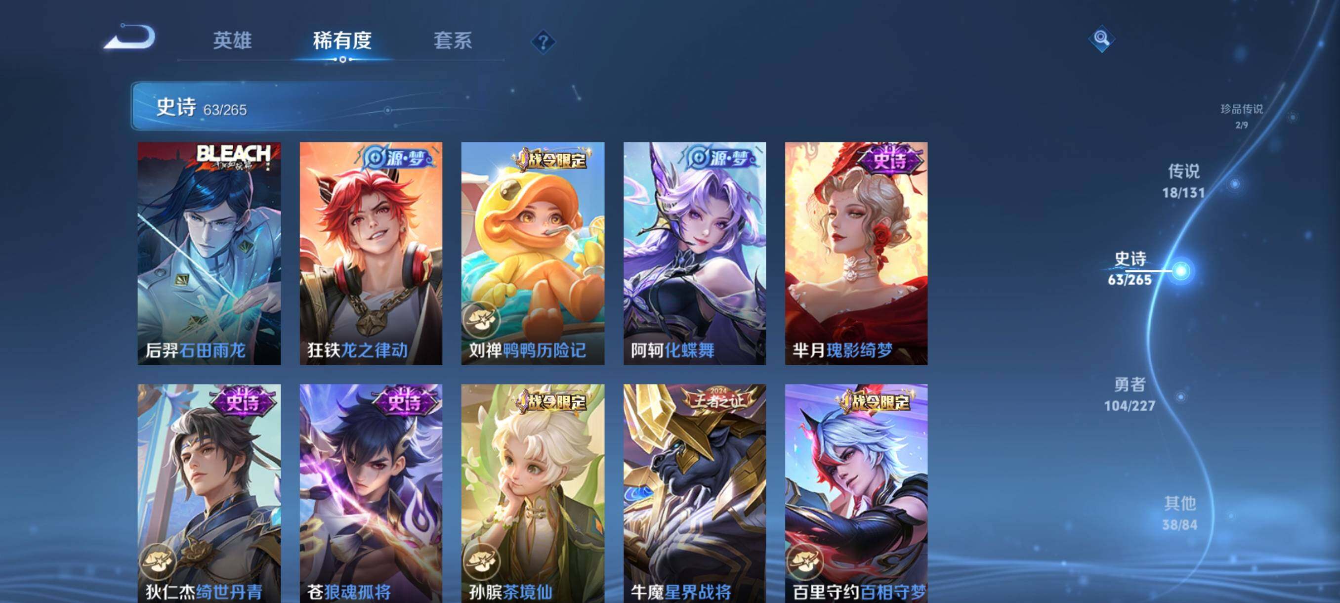 _2295431-q-v3-尊贵铂金ii段位-游走21段-1星元孙尚香末日机甲-128英雄-225皮肤-1典藏英雄-2珍品传说-18传说-63史诗 【英雄全皮】:苍全皮,盾山全皮,影全皮 【荣耀典藏】:武则天英雄 【珍品传说】:马可波罗怪盗基德,鲁班七号江户川柯南 【传说皮肤】:后羿神树通天,妲己愿照众生和,虞姬愿照岁时盈,桑启鸣野蒿,夏侯惇霜北刀,宫本武藏惊梅引,李白诗剑行,赵云淬星耀世,王昭君乞巧织情,周瑜音你心动,铠绛天战甲,镜炽阳神光,虞姬启明星使,曜云鹰飞将,李信一念神魔,貂蝉仲夏夜之梦,孙尚香末日机甲,宫本武藏地狱之眼 【限定皮肤】:夏侯惇霜北刀,蒙犽顽岩魄,蔡文姬夏日便利店,大乔绒语心约,虞姬夏日便利店,姜子牙天穹之誓,杨戬破阵退雄兵,李白谪仙醉月,狄仁杰阴阳师,赵云皇家上将,墨子降魔,夏侯惇朔风刀,马可波罗暗影游猎,狄仁杰魔术师,项羽海滩派对,老夫子醍醐杖,程咬金演武夺筹,孙悟空孙行者,李元芳云中旅人,虞姬启明星使,钟馗神迹守卫,钟馗驱傩正仪,杨戬潮玩骑兵,干将莫邪冰霜恋舞曲,鬼谷子原初探秘者,鬼谷子五谷丰年,弈星混沌棋,明世隐疑决卦,裴擒虎李小龙,云中君纤云弄巧,盾山御銮,盾山梦圆繁星,猪八戒西部大镖客,上官婉儿梁祝,张良古海寻踪,鬼谷子天穹祈灯,姬小满妄想食味,沈梦溪龙舞盛年,鲁班七号蔬乡物语,李元芳蔬乡物语,刘邦剑破天穹,程咬金群星魔术团,镜青焰无极,项羽苍威无极,刘备异域游侠,周瑜熔金海岸 【赛季限定】:夏侯惇朔风刀,老夫子醍醐杖,程咬金演武夺筹,张良古海寻踪,李元芳云中旅人,钟馗驱傩正仪,鬼谷子原初探秘者,弈星混沌棋,明世隐疑决卦,盾山御銮,鬼谷子天穹祈灯,刘邦剑破天穹,姜子牙天穹之誓 【战令限定】:蔡文姬夏日便利店,虞姬夏日便利店,马可波罗暗影游猎,钟馗神迹守卫,杨戬潮玩骑兵,猪八戒西部大镖客,鲁班七号蔬乡物语,李元芳蔬乡物语,镜青焰无极,项羽苍威无极 【史诗皮肤】:鲁班七号电玩小子,赵云皇家上将,赵云未来纪元,甄姬冰雪圆舞曲,王昭君偶像歌手,狄仁杰魔术师,廉颇地狱岩魂,宫本武藏鬼剑武藏,孙尚香水果甜心,嬴政暗夜贵公子,嬴政摇滚巨星,妲己魅力维加斯,吕布圣诞狂欢,李白千年之狐,吕布末日机甲,张飞乱世虎臣,刘邦德古拉伯爵,夏侯惇乘风破浪,兰陵王暗隐猎兽者,诸葛亮黄金分割率,亚瑟心灵战警,雅典娜冰冠公主,安琪拉心灵骇客,李元芳逐浪之夏,程咬金功夫厨神,白
