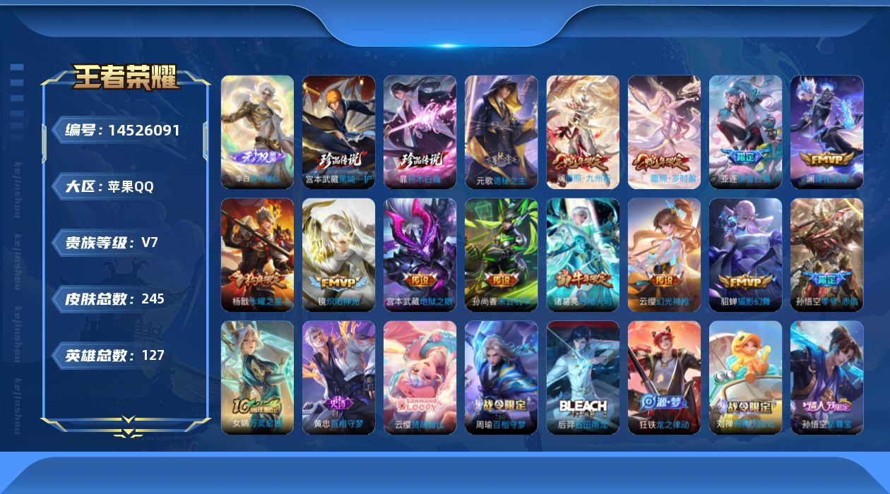 [14526091]v7 1无双 2珍品传说 14传说 127英雄 245皮肤 可修改实名 【英雄全皮】:少司缘全皮元歌全皮敖隐全皮空空儿全皮孙权全皮 【稀有英雄】:敖隐小龙人大司命嬴政始皇帝韩信韩跳跳夏洛特夏师傅艾琳橘右京橘子娜可露露鸟人不知火舞赵云金蝉唐僧戈娅 【无双皮】:碎月剑心李白无双 【珍品传说】:朽木白哉黑崎一护 【传说皮】:落雪白狼神树通天诡秘之主幻光神呛零号·赤焰地狱之眼末日机甲-孙尚香绿蚂蚱猫影幻舞炽阳神光澜逐花归海 【珍宝阁皮】:妄想食味胡桃夹子 【赛季/战令皮】:噬灭天穹s37古海寻踪s33海盐诗旅s30擒涛扼浪s31探海日志s32天穹祈灯s34天穹之誓s36炼金王s6凯尔特女王s7狰s8饕餮s9烛龙s10重明s11穷奇s12御狮s13御霄s14御旌s15混沌棋s18疑决卦s19醍醐杖s20原初探秘者s21万华元夜s22演武夺筹s23驱傩正仪s24西部大镖客-猪八戒暗影游猎游乐娃子单词大作战狂想玩偶喵潮玩骑士王云间偶戏云中旅人s29 【史诗皮】:赞萌露比巫礼祀神琥珀纪元伽罗鸭鸭历险记-刘禅龙之律动石田雨龙百相守梦-周瑜百相守梦-黄忠涂山红红星界战将战舞者东方月初万灵启世紫霞仙子特工魅影千年之狐永昼高渐离燃音魔法冰冠公主偶像歌手暗夜猫娘猫狗日记-孙策猫狗日记-大乔乱世虎臣节奏热浪修罗水果甜心绅士熊喵星夜王子心灵骇客功夫厨神德古拉伯爵暗隐猎兽者幽灵船长鬼剑武藏天秀·启明纤云弄巧繁星吟游呼啦呼啦缤纷独角兽水晶猎龙者曙光守护者原初追逐者鹰眼统帅无心未来纪元-赵云 【限定皮】:愿照·九州拓澜年限愿照·岁时盈虞姬年限至尊宝时雨天司水龙头遇见飞天五谷丰年御风骁将吕布年限李小龙永曜之星霸王别姬-虞姬大圣娶亲引擎之心冰霜恋舞曲 【普通皮】:逐霄之志熔金海岸苍林狼骑铁骨偃魂谧流熔炉劲辣红锅无尽旅途春野之旅龙舞盛年朵莉亚金色潮汐亚瑟鸿运当头功夫炙烤街头霸王雪境奇遇-西施星梦巡礼