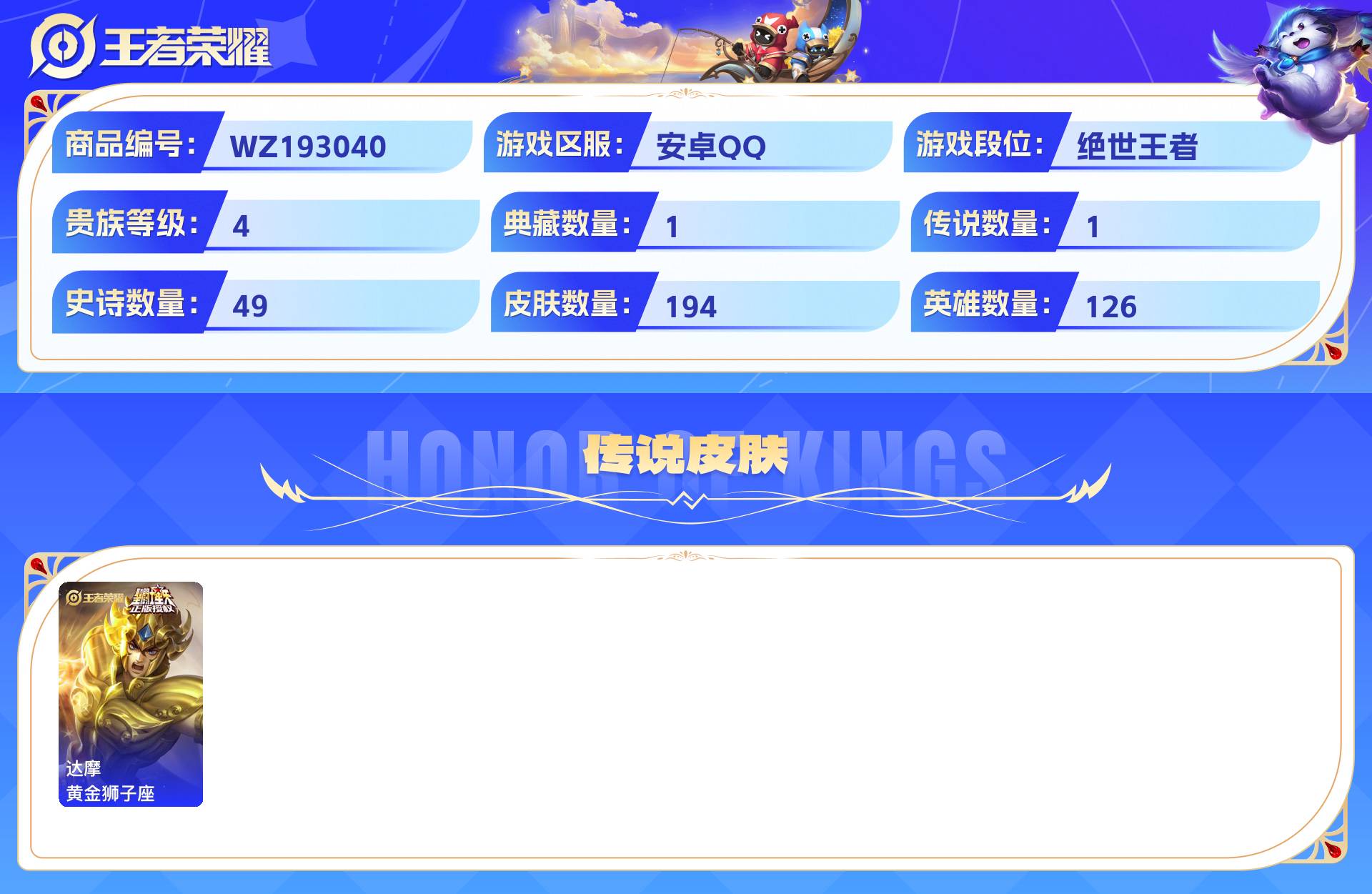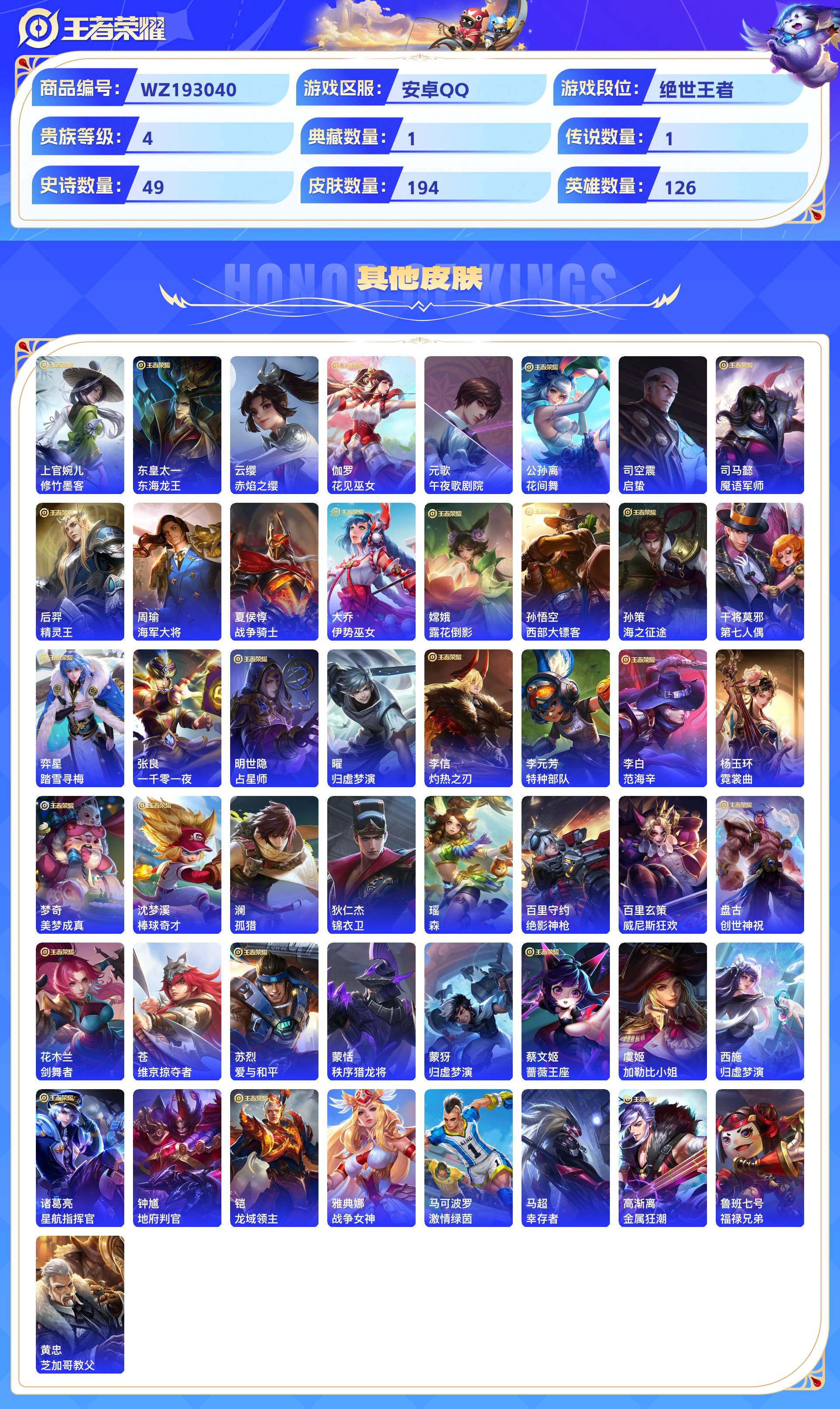 _2303003-安卓qq194皮贵族4级1典藏1传说49史诗【荣耀典藏】鸣剑·曳影【传说皮肤】黄金狮子座【史诗皮肤】光弋星穹梁祝纤云弄巧无心云间偶戏暗隐猎兽者天才门将德古拉伯爵暗渊魔法圣诞狂欢末日机甲金属风暴魅力维加斯白昼王子水果甜心时之恋人鬼剑武藏真爱魔法高山流水幽灵船长逐浪之夏千年之狐天秀·启明遇见飞天鹰眼统帅魔术师猪悟能偶像歌手星夜王子特工魅影原初追逐者水晶猎龙者李小龙黄金分割率圣诞恋歌皇家上将未来纪元王者之锤江河有灵冰冠公主黎明之约一生所爱紫霞仙子苍穹之光暗影游猎五谷丰年狮舞东方电玩小子火炮绅士【勇者皮肤】荣光之誓罗小黑战记径山谋武往忆晖光逆浪荇歌鹤鸣心笺踏浪烽翎克喵死亡骑士潮玩骑士王破局者龙腾万里黄金武士穷奇汉昭烈帝纽约教父唤灵魔甲剑破天穹圣弓游侠完美运算阿尔法小队野性能量猎兽之王熔金海岸次元突破进击墨子号朔风刀守护之力暗都幽影华丽摇滚少女阿狸炽热元素使星梦巡礼天穹之誓沉稳之力归虚梦演玩偶对对碰万象初新丁香结无尽征程功夫炙烤混沌棋五福同心化身博士虹云星官疑决卦烛龙云中旅人敏锐之力海盐诗旅鲨炮海盗猫大漠名商龙舞盛年幻泉雾影御旌御狮特工战影阴阳师万华元夜西部大镖客潮玩探月行幻想奇妙夜花好人间白色死神御銮圆桌骑士无双福将御霄醍醐杖功夫老勺流音漫舞女武神重明幻夜卜梦兔女郎千军破阵西部游侠拳王沙漠行僧星际陆战队海滩丽影春野之旅神迹守卫驱傩正仪爱心护理哥特玫瑰街头霸王教廷特使海滩派对死亡摇滚天穹祈灯原初探秘者幻乐之宴探海日志【其他皮肤】修竹墨客东海龙王赤焰之缨花见巫女午夜歌剧院花间舞启蛰魇语军师精灵王海军大将战争骑士伊势巫女露花倒影西部大镖客海之征途第七人偶踏雪寻梅一千零一夜占星师归虚梦演灼热之刃特种部队范海辛霓裳曲美梦成真棒球奇才孤猎锦衣卫森绝影神呛威尼斯狂欢创世神祝剑舞者维京掠夺者爱与和平秩序猎龙将归虚梦演蔷薇王座加勒比小姐归虚梦演星航指挥官地府判官龙域领主战争女神激情绿茵幸存者金属狂潮福禄兄弟芝加哥教父