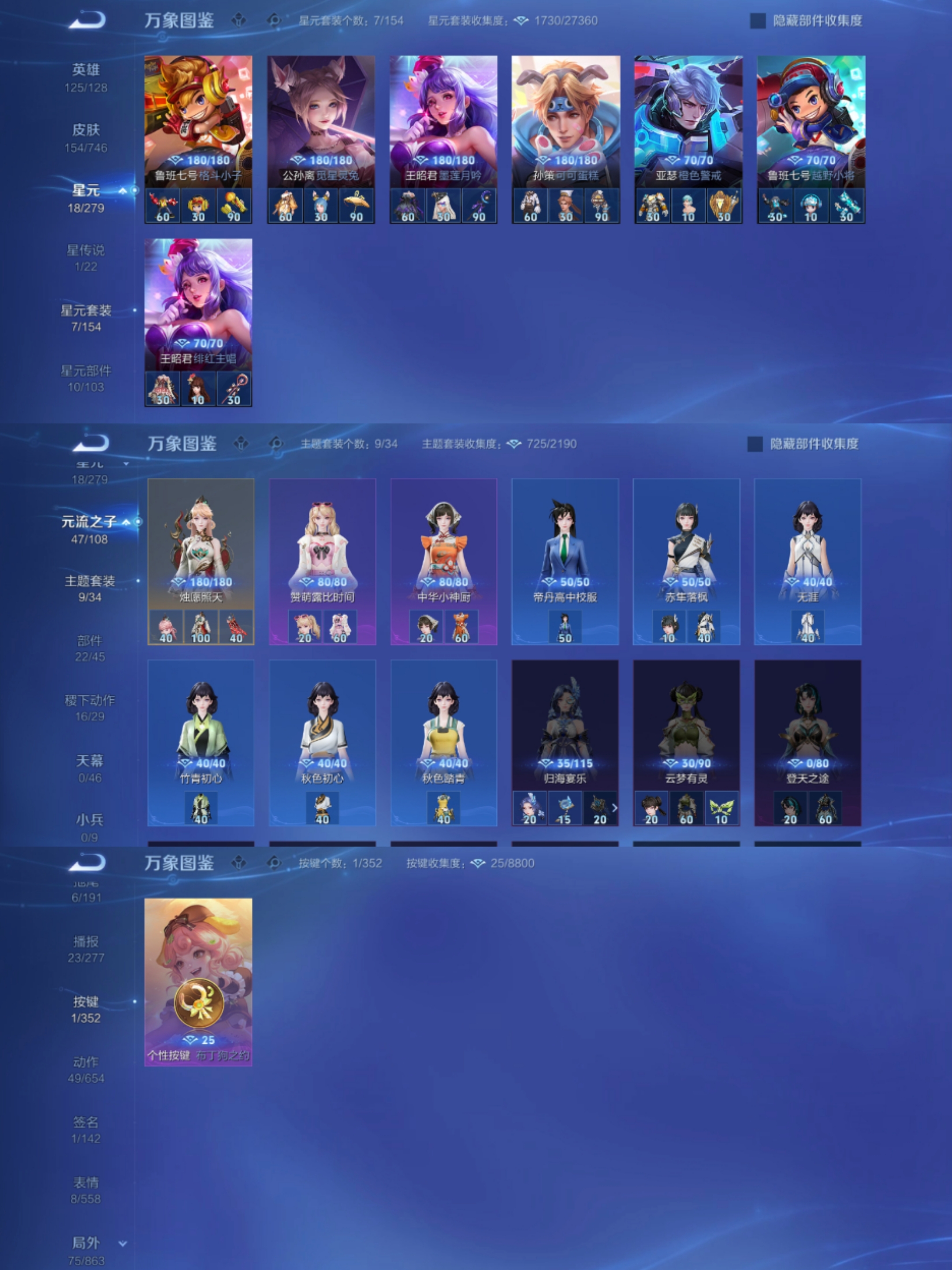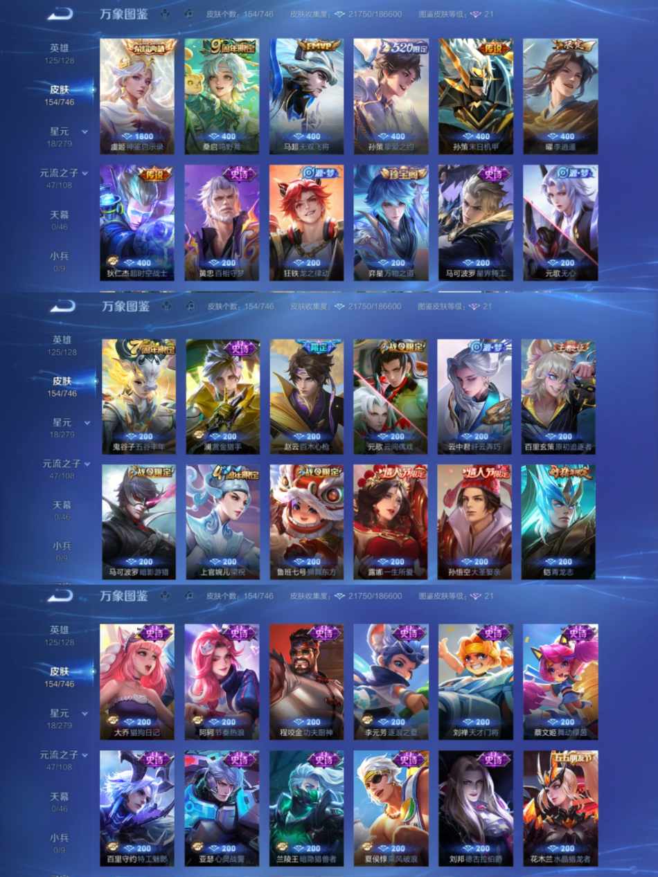 125英雄-154皮肤-【1水晶1星元6传说神鉴启示录】安卓qq-125英雄-154皮肤【1水晶】 神鉴启示录【星元皮肤】星际治安官【传说皮肤】 李 无双飞将 挚爱之约 超时空战士 末日机甲 鸣野蒿【史诗皮肤】一生所爱 大圣娶亲 星界特工 舞动绿茵 幽灵船长 功夫厨神 德古拉伯爵 天才门将 紫霞仙子 电玩小子 狮舞东方 圣诞狂欢 暗影游猎 金属风暴 梁祝 水果甜心 偶像歌手 乘风破浪 心灵战警 云