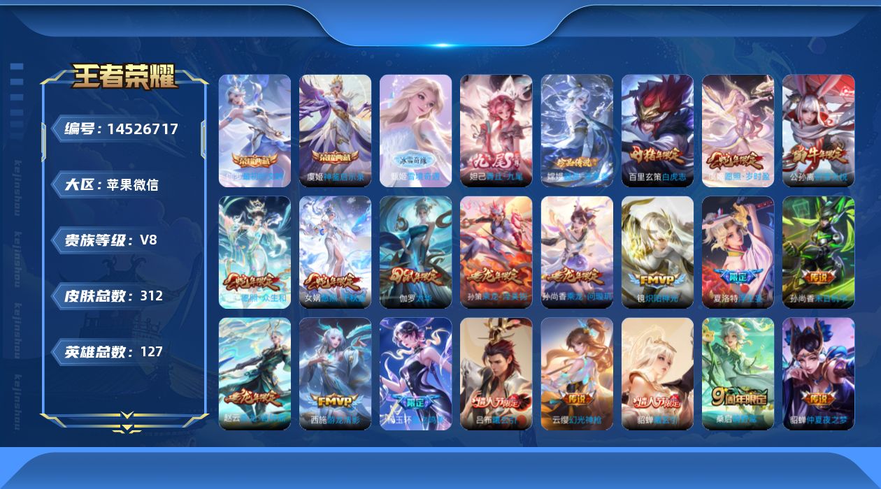 [14526717]女号 小国标虞姬可二次 苹果微信150区312皮2典藏28传说2无双1珍品传说v8 营地id2144684175非凡王者【珍品传说皮肤】:器灵·落星盏【无双皮肤】:雪境奇遇青丘·九尾【荣耀典藏】:最初的交响神鉴启示录【优质限定皮肤】:祈雪灵祝白虎志【传说皮肤】:神树通天海洋之心星之鸣奏幻光神呛愿照·千秋盛愿照·众生和愿照·岁时盈鸣野蒿金乌负日启明