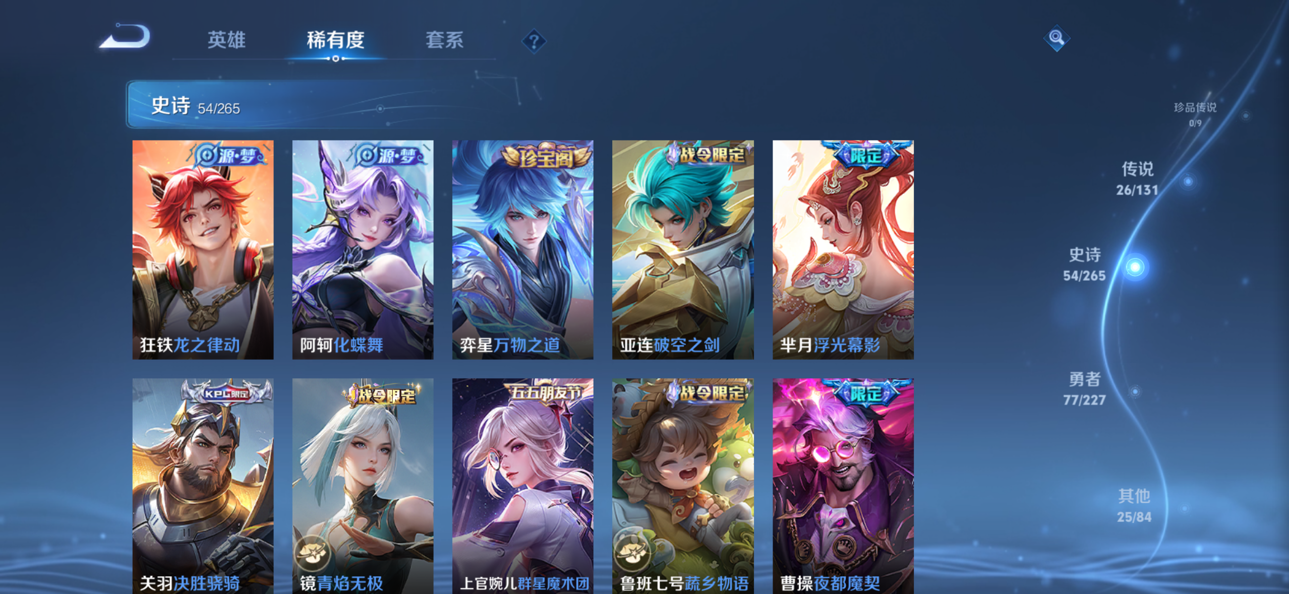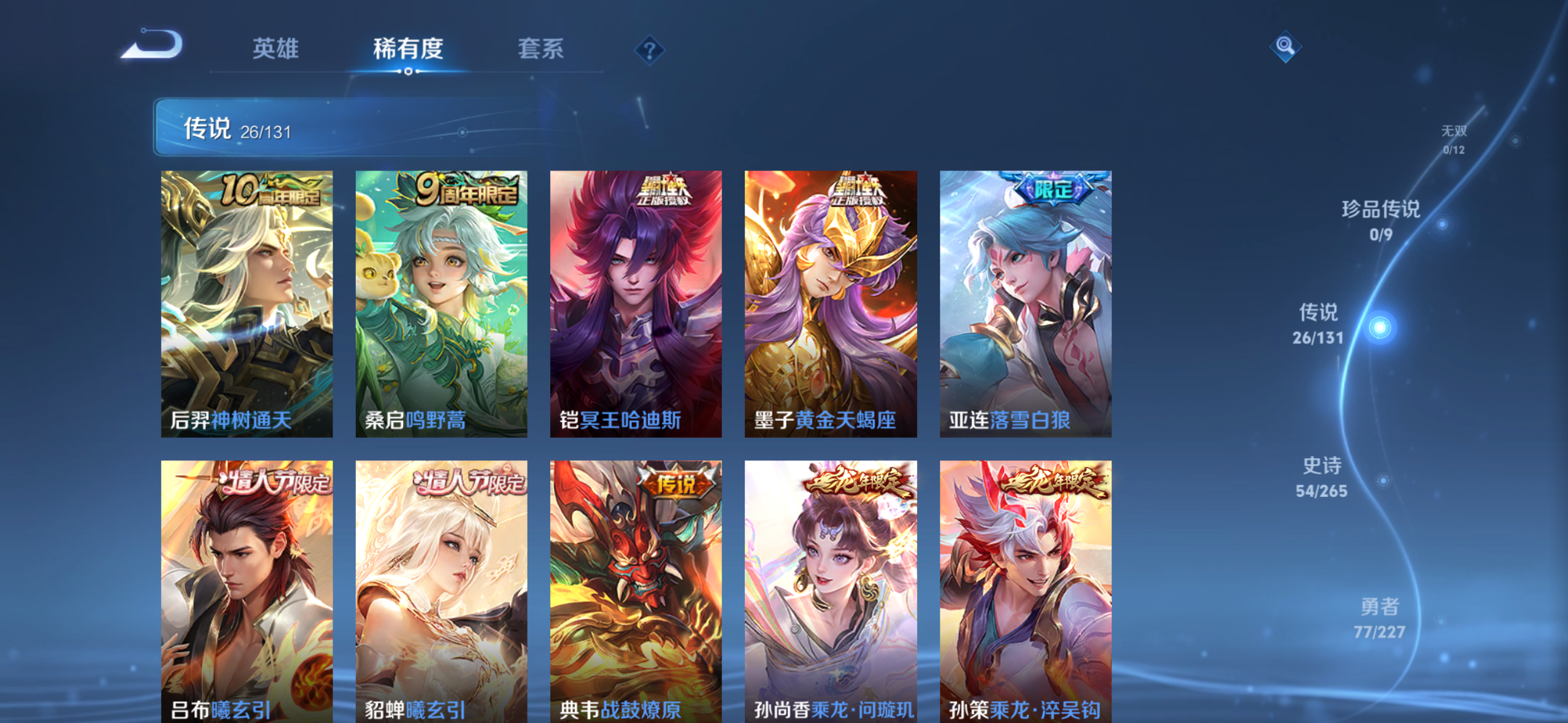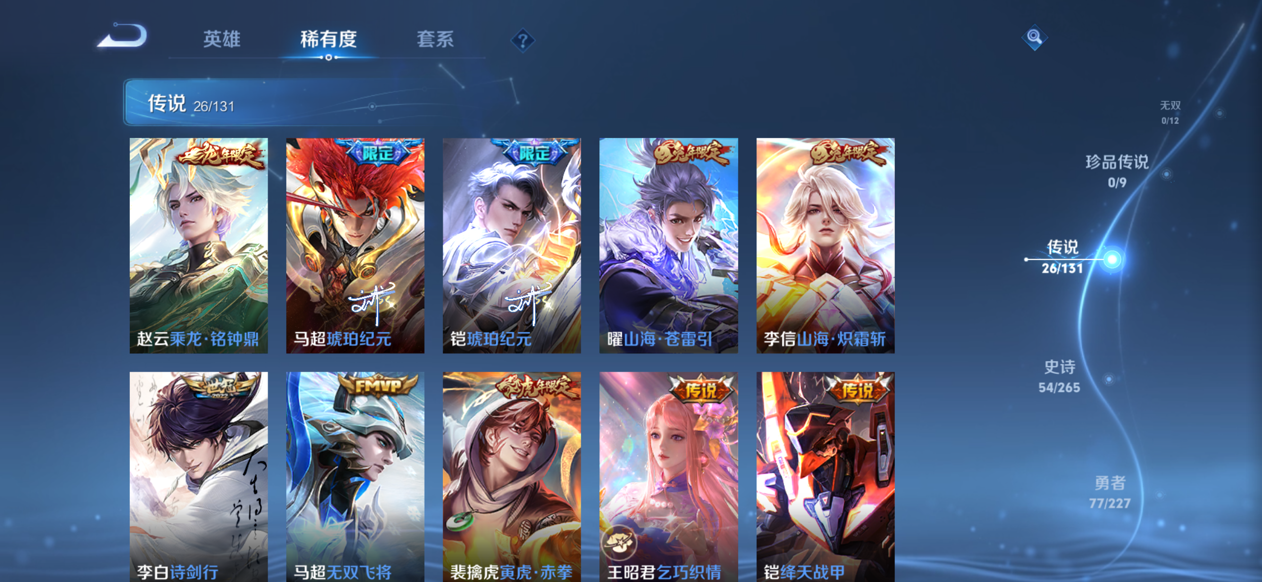 【王者荣耀】【lywz22508】珍品无双0 典藏1 无双0 珍品传说0 传说26 史诗54 英雄126 皮肤183 贵族3级 荣耀典藏:赤影疾锋__传说皮肤:鸣野蒿|无双飞将|绛天战甲|炽阳神光|启明星使|地狱之眼|地狱火|久胜战神|黄金狮子座|乞巧织情|黄金天蝎座|铠-琥珀纪元|落雪白狼|吕布-曦玄引|马超-琥珀纪元|诗剑行|貂蝉-曦玄引|战鼓燎原|乘龙·淬吴钩|乘龙·铭钟鼎|乘龙·问璇玑|山海·苍雷引|山海·炽霜斩|寅虎·赤拳|冥王哈迪斯|神树通天__稀有限定:寅虎·心曲|白晶晶|青龙志|神威|孙行者|山海·碧波行|山海·玄木吟|嫦娥-如梦令|超元猎域|大漠名商|电玩高手|海滩派对|海盐诗旅|后羿-如梦令|皇家上将|剑破天穹|金庭之子|决胜骁骑|魔术师|匿光决锋者|擒涛扼浪|青焰无极|燃音魔法|荣光圣徽|沙漠行僧|探海日志|天穹祈灯|妄想食味|五谷丰年|午后时光|夜都魔契|阴阳师|暗夜贵公子|暗隐猎兽者|冰雪圆舞曲|乘龙·聚宝船|乘龙·忆丹青|德古拉伯爵|地狱岩魂|伽罗-琥珀纪元|功夫厨神|鬼剑武藏|节奏热浪|李元芳-蔬乡物语|魅力维加斯|魅语|青蛇|上官婉儿-群星魔术团|鲁班七号-蔬乡物语|水果甜心|天秀·启明|星夜王子|鹰眼统帅|永昼|幽灵船长|逐浪之夏|紫霞仙子|噬灭天穹|破空之剑|天穹之誓|浮光幕影|曙光守护者|心灵战警|无限星赏官|谧流熔炉|万物之道|化蝶舞|云中旅人|孙悟空-神迹守卫|灵卜魔法|苍威无极|龙之律动|虚灵犬护|逆浪荇歌|鹤鸣心笺__优质皮肤:创世神祝|年年有余|孤猎|熊喵少女|午夜歌剧院|激情绿茵|碧珀绯影|秩序猎龙将|冰刃幻境|海军大将|启蛰|战争骑士|画中游|生化警戒|芝加哥教父|幸存者|赤焰之缨|前尘|三太子|龙域领主|占星师|魇语军师|东海龙王|蔷薇王座|异域舞娘|绒语心约|长夏之忆|暗都幽影|功夫炙烤|秘密基地|次元突破|坚韧之力|功夫老勺|命运角斗场|阿尔法小队|兔女郎|死亡骑士|黄金武士|少女阿狸|天使之翼|宫本武藏-未来纪元|东方不败|忍·炎影|街头霸王|教廷特使|鸿运当头|金色潮汐|漠中幻影|时空谍影|破局者|零食大作战|幻泉雾影|潮玩造梦师|拳王|时尚教父|白色死神|哥特玫瑰|星梦巡礼|浪漫序章|缤纷绘卷|掌控之力|铁骨偃魂|纽约教父|龙腾万里|乱世虎臣|经纬探寻者|龙舞盛年|乓乓大师|万事如意|沉稳之力|程咬金-群星魔术团|花好人间|熔金海岸|春野之旅|万象初新|苍林狼骑|劲辣红锅|特工战影|炽热元素使|命运加冕|死霸装__贵族等级:贵族3级__王者段位:至尊星耀183皮 1典藏 26传说 赤影疾锋 神树通天,鸣野蒿,冥王哈迪斯,启明星使,地狱之眼,黄金狮子座,落雪白狼,久胜战神,琥珀纪元,寅虎·赤拳,炽阳神光,战鼓燎原,乞巧织情,曦玄引,曦玄引,乘龙·问璇玑,乘龙·铭钟鼎,乘龙·淬吴钩,琥珀纪元,诗剑行,山海·苍雷引,山海·炽霜斩,绛天战甲,无双飞将,黄金天蝎座,地狱火