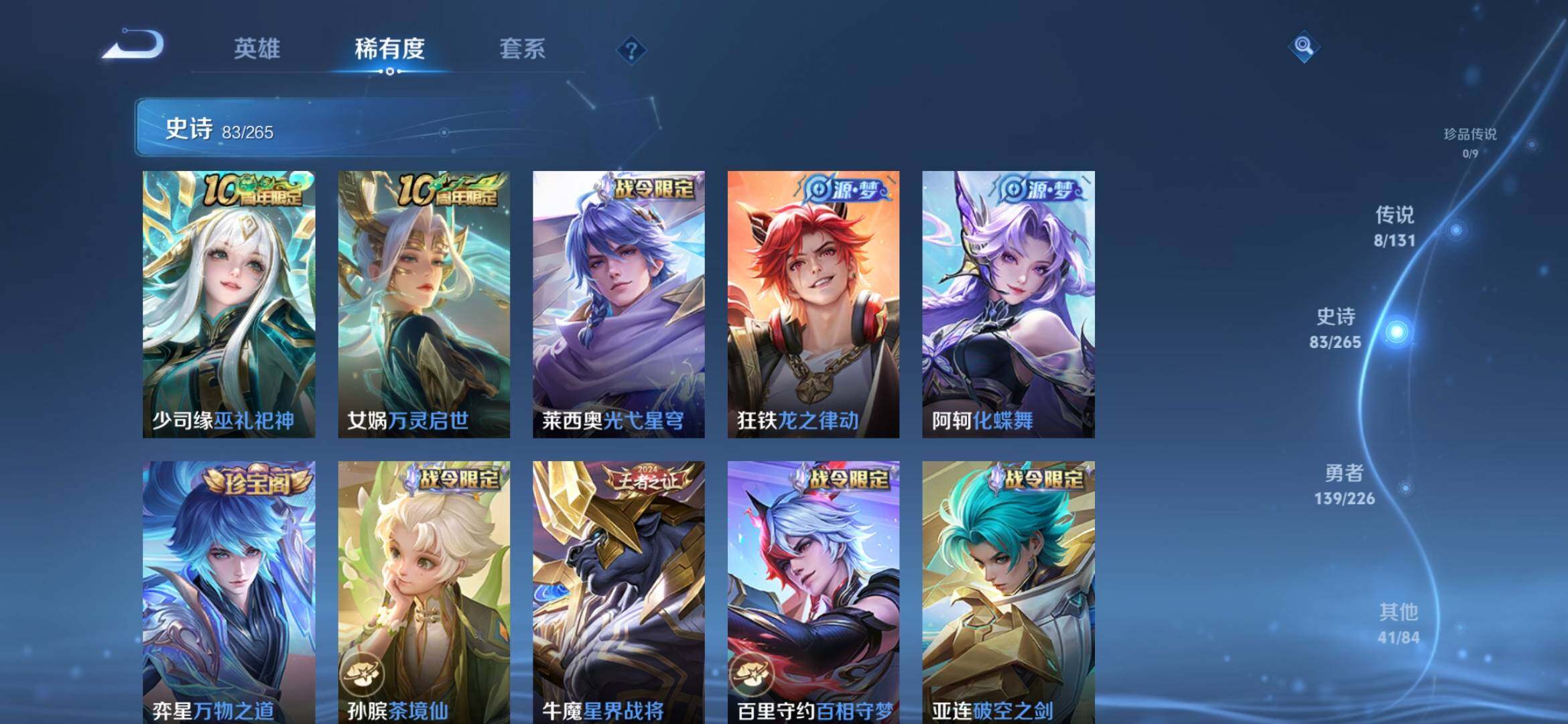 [14528922]安卓q-v7-最强王者段位-125英雄-272皮肤-1典藏皮肤-8传说-83史诗 【英雄全皮】:孙权全皮,蒙恬全皮,戈娅全皮,空空儿全皮 【荣耀典藏】:伽罗最初的交响 【传说皮肤】:杨戬纵目迁山,后羿神树通天,桑启鸣野蒿,亚瑟追逃游戏,夏洛特浮生妄,李信山海炽霜斩,诸葛亮时雨天司,曜云鹰飞将 【限定皮肤】:蒙犽顽岩魄,蔡文姬夏日便利店,大乔绒语心约,虞姬夏日便利店,姜子牙天穹之誓,狄仁杰阴阳师,赵云皇家上将,庄周高山流水,高渐离死亡摇滚,扁鹊奇幻香踪,周瑜赤莲之焰,元歌云间偶戏,元歌无心,甄姬女儿国国王,马可波罗暗影游猎,马可波罗山海玄木吟,狄仁杰魔术师,狄仁杰万华元夜,达摩沙漠行僧,项羽海滩派对,老夫子醍醐杖,程咬金演武夺筹,王昭君午后时光,兰陵王金庭之子,亚瑟潮玩骑士王,亚瑟追逃游戏,孙悟空至尊宝,李元芳云中旅人,钟馗神迹守卫,钟馗驱傩正仪,杨戬潮玩骑兵,女娲朔望之晖,干将莫邪胡桃夹子,雅典娜黎明之约,蔡文姬繁星吟游,太乙真人华丽摇滚,鬼谷子原初探秘者,鬼谷子五谷丰年,诸葛亮时雨天司,百里玄策原初追逐者,弈星混沌棋,梦奇顽趣,沈梦溪大漠名商,明世隐疑决卦,裴擒虎李小龙,裴擒虎擒涛扼浪,狂铁电玩高手,米莱狄御霄,米莱狄胡桃异想国,云中君纤云弄巧,李信山海炽霜斩,上官婉儿梁祝,嫦娥拒霜思,嫦娥暖冬兔眠,西施玲珑珍味,鲁班大师探海日志,桑启海盐诗旅,夏洛特浮生妄,暃星界游侠,戈娅驭风魔法,艾琳流音漫舞,司空震地狱燃心,阿古朵江河有灵,张良古海寻踪,蒙犽百解令,蒙恬荣光圣徽,高渐离燃音魔法,妲己灵卜魔法,鬼谷子天穹祈灯,姬小满妄想食味,沈梦溪龙舞盛年,鲁班七号蔬乡物语,李元芳蔬乡物语,刘邦剑破天穹,程咬金群星魔术团,镜青焰无极,项羽苍威无极,周瑜熔金海岸 【年限皮肤】:诸葛亮时雨天司,马可波罗山海玄木吟,李信山海炽霜斩 【赛季限定】:狄仁杰万华元夜,达摩沙漠行僧,老夫子醍醐杖,程咬金演武夺筹,兰陵王金庭之子,张良古海寻踪,李元芳云中旅人,钟馗驱傩正仪,雅典娜黎明之约,鬼谷子原初探秘者,百里玄策原初追逐者,弈星混沌棋,梦奇顽趣,沈梦溪大漠名商,明世隐疑决卦,裴擒虎擒涛扼浪,米莱狄御霄,鲁班大师探海日志,桑启海盐诗旅,鬼谷子天穹祈灯,蒙恬荣光圣徽,刘邦剑破天穹,姜子牙天穹之誓 【战令限定】:蔡文姬夏日便利店,虞姬夏日便利店,扁鹊奇幻香踪,周瑜赤莲之焰,元歌云间偶戏,马可波