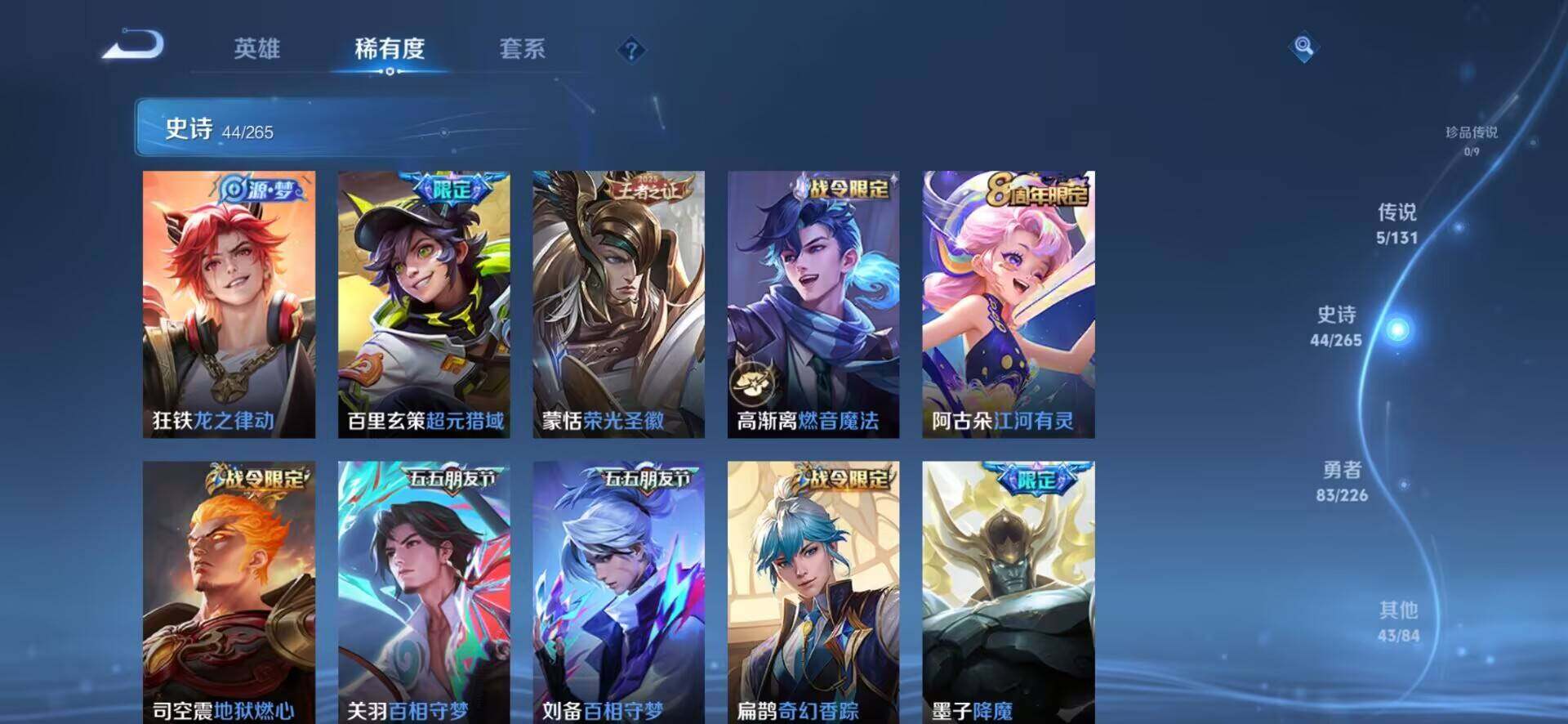 [14529148]安卓q-v6-永恒钻石iii段位-125英雄-175皮肤-5传说-44史诗 【传说皮肤】:后羿神树通天,桑启鸣野蒿,张飞百相守梦,刘备时之恋人,宫本武藏地狱之眼 【限定皮肤】:姜子牙天穹之誓,狄仁杰阴阳师,赵云皇家上将,墨子降魔,嬴政优雅恋人,孙尚香蔷薇恋人,扁鹊奇幻香踪,元歌无心,典韦岱宗,狄仁杰魔术师,项羽海滩派对,关羽百相守梦,韩信傲雪梅呛,王昭君午后时光,兰陵王金庭之子,孙悟空美猴王,刘备百相守梦,张飞百相守梦,李元芳云中旅人,杨戬潮玩骑兵,鬼谷子五谷丰年,黄忠烈魂,沈梦溪大漠名商,裴擒虎李小龙,裴擒虎擒涛扼浪,狂铁电玩高手,云中君纤云弄巧,嫦娥拒霜思,鲁班大师探海日志,桑启海盐诗旅,艾琳流音漫舞,司空震地狱燃心,阿古朵江河有灵,张良古海寻踪,蒙恬荣光圣徽,高渐离燃音魔法,妲己灵卜魔法,鬼谷子天穹祈灯,百里玄策超元猎域,沈梦溪龙舞盛年,刘邦剑破天穹,程咬金群星魔术团,刘备异域游侠,周瑜熔金海岸 【年限皮肤】:孙悟空美猴王,典韦岱宗,黄忠烈魂 【赛季限定】:兰陵王金庭之子,张良古海寻踪,李元芳云中旅人,沈梦溪大漠名商,裴擒虎擒涛扼浪,鲁班大师探海日志,桑启海盐诗旅,鬼谷子天穹祈灯,蒙恬荣光圣徽,刘邦剑破天穹,姜子牙天穹之誓 【战令限定】:扁鹊奇幻香踪,王昭君午后时光,艾琳流音漫舞,杨戬潮玩骑兵,狂铁电玩高手,司空震地狱燃心,高渐离燃音魔法,妲己灵卜魔法 【史诗皮肤】:赵云皇家上将,甄姬冰雪圆舞曲,狄仁杰魔术师,廉颇地狱岩魂,宫本武藏鬼剑武藏,孙尚香蔷薇恋人,孙尚香水果甜心,嬴政优雅恋人,嬴政摇滚巨星,墨子金属风暴,吕布末日机甲,张飞乱世虎臣,花木兰水晶猎龙者,刘邦德古拉伯爵,夏侯惇乘风破浪,兰陵王暗隐猎兽者,诸葛亮黄金分割率,亚瑟心灵战警,蔡文姬舞动绿茵,刘禅天才门将,李元芳逐浪之夏,程咬金功夫厨神,阿轲节奏热浪,狄仁杰鹰眼统帅,典韦岱宗,橘右京修罗,黄忠烈魂,裴擒虎李小龙,云中君纤云弄巧,嫦娥拒霜思,韩信傲雪梅呛,狂铁电玩高手,鬼谷子五谷丰年,元歌无心,墨子降魔,扁鹊奇幻香踪,刘备百相守梦,关羽百相守梦,司空震地狱燃心,阿古朵江河有灵,妲己灵卜魔法,高渐离燃音魔法,蒙恬荣光圣徽,百里玄策超元猎域,狂铁龙之律动 【其他皮肤】:项羽海滩派对,韩信教廷特使,韩信街头霸王,阿轲爱心护理,达摩大发明家,赵云白执事,赵云忍炎影,芈月红桃皇后,白起白色死神,扁鹊化身博士