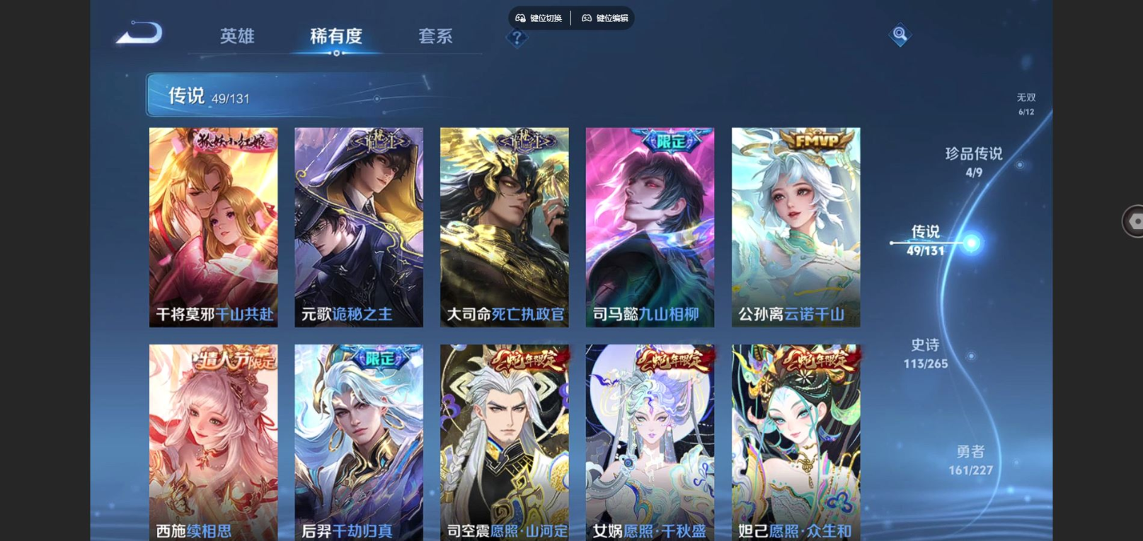 127英雄-413皮肤-125英雄-413皮肤-v10-413皮肤2典藏1珍品无双6无双4珍品传说49传说 打野33段 对抗路31段 万战大司命 3星传说 时之思念 幽冥之眼 黛羽霜翎 【典藏】 星域神启 幻阙歌 【珍品无双】 馥梦繁花 【无双】 神罪 天机白泽 器灵螭龙剑 时之魔女 碎月剑心 真我赫兹瑶 【珍品传说】 朽木白哉 黑崎一护 大耳狗之梦 器灵落星盏 【传说】 落雪白狼 逐花归海 觅芳踪