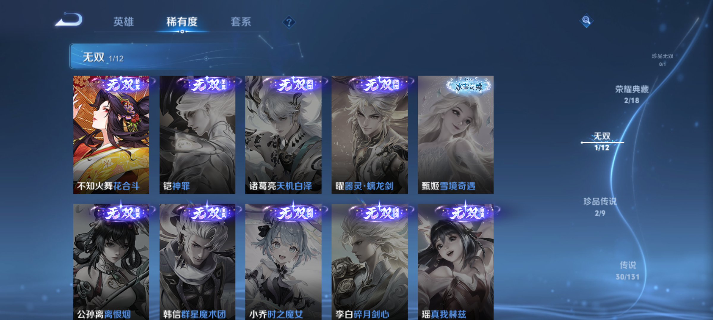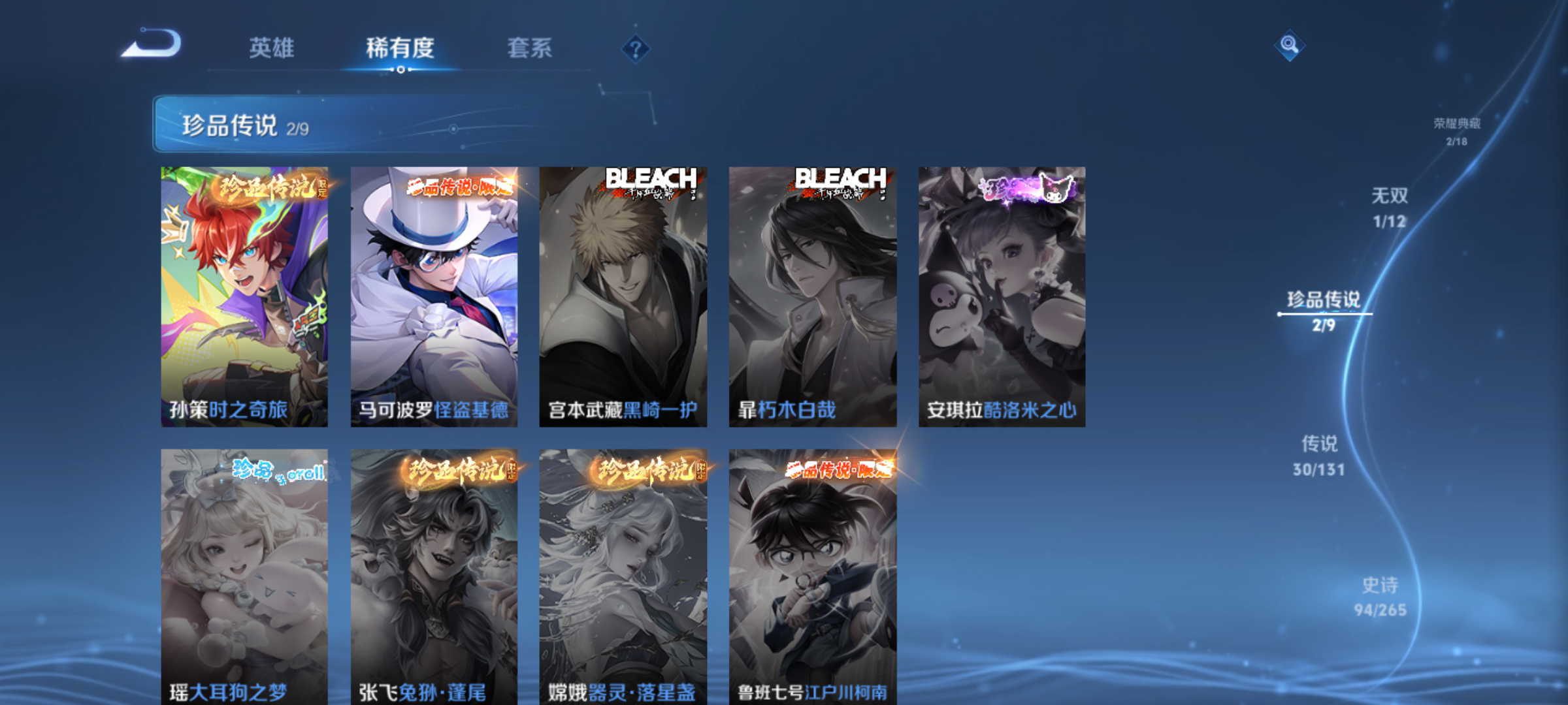 txwz23829 v8 305皮 2典藏(鸣剑·曳影,神鉴启示录)1无双(花合斗)2珍品(时之奇旅,怪盗基德)30传说(神树通天,黄金白羊座,愿照·岁时盈,愿照·九州拓,幻光神呛,时之奇旅,鸣野蒿,胖达荣荣,遇见神鼓,地狱之眼,山海·苍雷引,启明星使,怒海麟威,诗剑行,枫霜尽,无双飞将,挚爱之约,武陵仙君,寅虎·赤拳,炽阳神光,超时空战士,仲夏夜之梦,久胜战神,祈雪灵祝,黄金狮子座,末日机甲,零号·赤焰,时雨天司,云鹰飞将,一念神魔)94史诗(千年之狐,灵蛊蚀心,顽趣,巫礼祀神,织梦人,涂山容容,百相守梦,百相守梦,摇滚巨星,龙之律动,奇遇舞章,鸭鸭历险记,化蝶舞,万物之道,茶境仙,节奏热浪,星界战将,圣诞恋歌,天秀·启明,百相守梦,晚萤,箭羽风息,圣诞老人,紫霞仙子,缤纷独角兽,心灵骇客,银河之约,破空之剑,舞动绿茵,月团寄思,东方月初,逐浪之夏,地狱燃心,夏日便利店,女仆咖啡,未来纪元,心灵战警,荣光圣徽,电玩·爆裂旋风,电玩小子,星界游侠,暗夜贵公子,猫狗日记,偶像歌手,顽趣,无心,末日机甲,水果甜心,冰雪圆舞曲,五谷丰年,赏金猎手,电玩高手,暗夜猫娘,朱雀志,地狱岩魂,青龙志,鬼剑武藏,永昼,功夫厨神,星夜王子,黎明之约,水晶猎龙者,金属风暴,高山流水,暗隐猎兽者,神威,梁祝,航海奇遇记,优雅恋人,逐梦之影,原初追逐者,圣诞狂欢,冰锋战神,云间偶戏,乘风破浪,德古拉伯爵,奔雷神使,乱世虎臣,龙骑士,霸王别姬,御风骁将,魔术师,纤云弄巧,皇家上将,魅语,大圣娶亲,李小龙,繁星吟游,暗影游猎,曙光守护者,修罗,幽灵船长,鹰眼统帅,魅力维加斯)