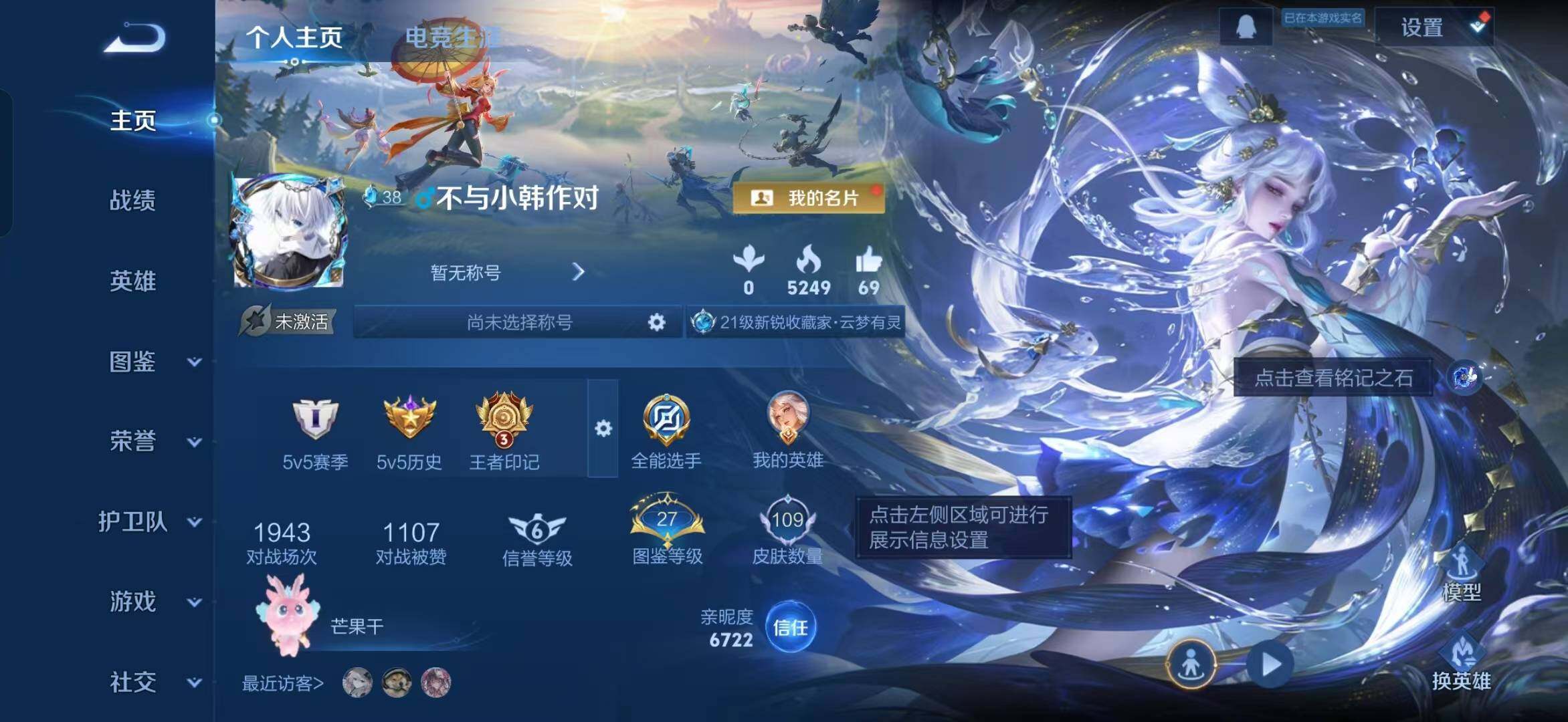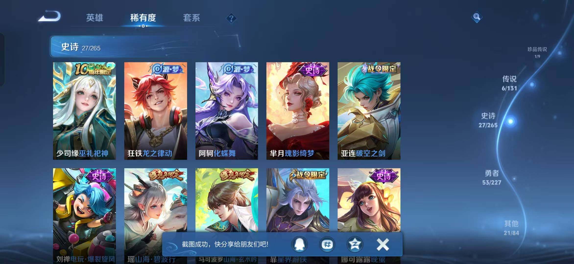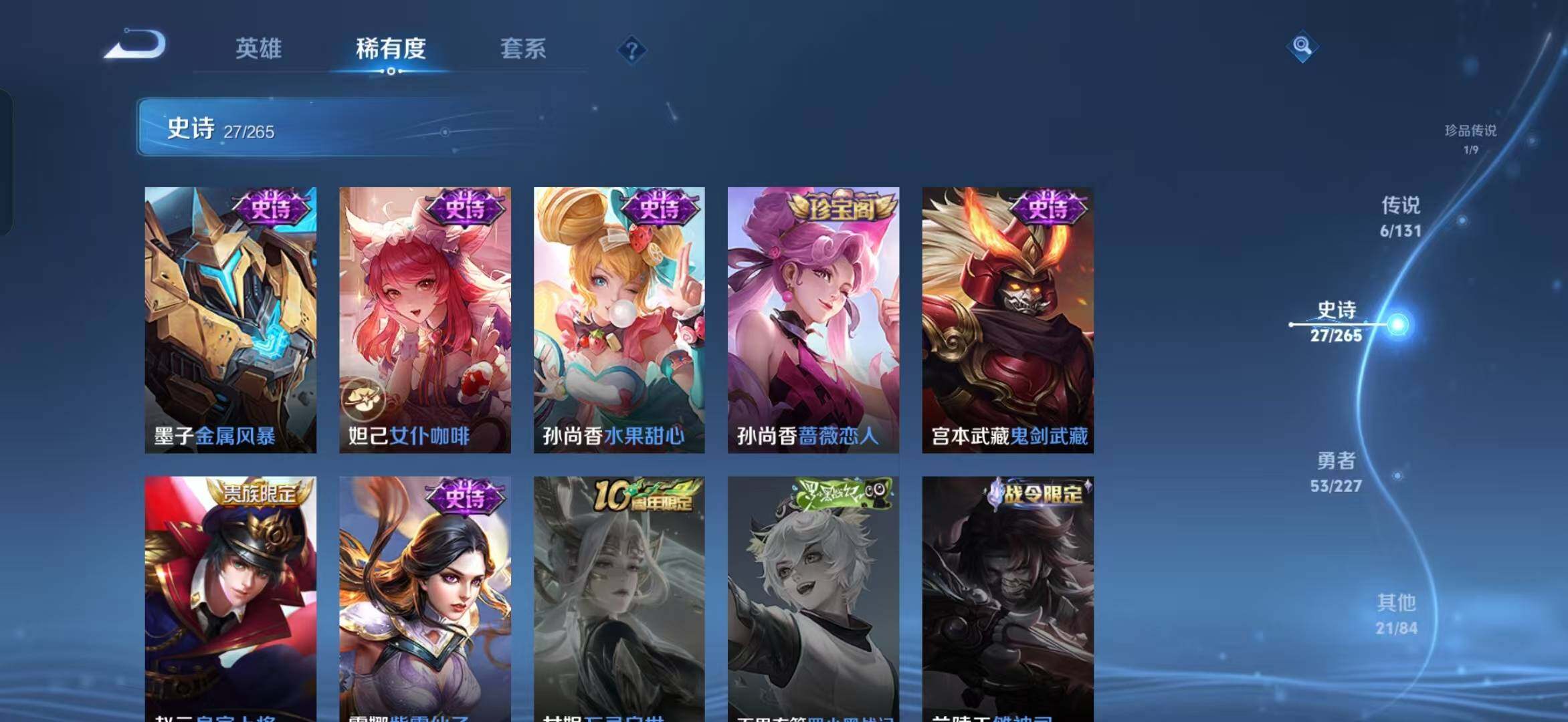[14530221]安卓q-v4-永恒钻石i段位-107英雄-109皮肤-1典藏皮肤-1珍品传说-6传说-27史诗 【荣耀典藏】:韩信弑呛猎影 【珍品传说】:嫦娥器灵落星盏 【传说皮肤】:司空震愿照山河定,妲己愿照众生和,裴擒虎祥瑞亨通,桑启鸣野蒿,李信山海炽霜斩,宫本武藏地狱之眼 【限定皮肤】:姜子牙天穹之誓,狄仁杰阴阳师,赵云皇家上将,孙尚香蔷薇恋人,马可波罗山海玄木吟,项羽海滩派对,李元芳云中旅人,裴擒虎擒涛扼浪,瑶山海碧波行,李信山海炽霜斩,嫦娥暖冬兔眠,鲁班大师探海日志,桑启海盐诗旅,暃星界游侠,张良古海寻踪,鬼谷子天穹祈灯,刘邦剑破天穹 【年限皮肤】:瑶山海碧波行,马可波罗山海玄木吟,李信山海炽霜斩 【赛季限定】:张良古海寻踪,李元芳云中旅人,裴擒虎擒涛扼浪,鲁班大师探海日志,桑启海盐诗旅,鬼谷子天穹祈灯,刘邦剑破天穹,姜子牙天穹之誓 【战令限定】:嫦娥暖冬兔眠,暃星界游侠 【史诗皮肤】:露娜紫霞仙子,赵云皇家上将,宫本武藏鬼剑武藏,孙尚香蔷薇恋人,孙尚香水果甜心,妲己女仆咖啡,墨子金属风暴,李白千年之狐,诸葛亮黄金分割率,雅典娜冰冠公主,百里守约特工魅影,铠曙光守护者,刘禅天才门将,李元芳逐浪之夏,阿轲节奏热浪,孙策猫狗日记,狄仁杰鹰眼统帅,娜可露露晚萤,暃星界游侠,马可波罗山海玄木吟,瑶山海碧波行,刘禅电玩爆裂旋风,亚连破空之剑,芈月瑰影绮梦,阿轲化蝶舞,狂铁龙之律动,少司缘巫礼祀神 【其他皮肤】:项羽海滩派对,韩信教廷特使,露娜哥特玫瑰,赵云忍炎影,白起白色死神,安琪拉玩偶对对碰,姜子牙时尚教父,典韦黄金武士,达摩拳王,张飞五福同心,刘备万事如意,狄仁杰阴阳师,刘备汉昭烈帝,关羽龙腾万里,老夫子功夫老勺,孙尚香沉稳之力,诸葛亮掌控之力,沈梦溪鲨炮海盗猫,杨戬次元傲视,鲁班大师乓乓大师,刘禅唤灵魔甲,蒙恬蔚蓝守将,李元芳云中旅人,刘备潮玩造梦师,桑启海盐诗旅,嫦娥暖冬兔眠,猪八戒潮玩探月行,裴擒虎擒涛扼浪,太乙真人劲辣红锅,鲁班大师探海日志,李元芳妄想特派,张良古海寻踪,鬼谷子天穹祈灯,亚瑟鸿运当头,刘邦剑破天穹,姜子牙天穹之誓,孙悟空神迹守卫,东皇太一噬灭天穹,米莱狄怪诞之夜,干将莫邪雾都夜雨,吕布逐霄战戟,苍苍林狼骑,太乙真人谧流熔炉,典韦铁骨偃魂,西施雪境奇遇,明世隐景韶洛都,戈娅玫蓝誓约,刘备浪漫序章,苏烈春野闲踪,张良灵野札记,阿古朵布丁狗之约,露娜命运加冕