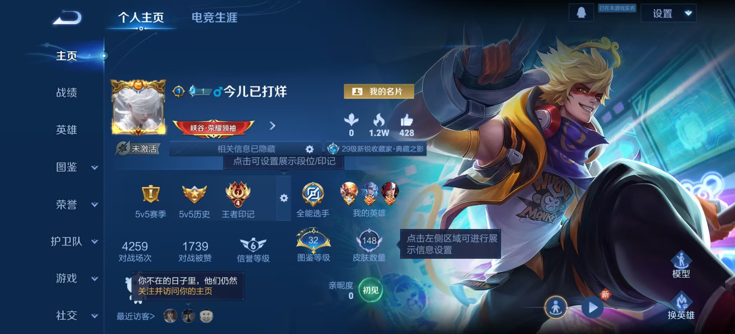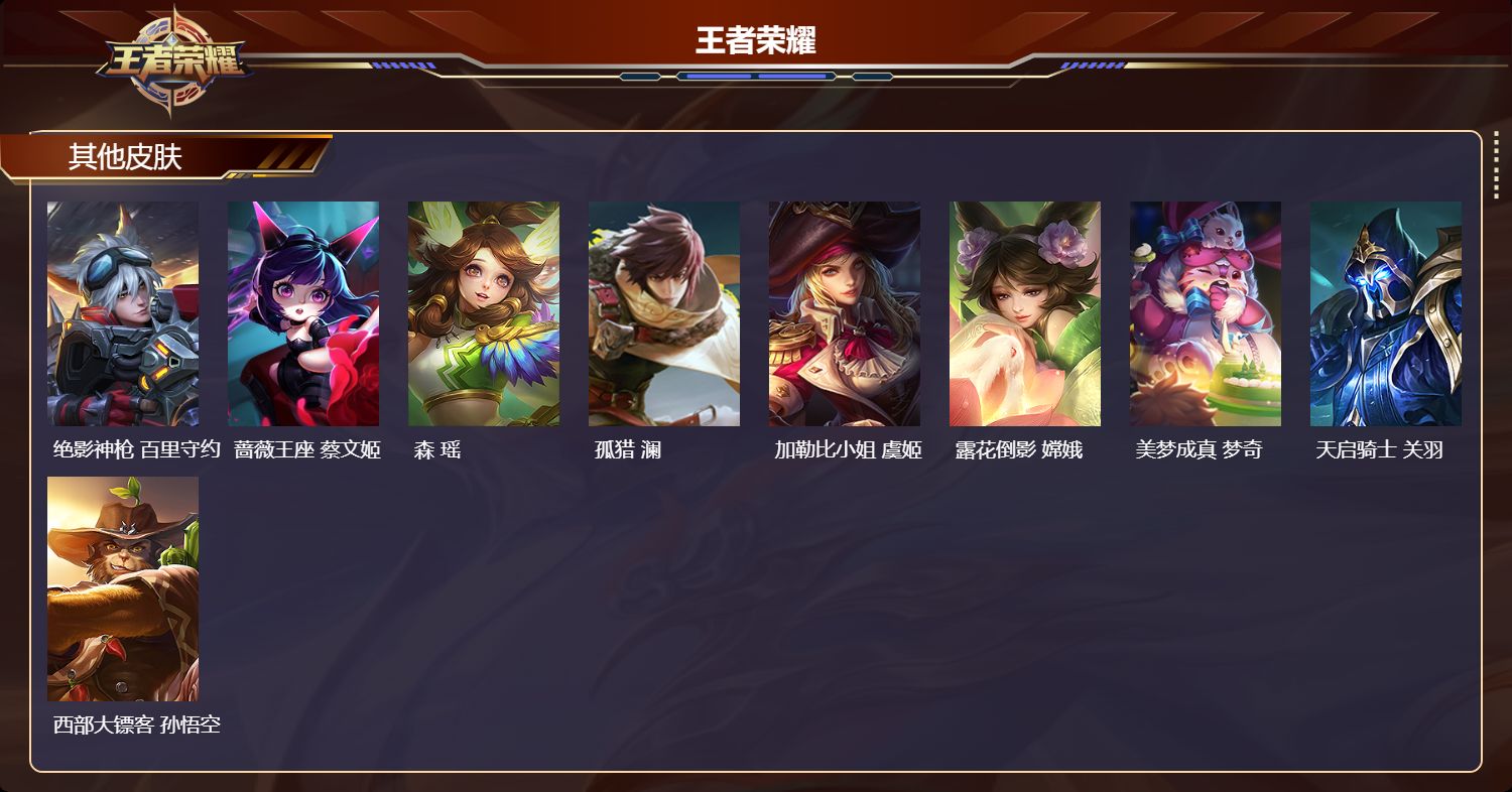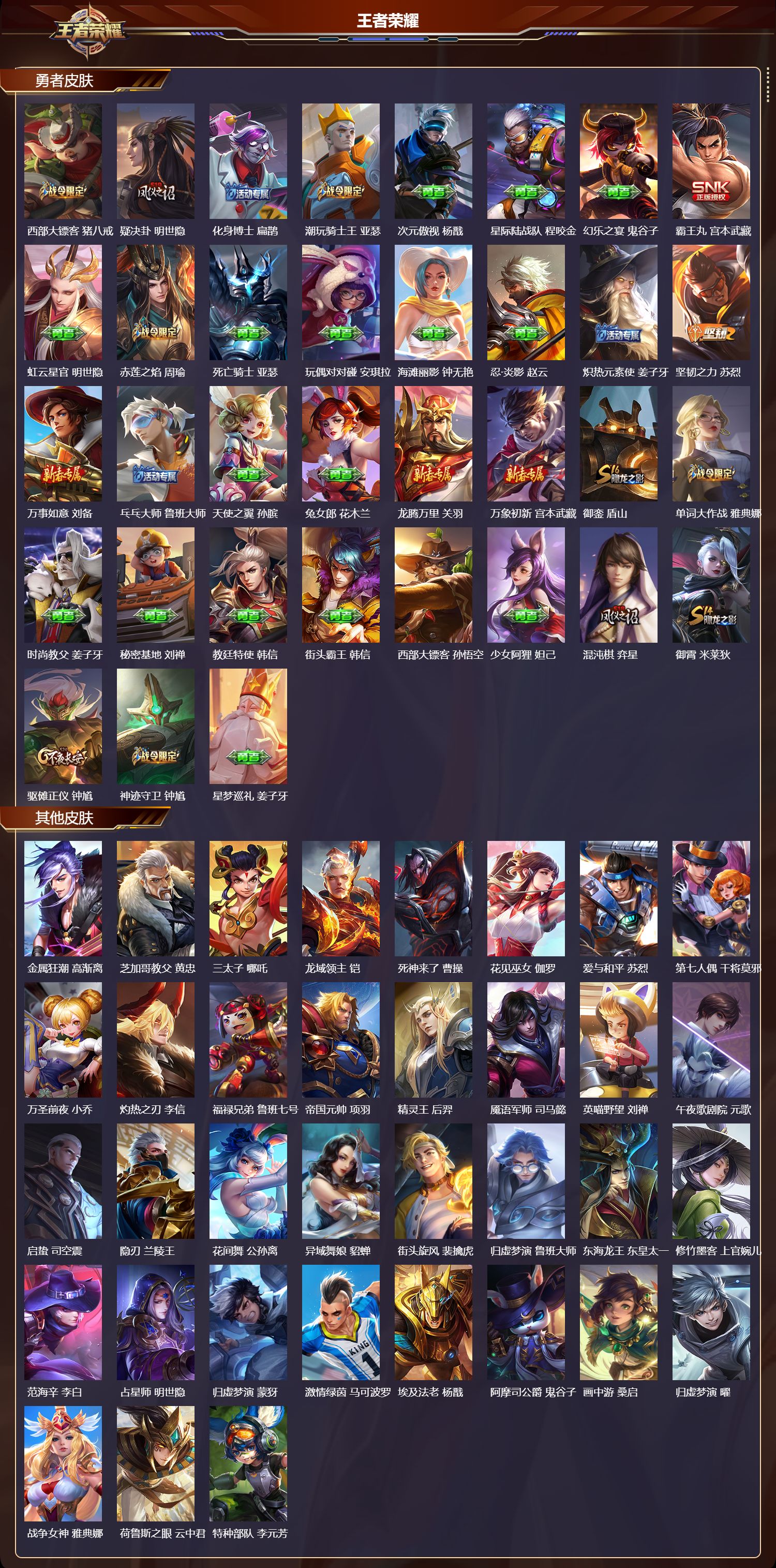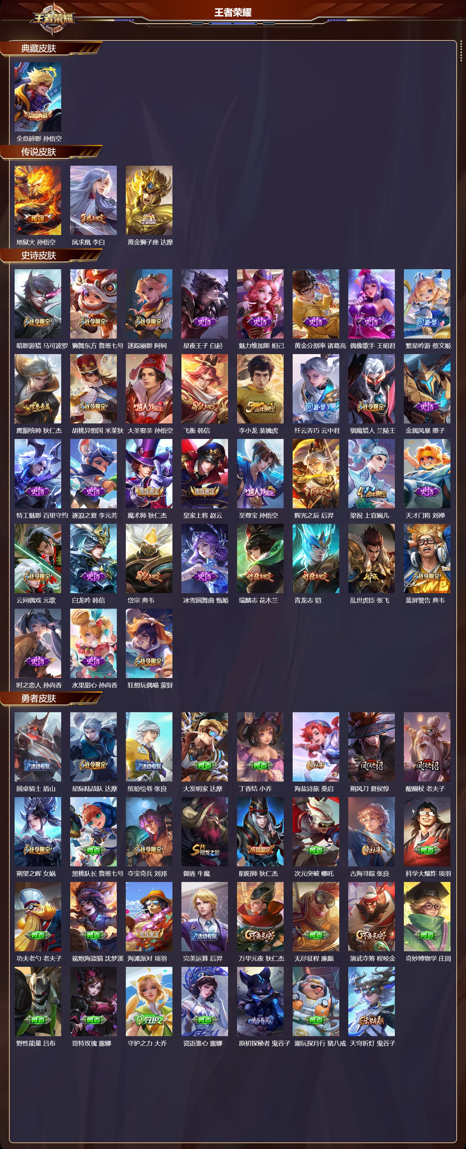 安卓qq/荣耀黄金/148皮肤/121英雄/1典藏/0珍品无双/0无双/0珍品传说/3传说/35史诗/7稀有英雄【1 典藏皮肤】全息碎影 孙悟空【3 传说皮肤】地狱火 孙悟空凤求凰 李白黄金狮子座 达摩【35 史诗皮肤】暗影游猎 马可波罗狮舞东方 鲁班七号迷踪丽影 阿轲星夜王子 白起魅力维加斯 妲己黄金分割率 诸葛亮偶像歌手 王昭君繁星吟游 蔡文姬鹰眼统