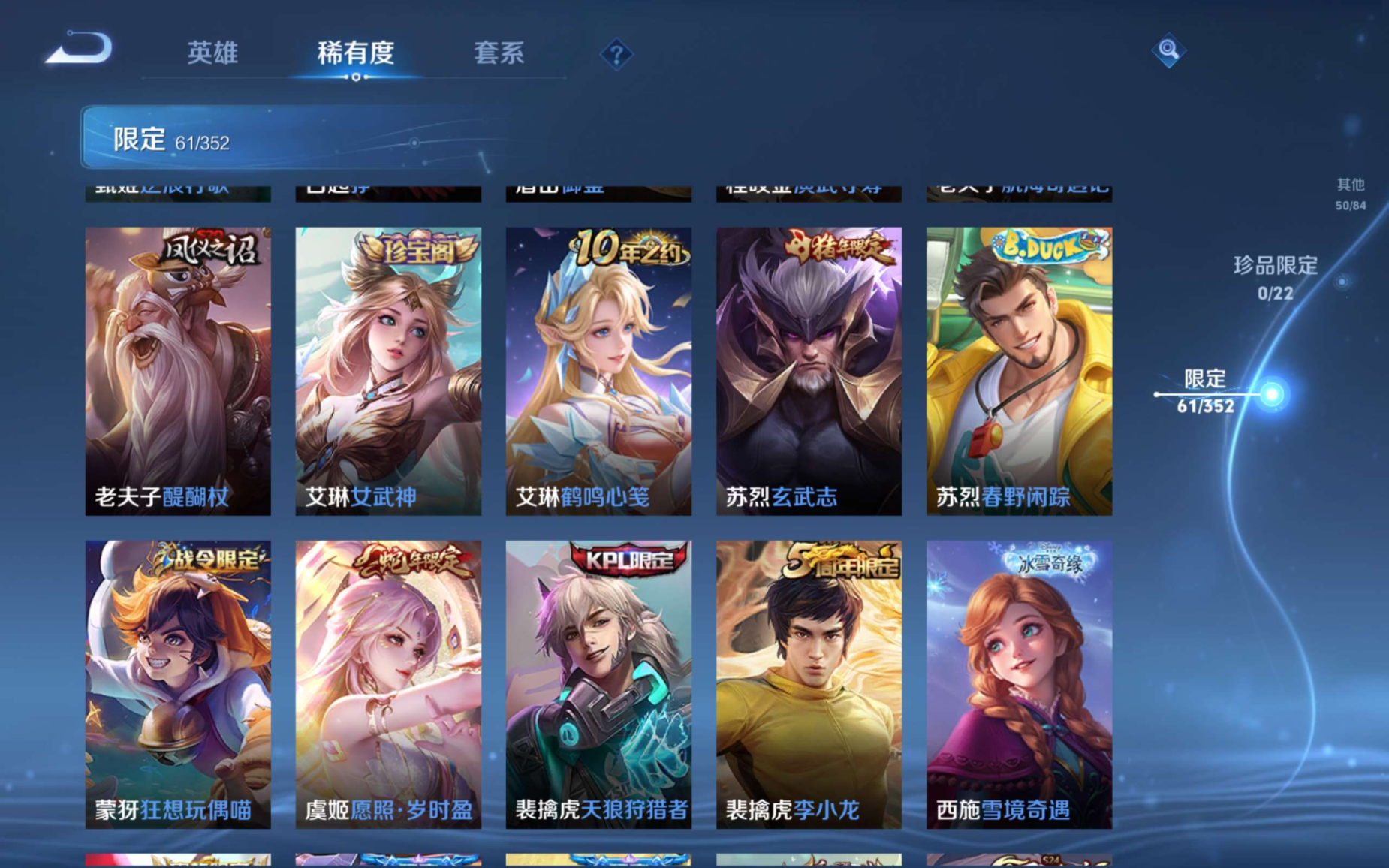 125英雄-207皮肤-125英雄-206皮肤v7-206皮肤7传说 【传说】 幻光神呛 愿照岁时盈 愿照千秋盛 愿照山河定 鸣野蒿 淬星耀世 超时空战士男 【热门】万灵启世 至尊宝 青龙志 玄武志 岱宗 飞衡 逐梦之光 天狼狩猎者 天狼征服者 天狼溯光者 后羿如梦令 引擎之心 时之彼端 猎兽之王 梁祝 狂想玩偶喵 器灵浮梦炉 雪上飞焰 原初探秘者 李小龙 水晶猎龙者 暗隐猎兽者 白昼王子 热力回